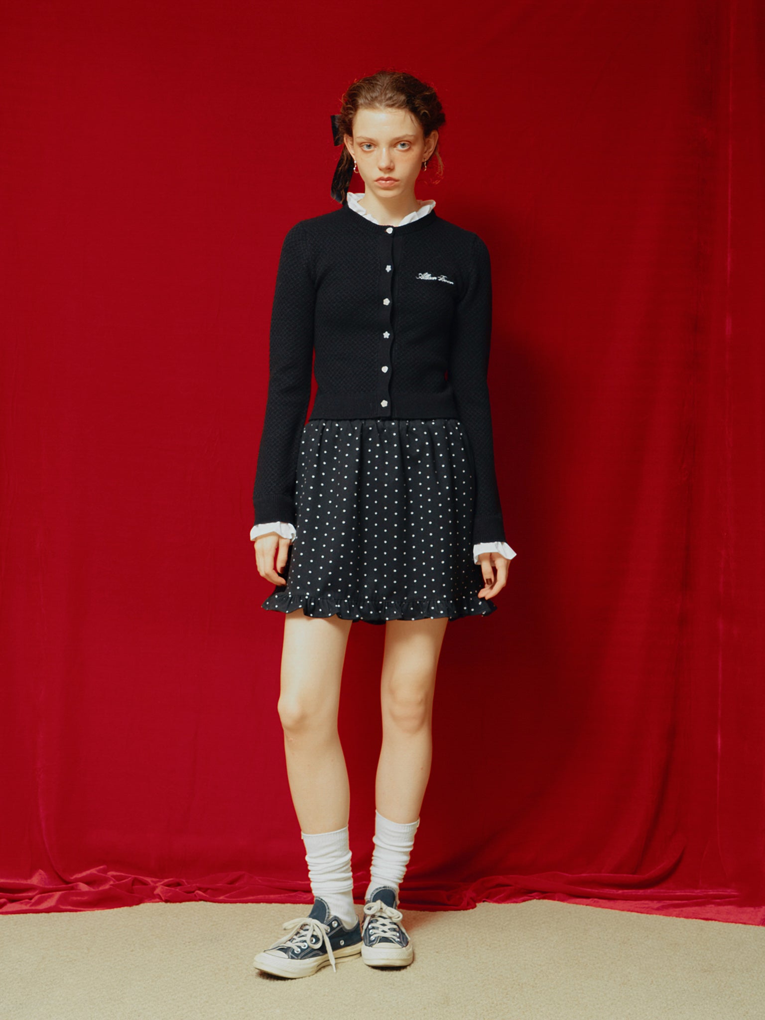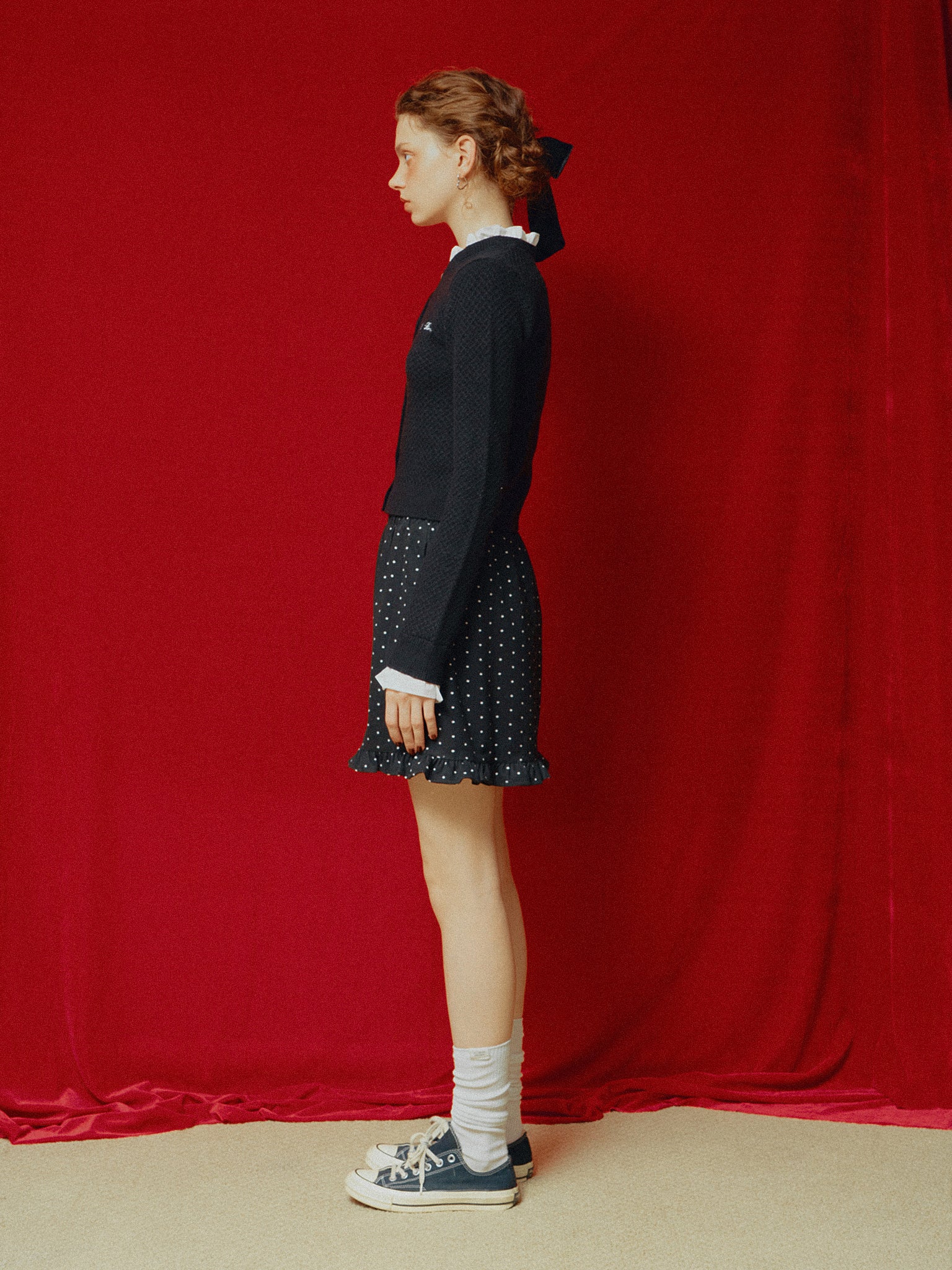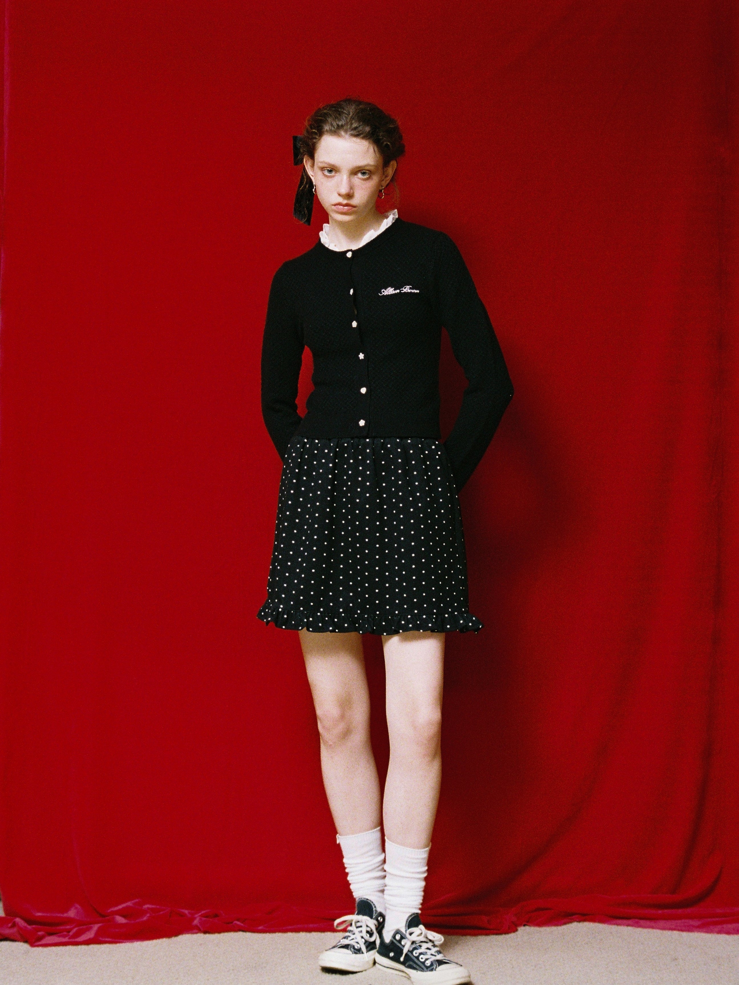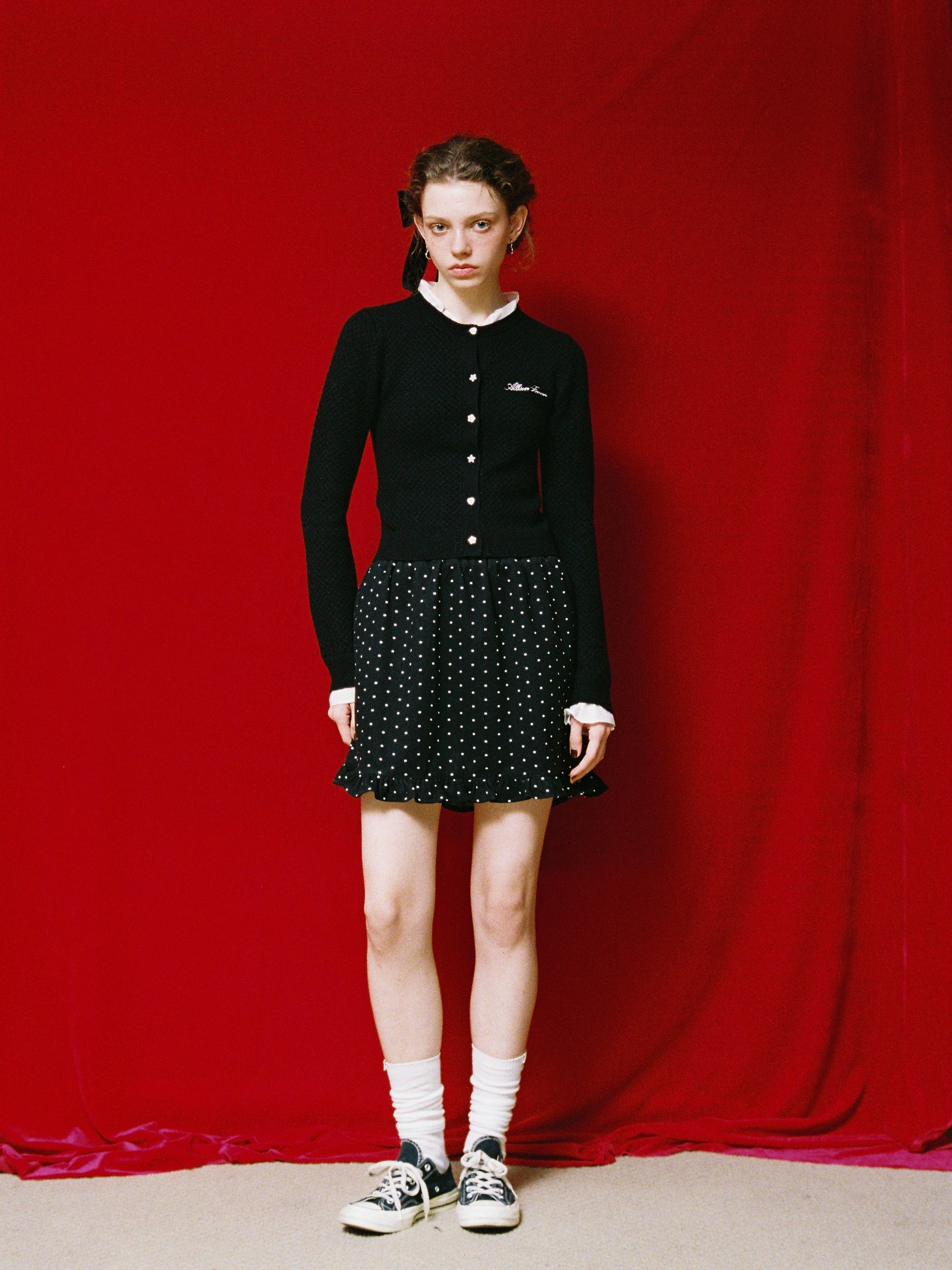 ドット柄のミニスカート。