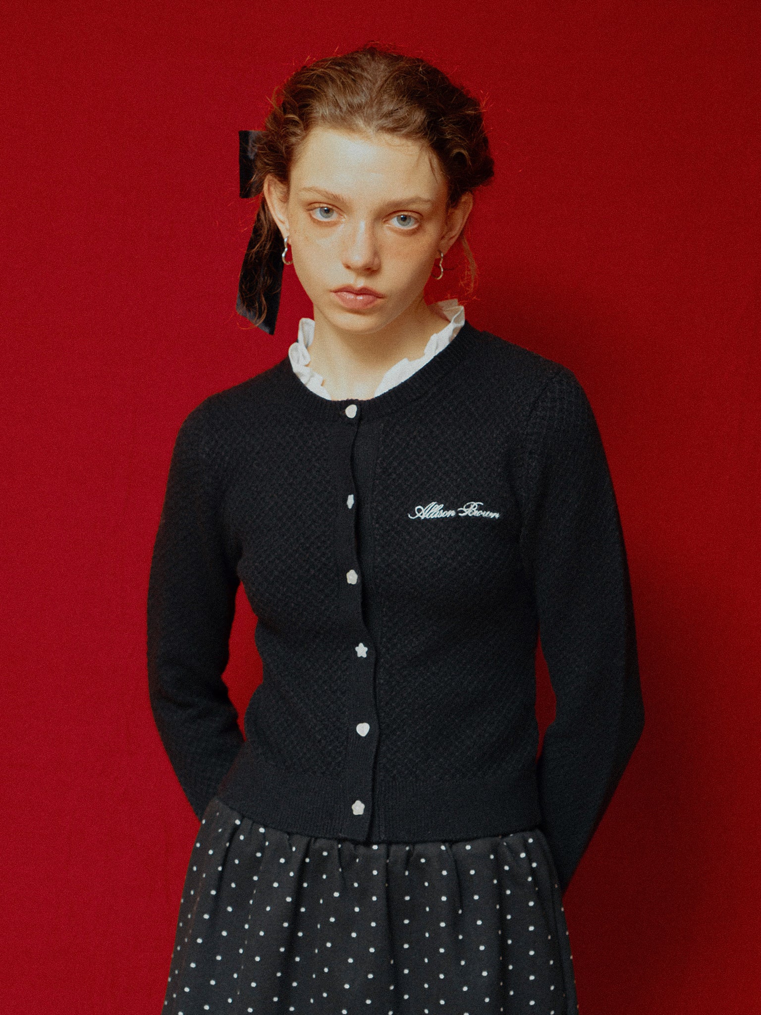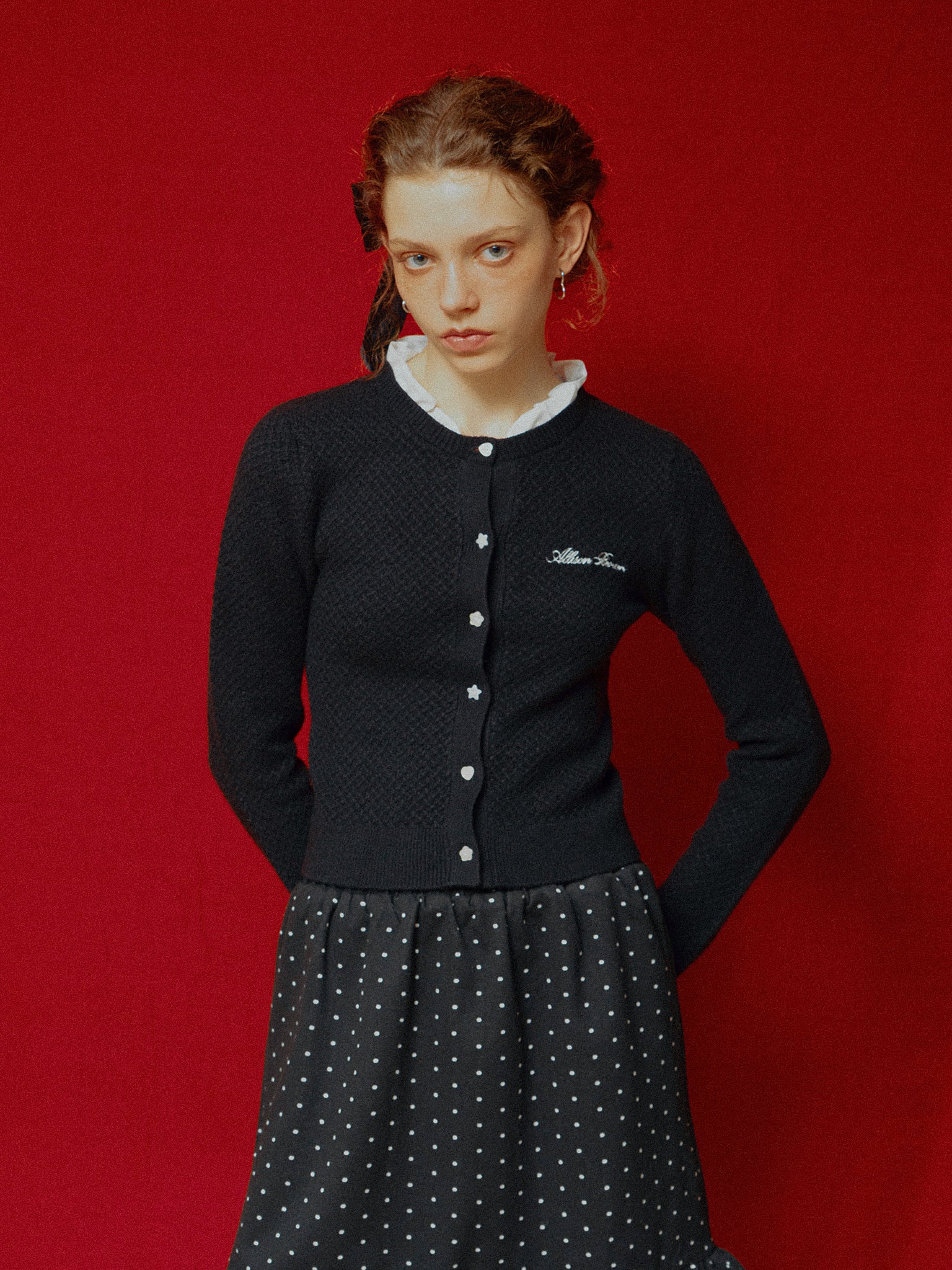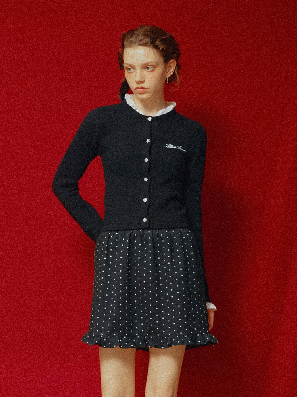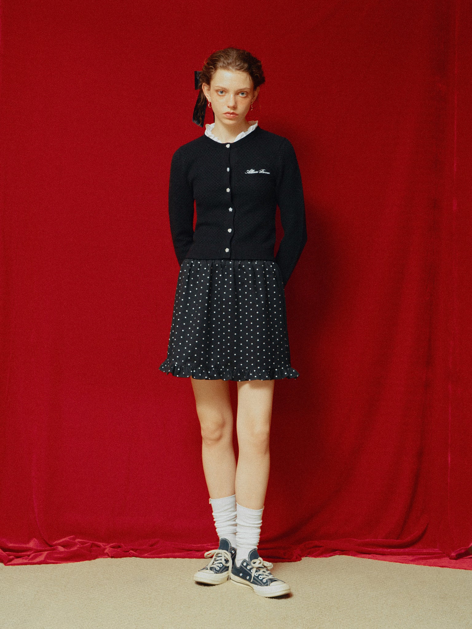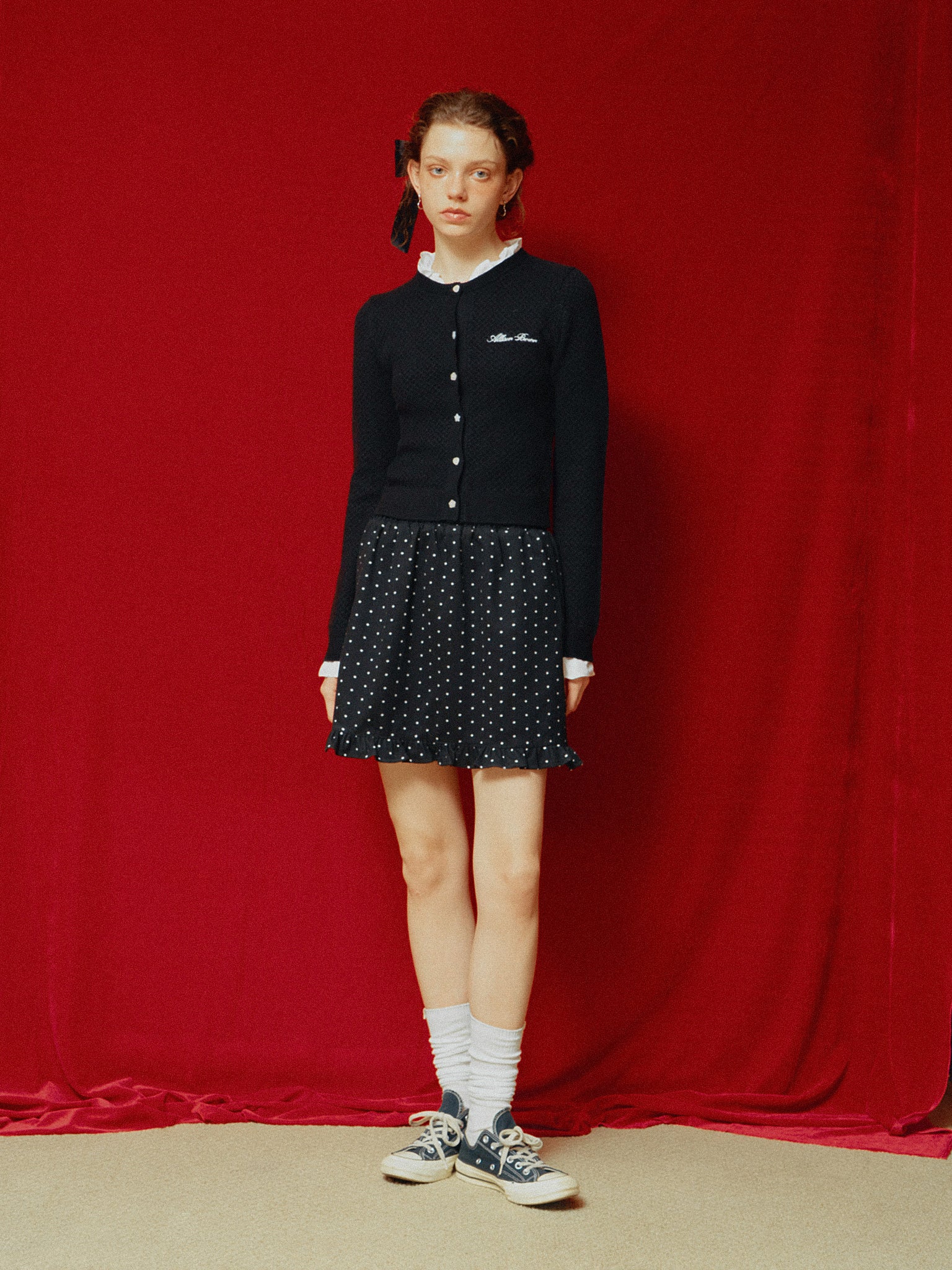 ドット柄のミニスカート。
