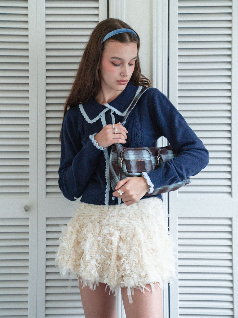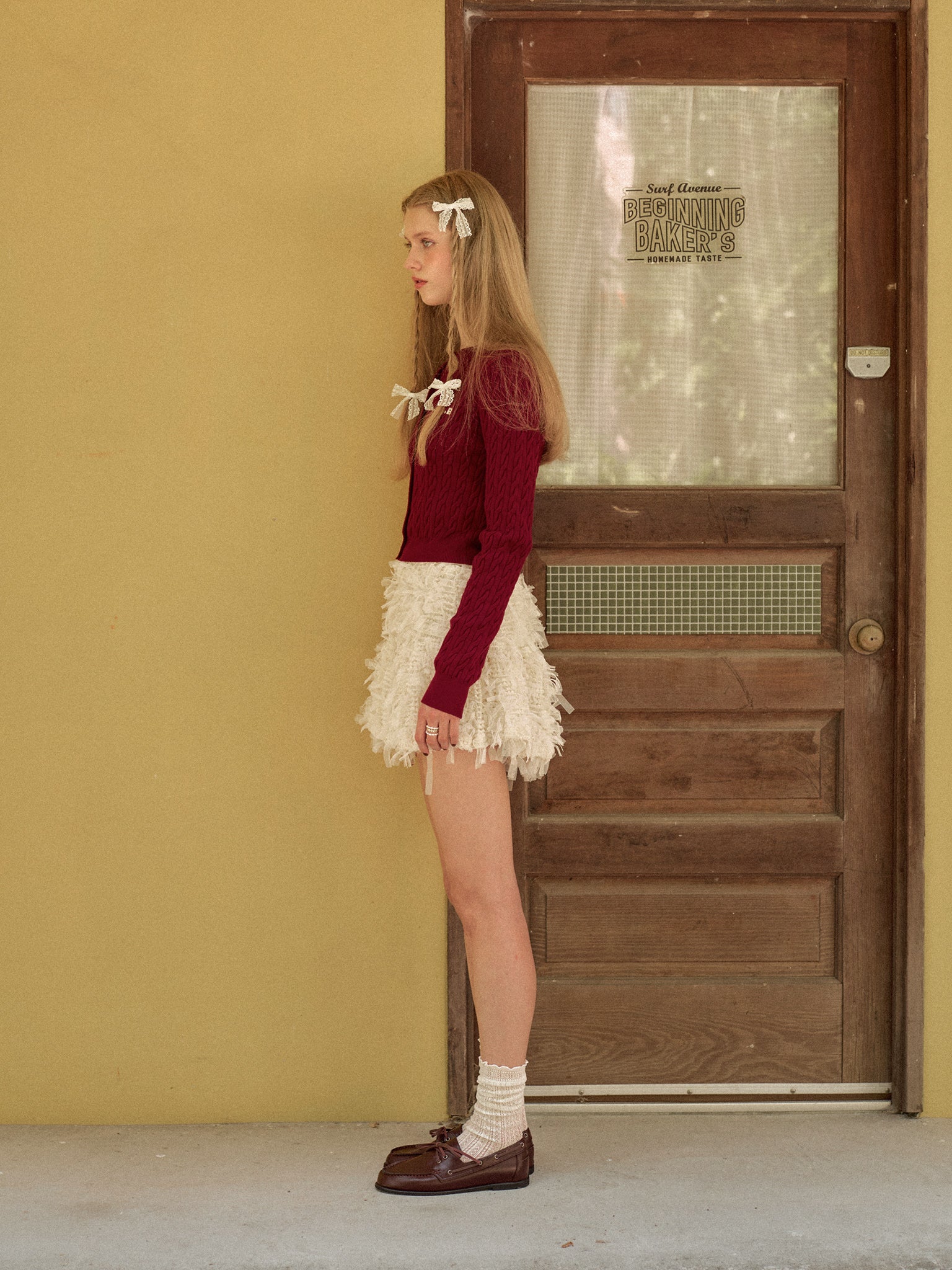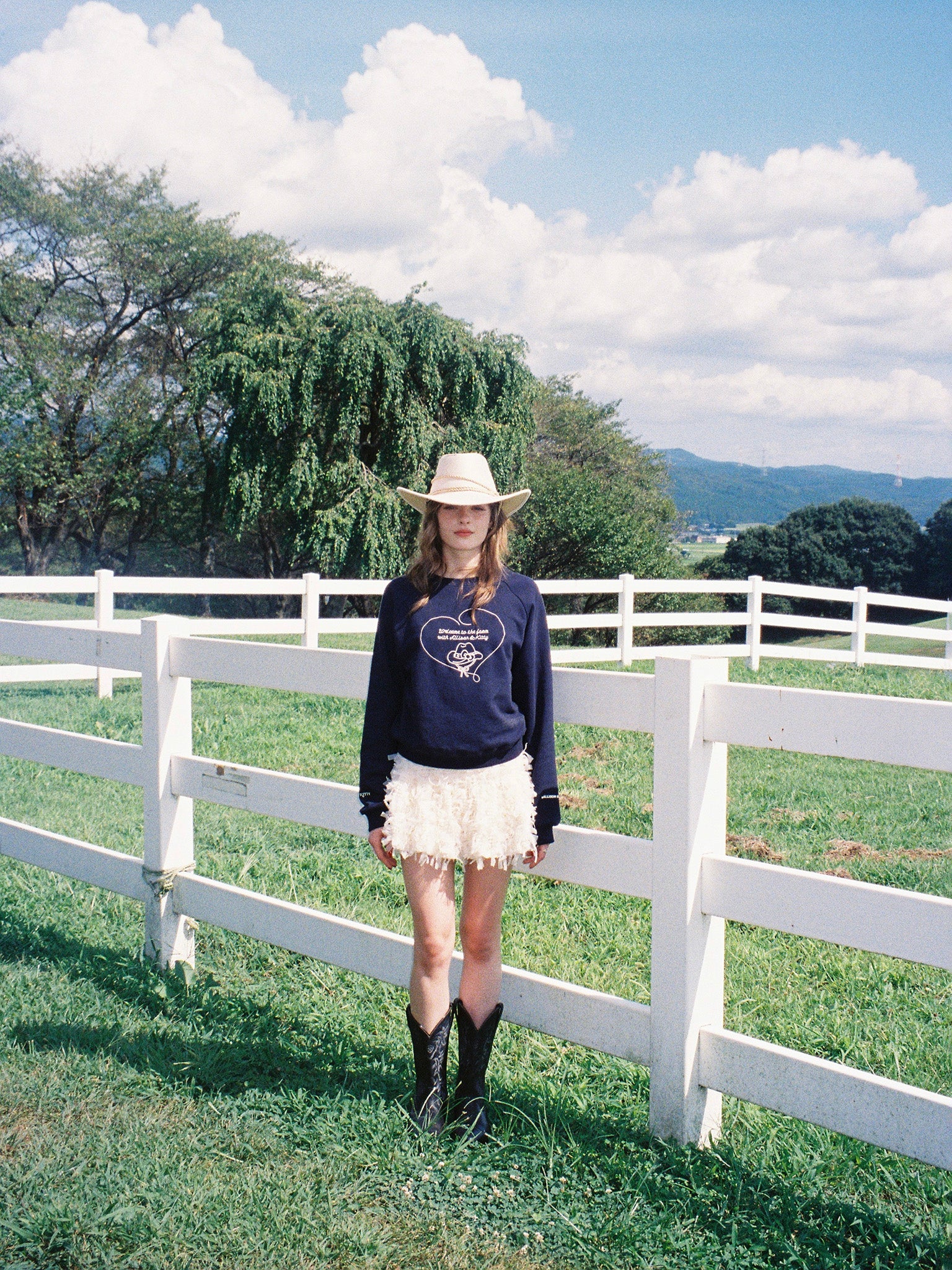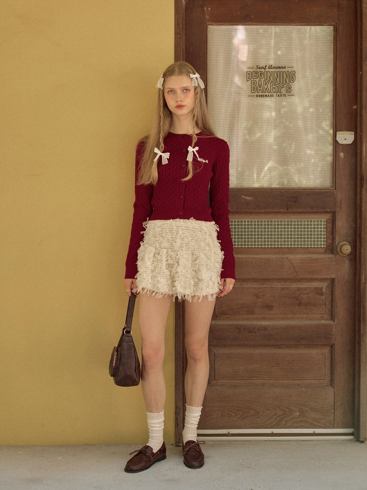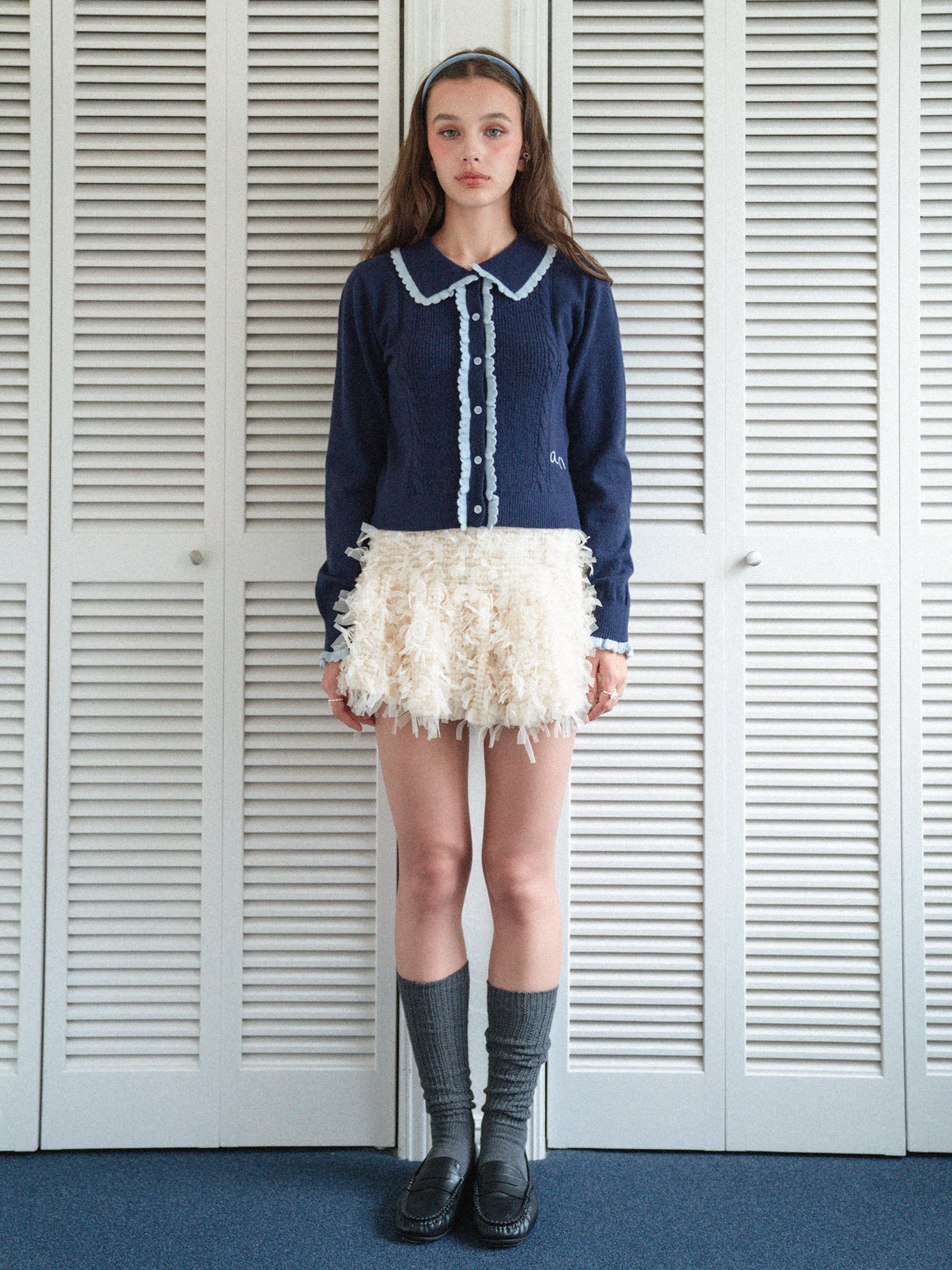 フリンジのボリュームたっぷりなシルエットが目を惹くデザイン。