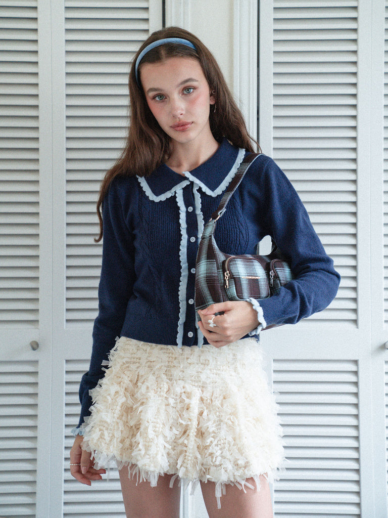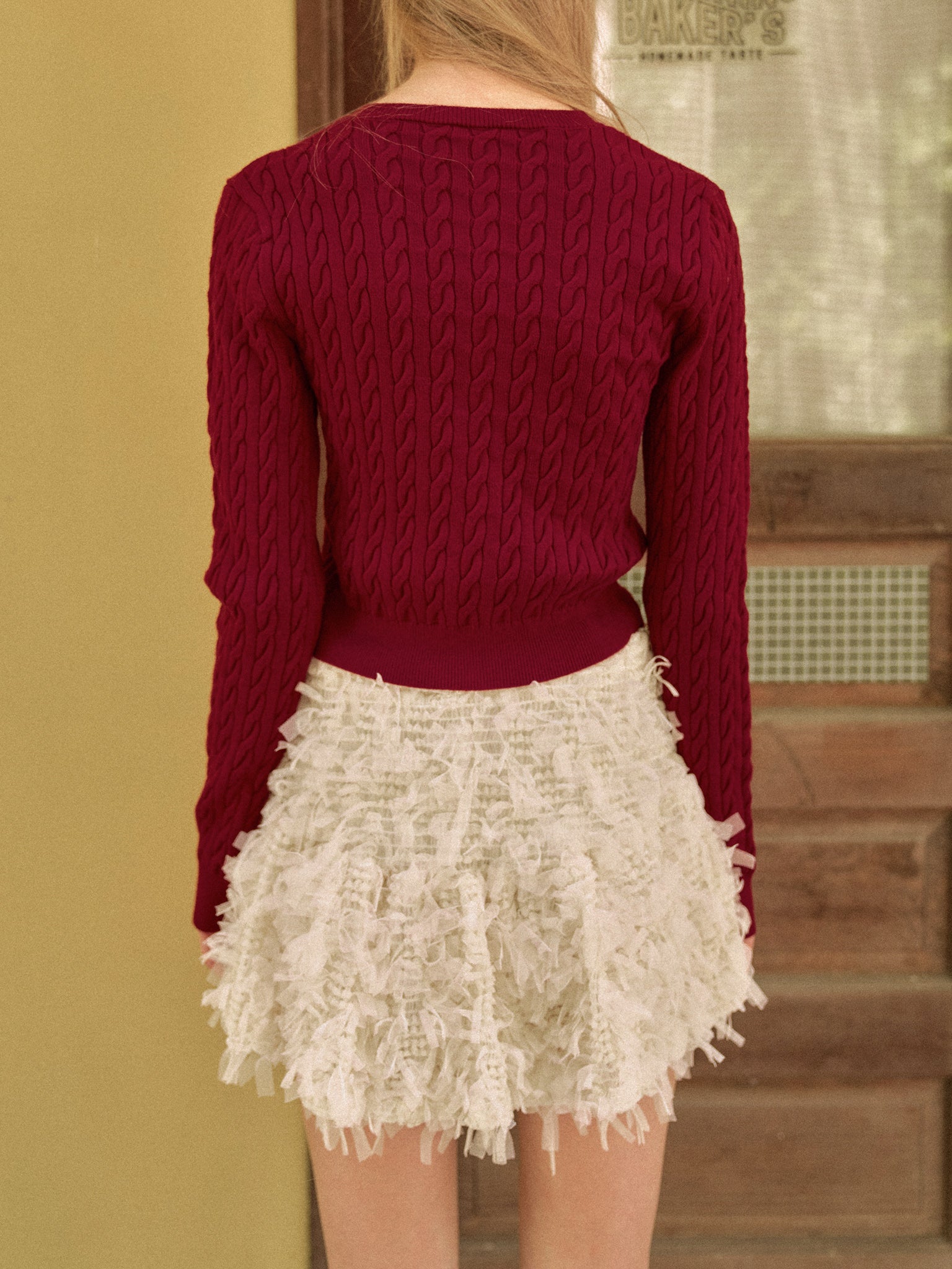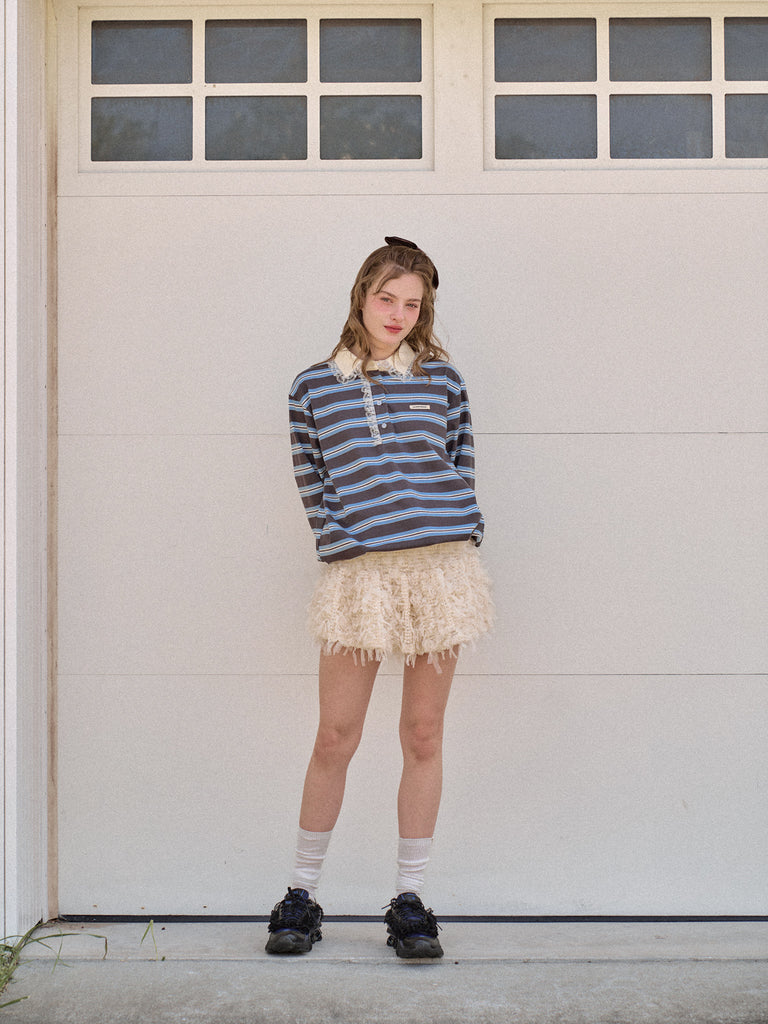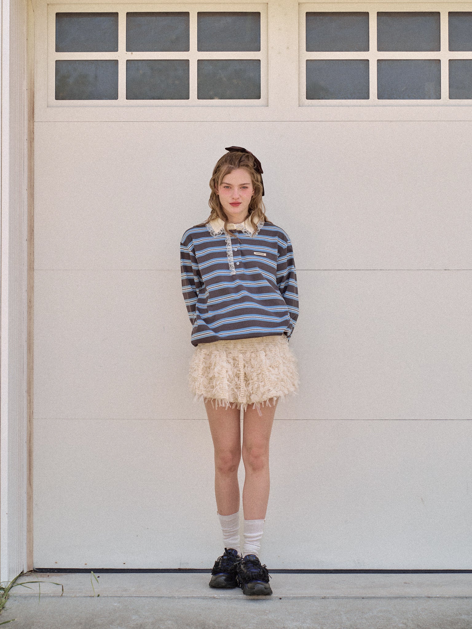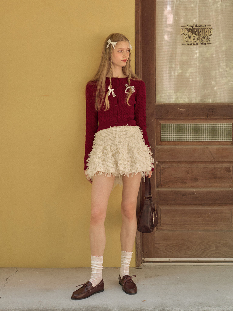 フリンジのボリュームたっぷりなシルエットが目を惹くデザイン。