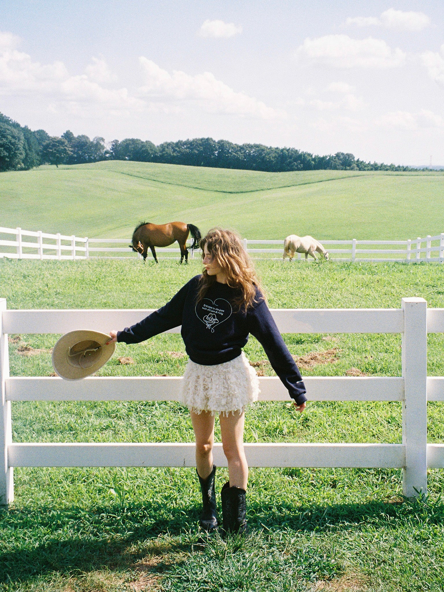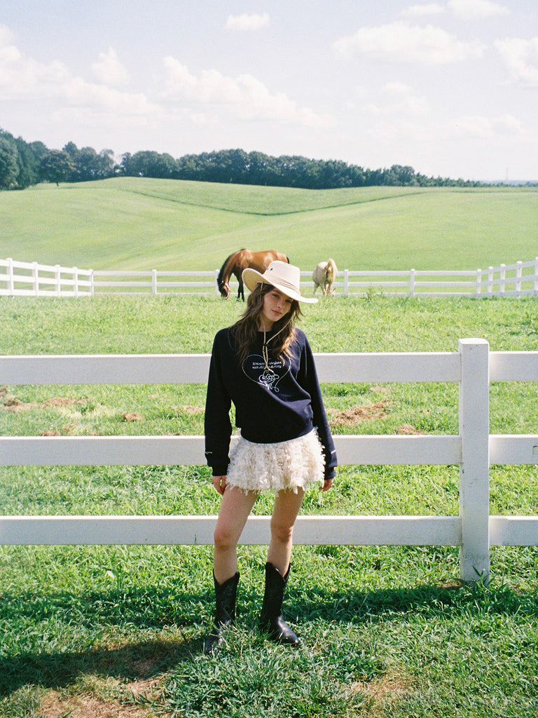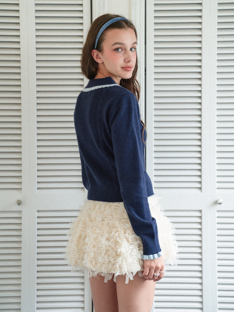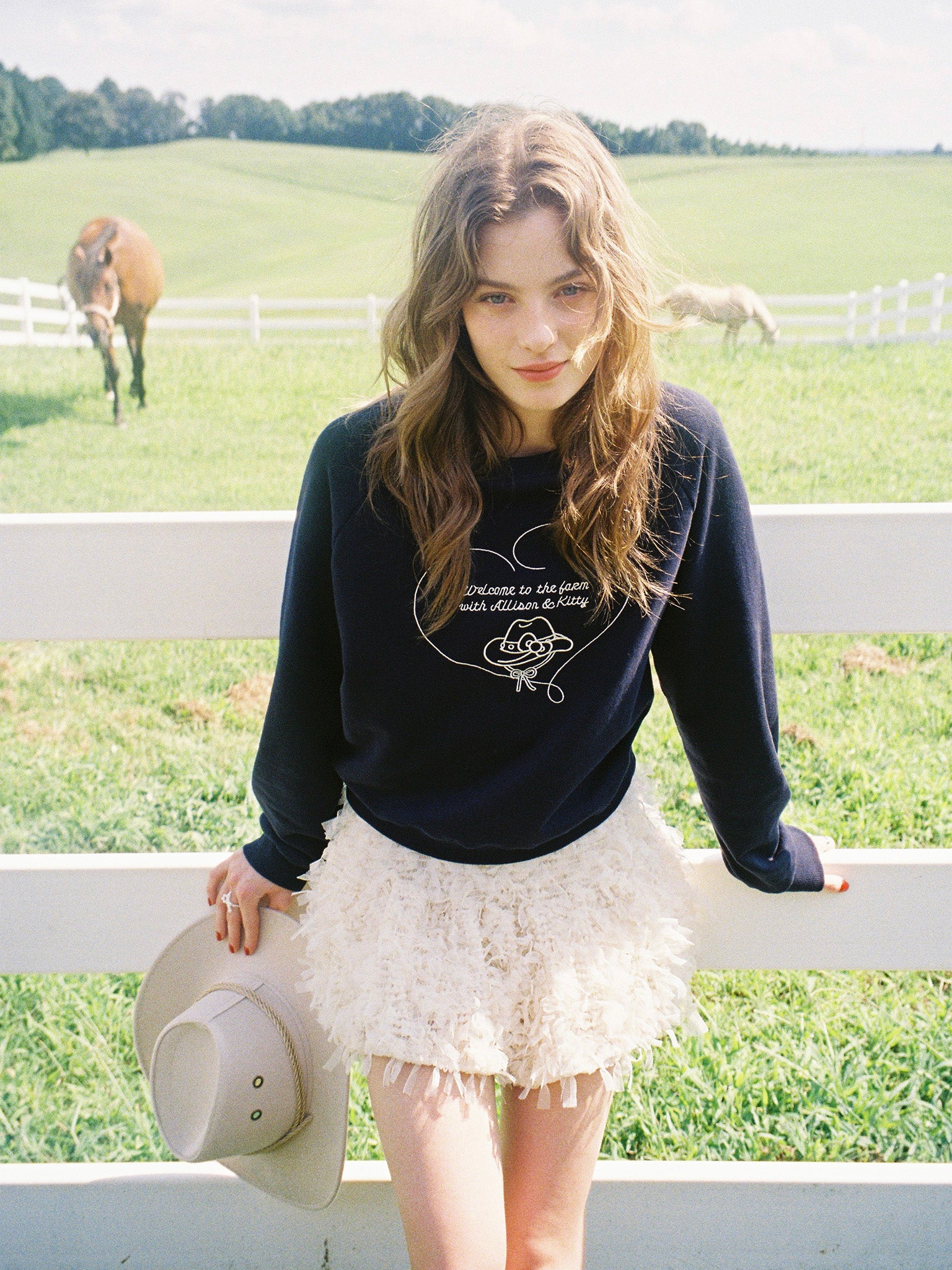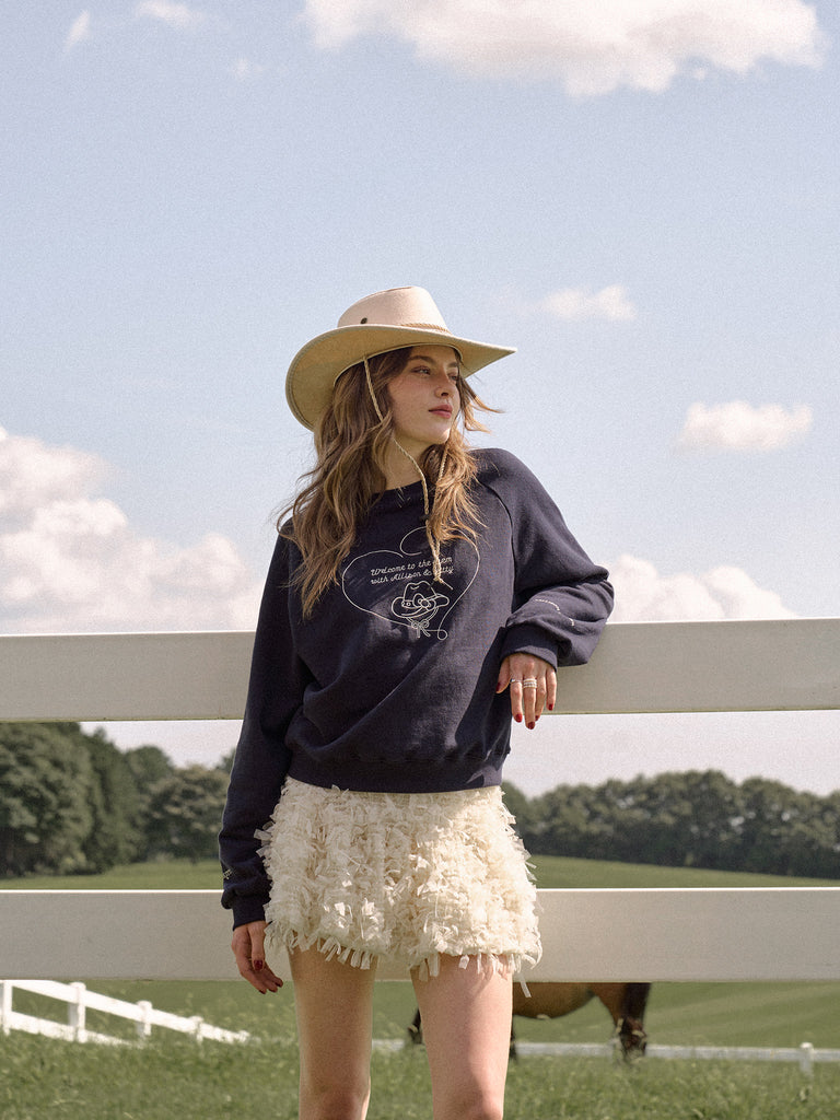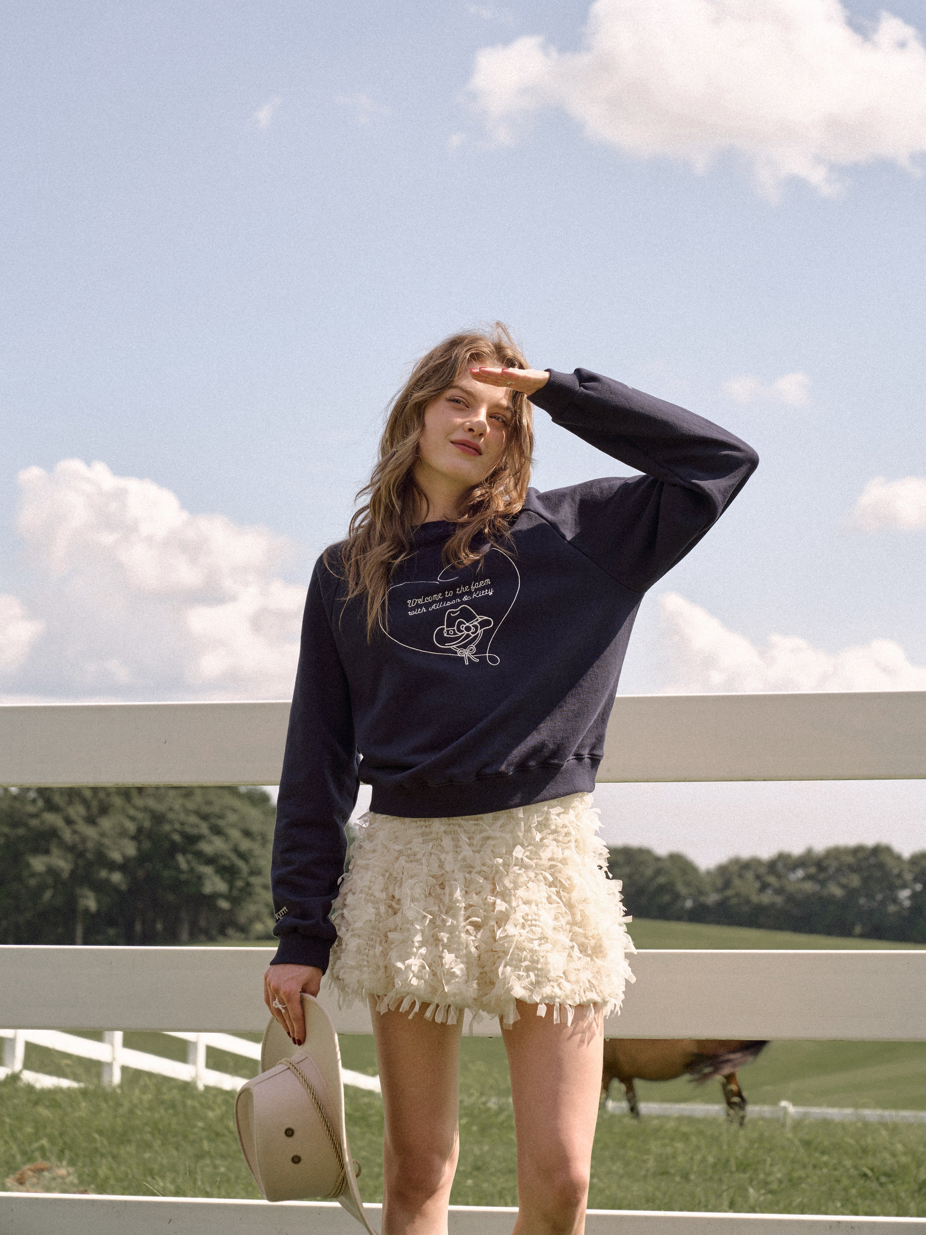 フリンジのボリュームたっぷりなシルエットが目を惹くデザイン。