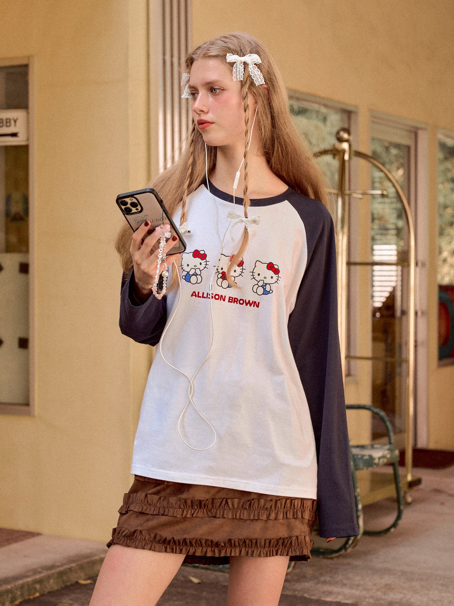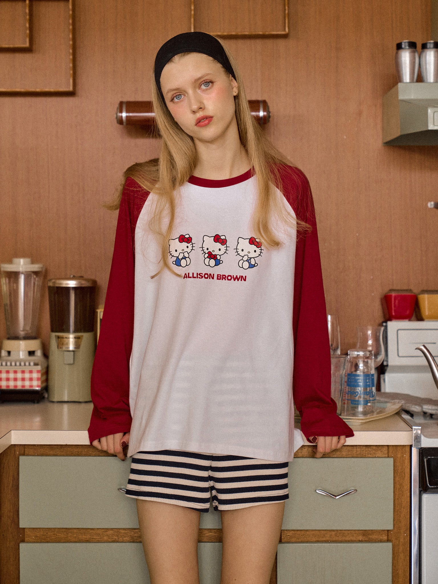 HELLO KITTY × ALLISON BROWN Raglan Long Sleeve T-shirt