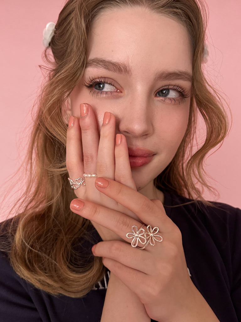 他のリングと合わせずに、おひとつつけるだけでも存在感があり