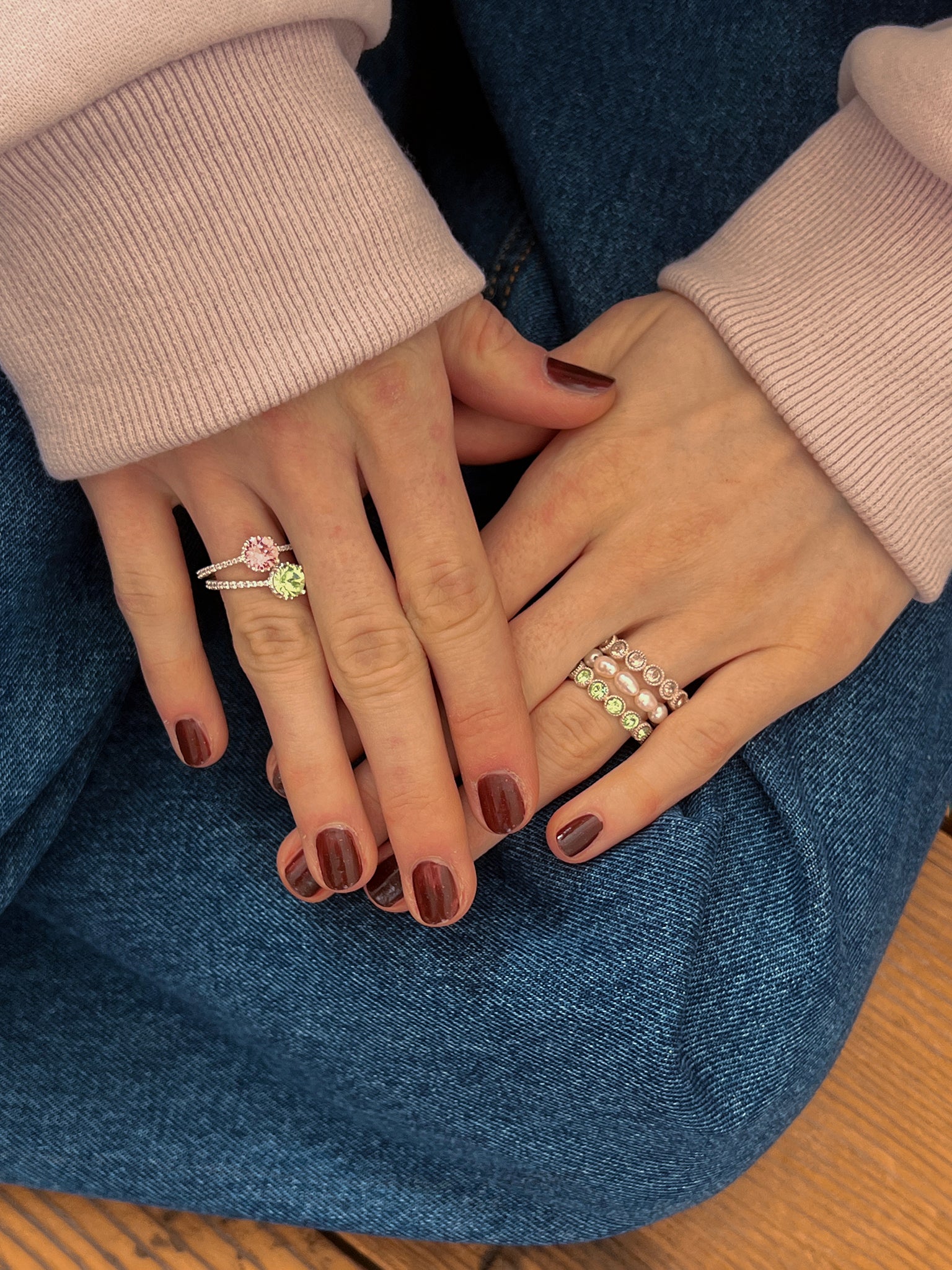 カラーストーンのワンポイントリングと