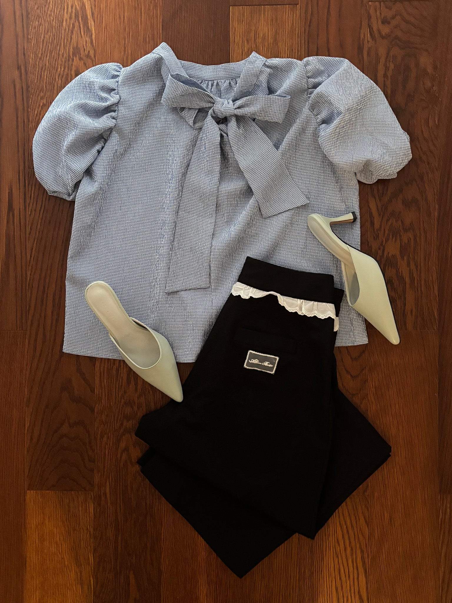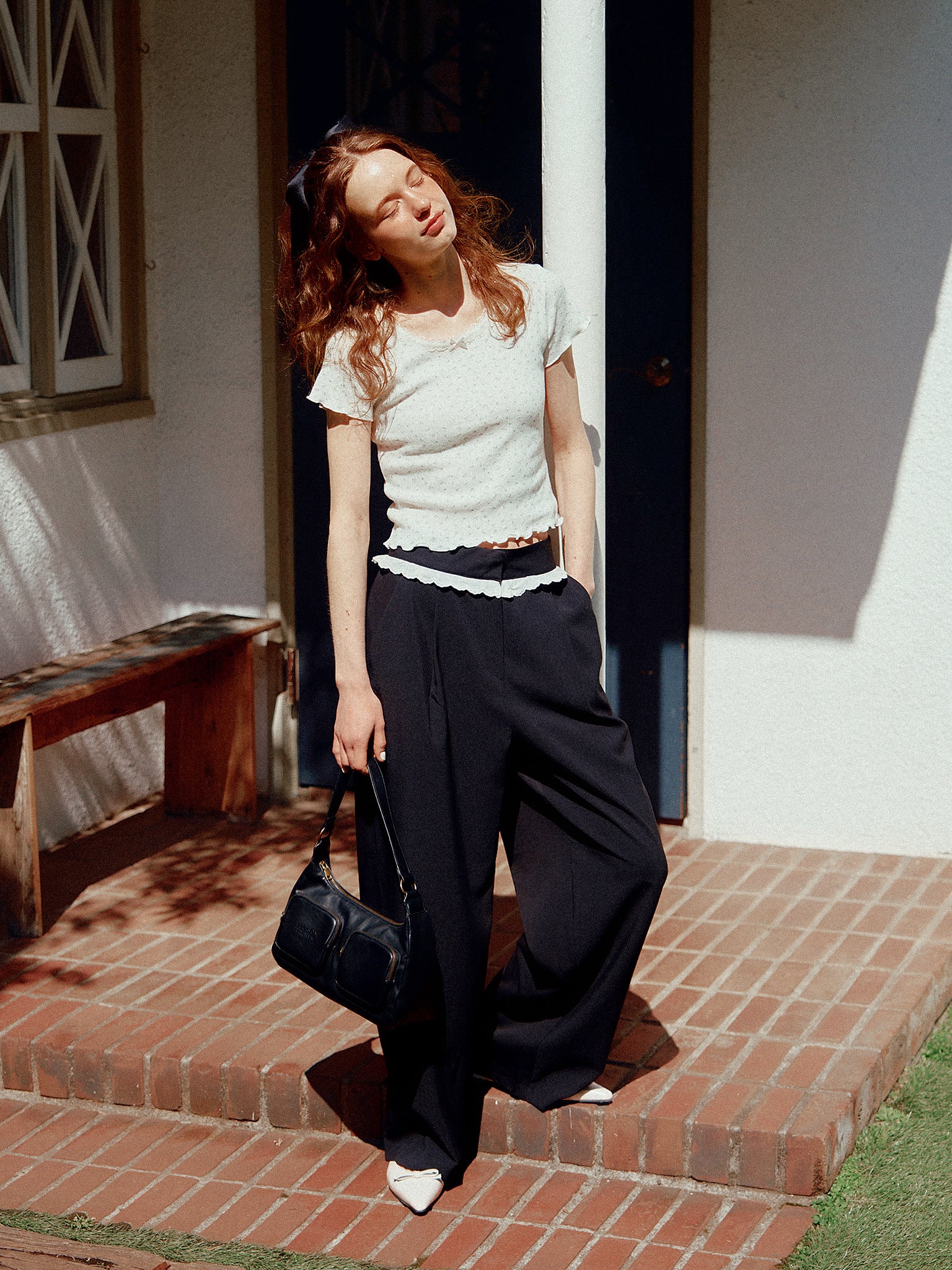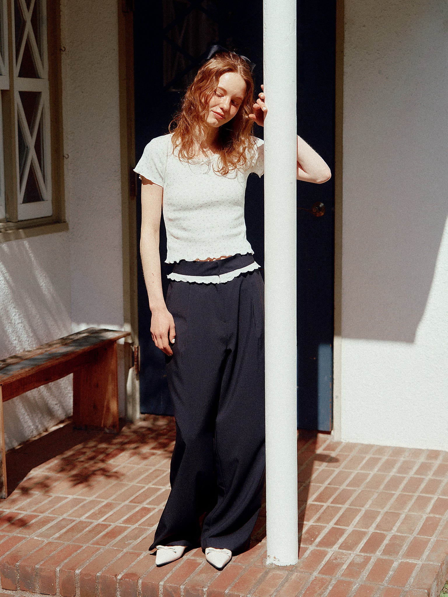 ウエストのフリルレースでガーリーに。