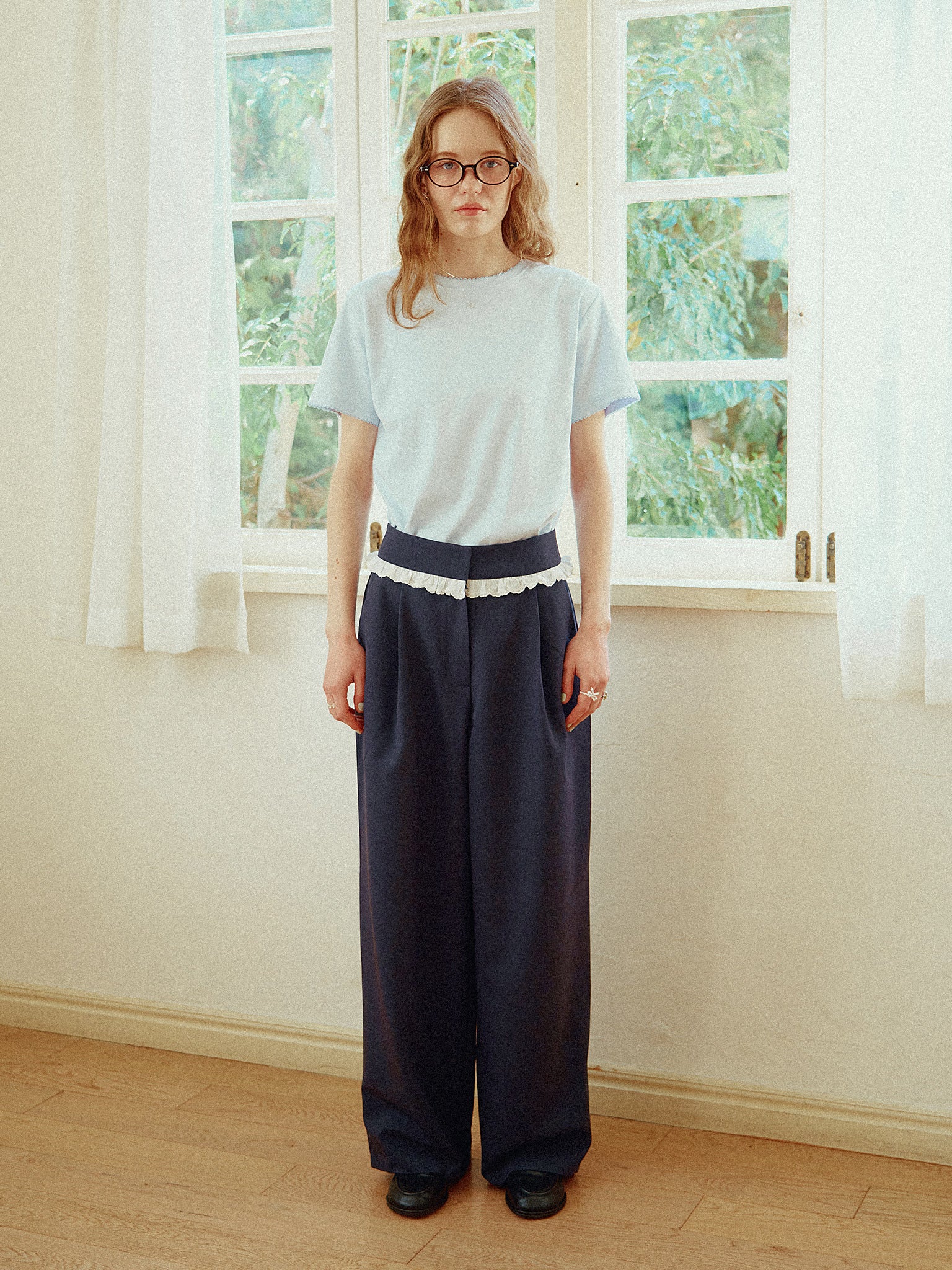 Easy Moment Frill Pants - Navy / S は入荷次第発送いたします