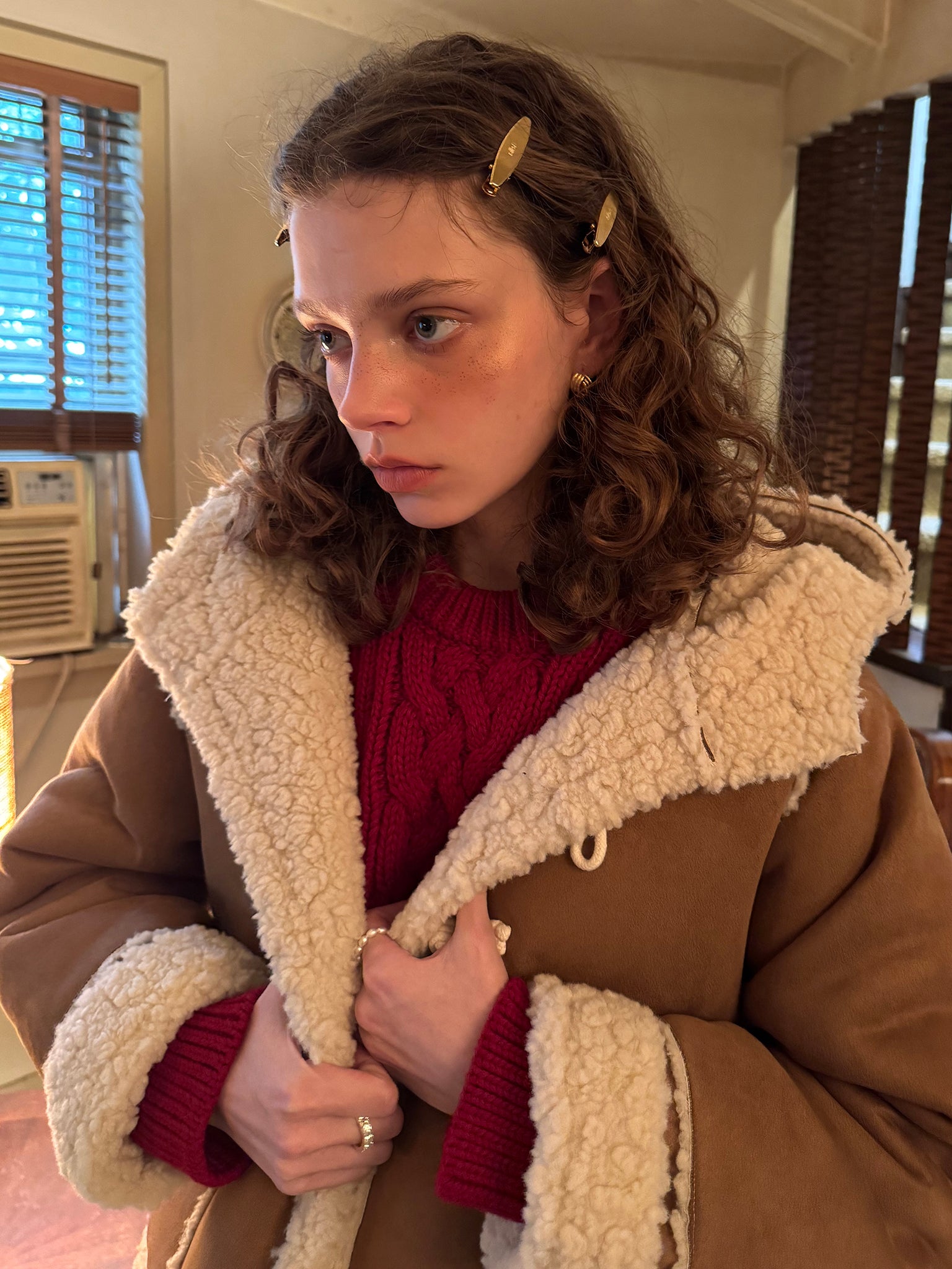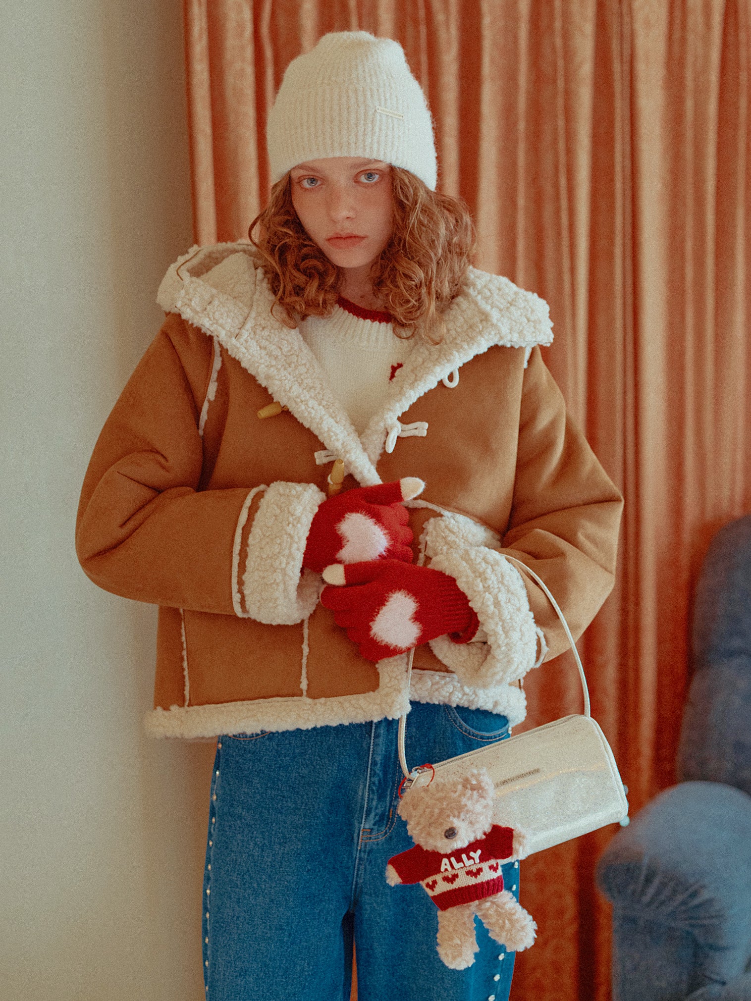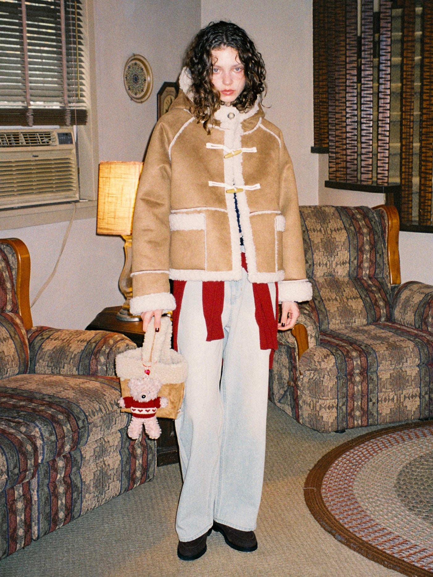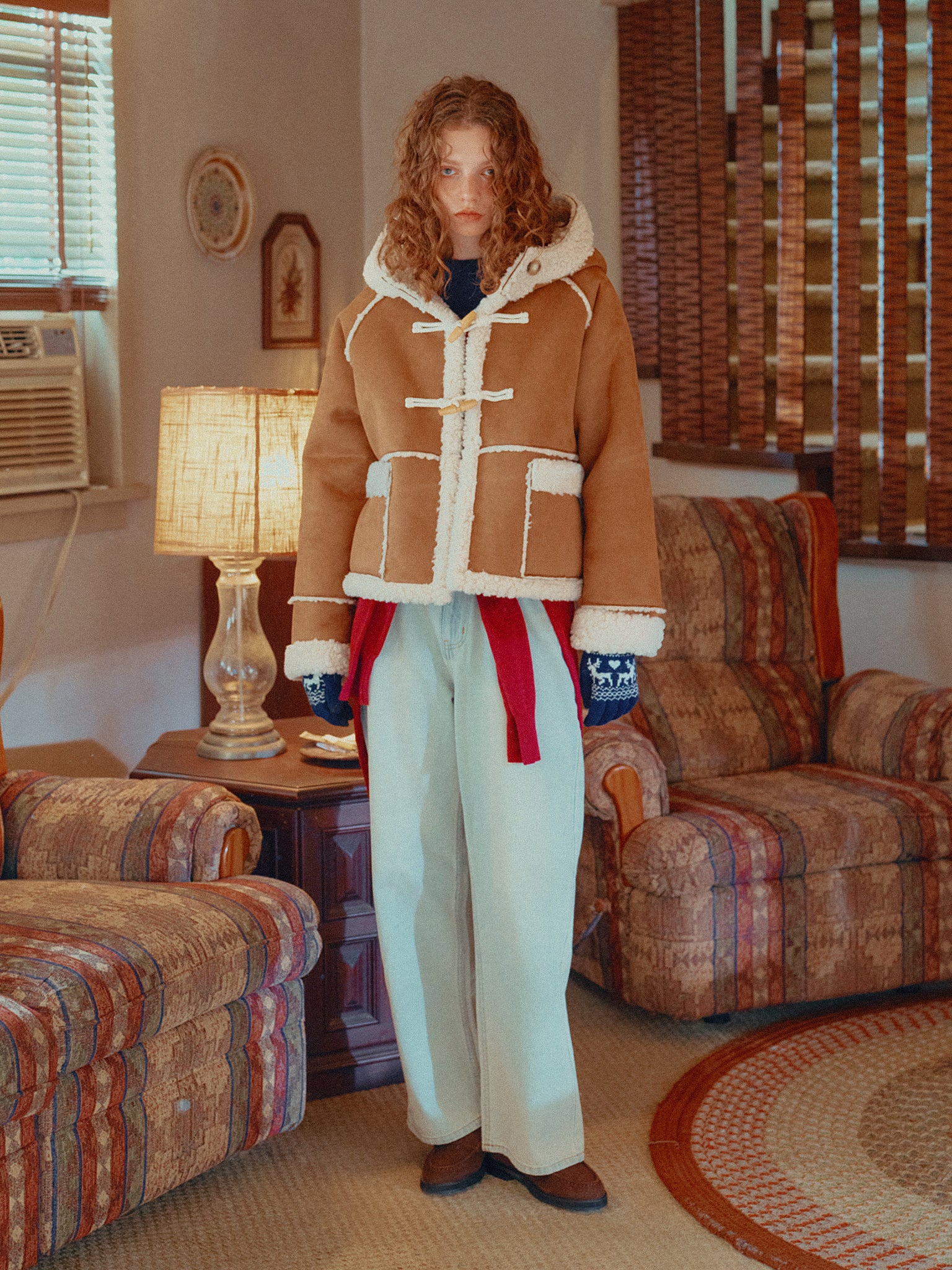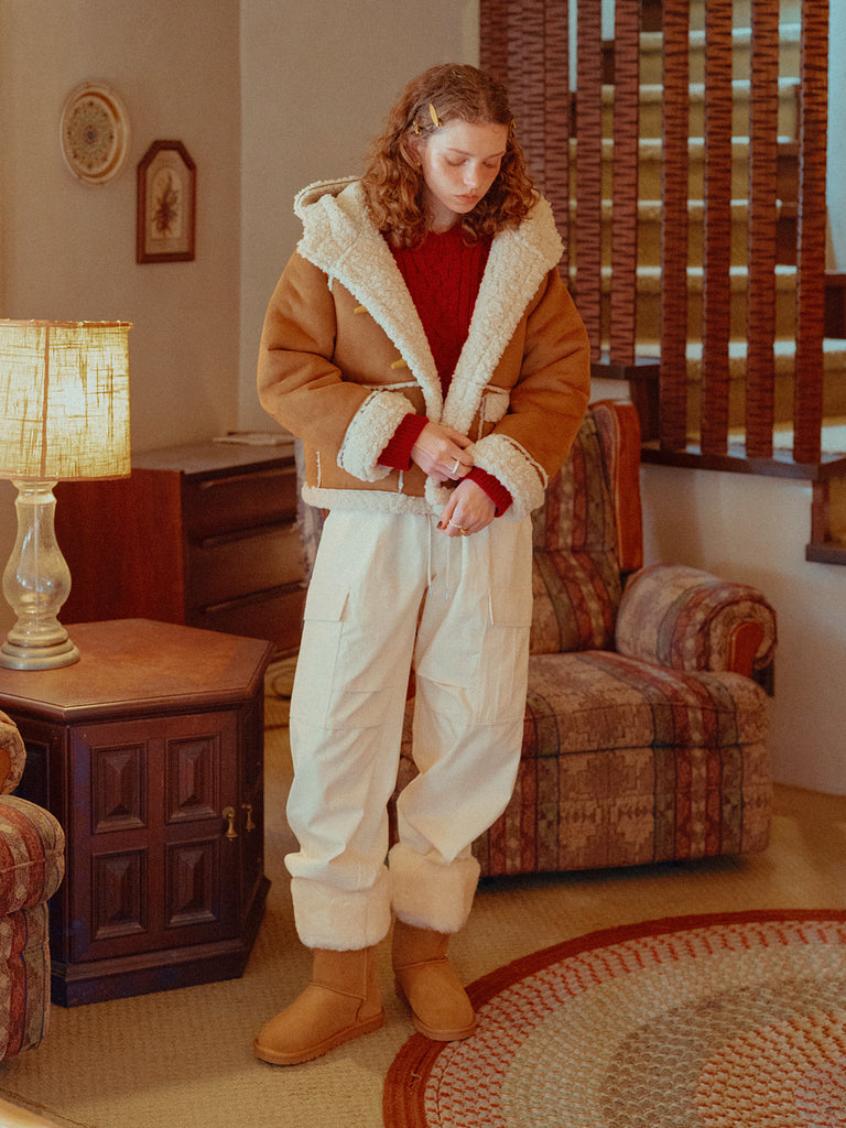 袖など折り返して見せたボアがガーリーさのあるデザイン。