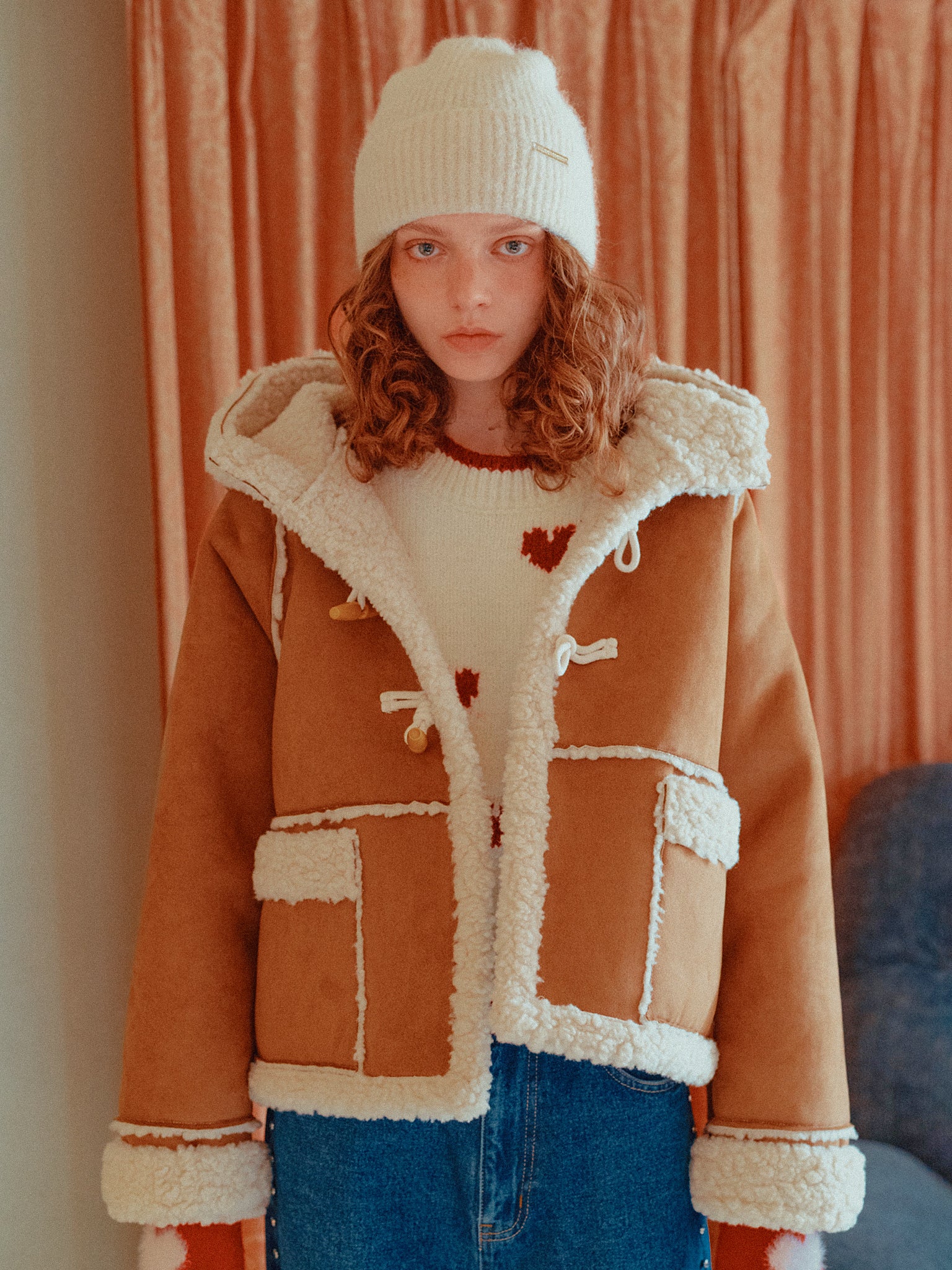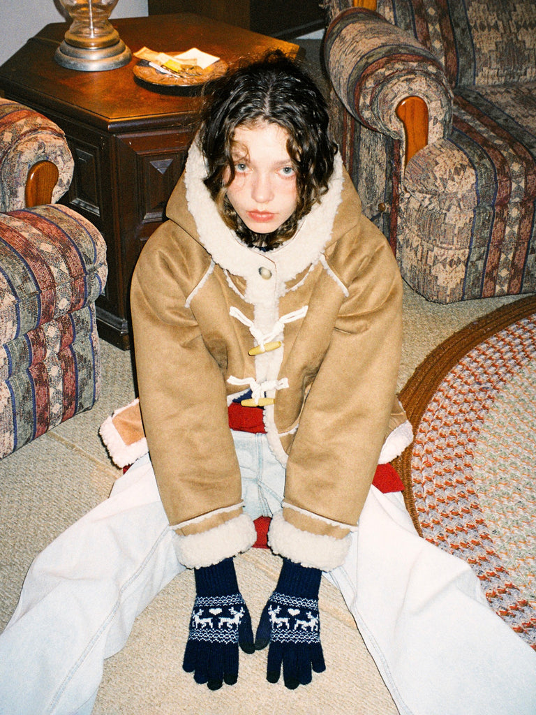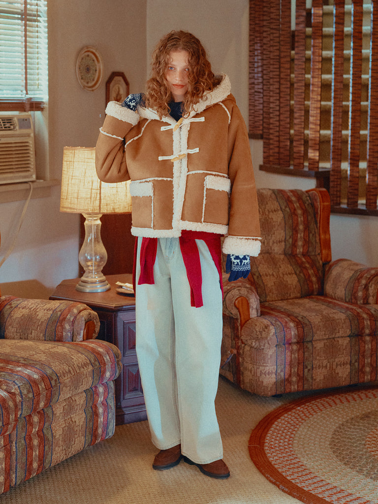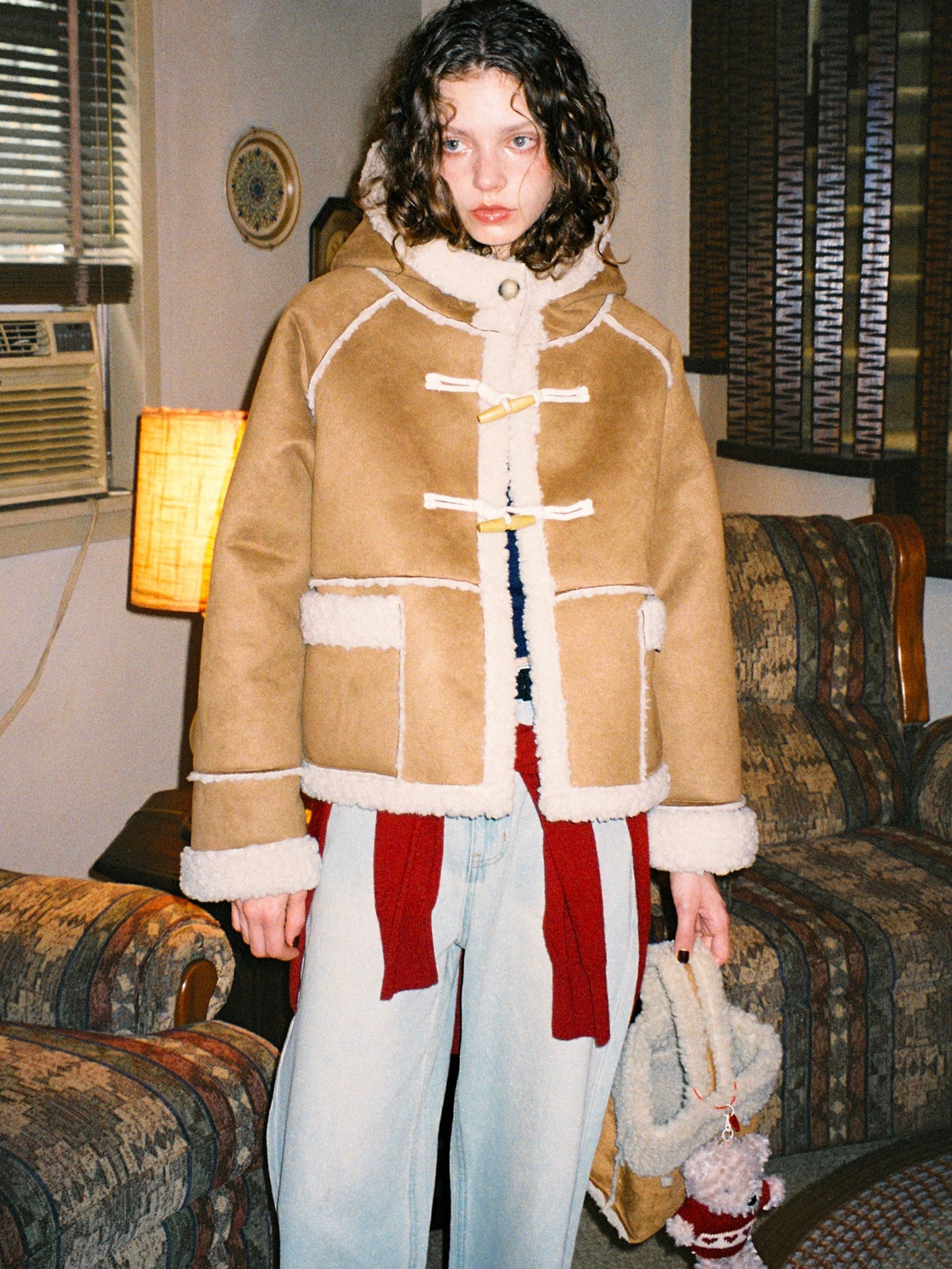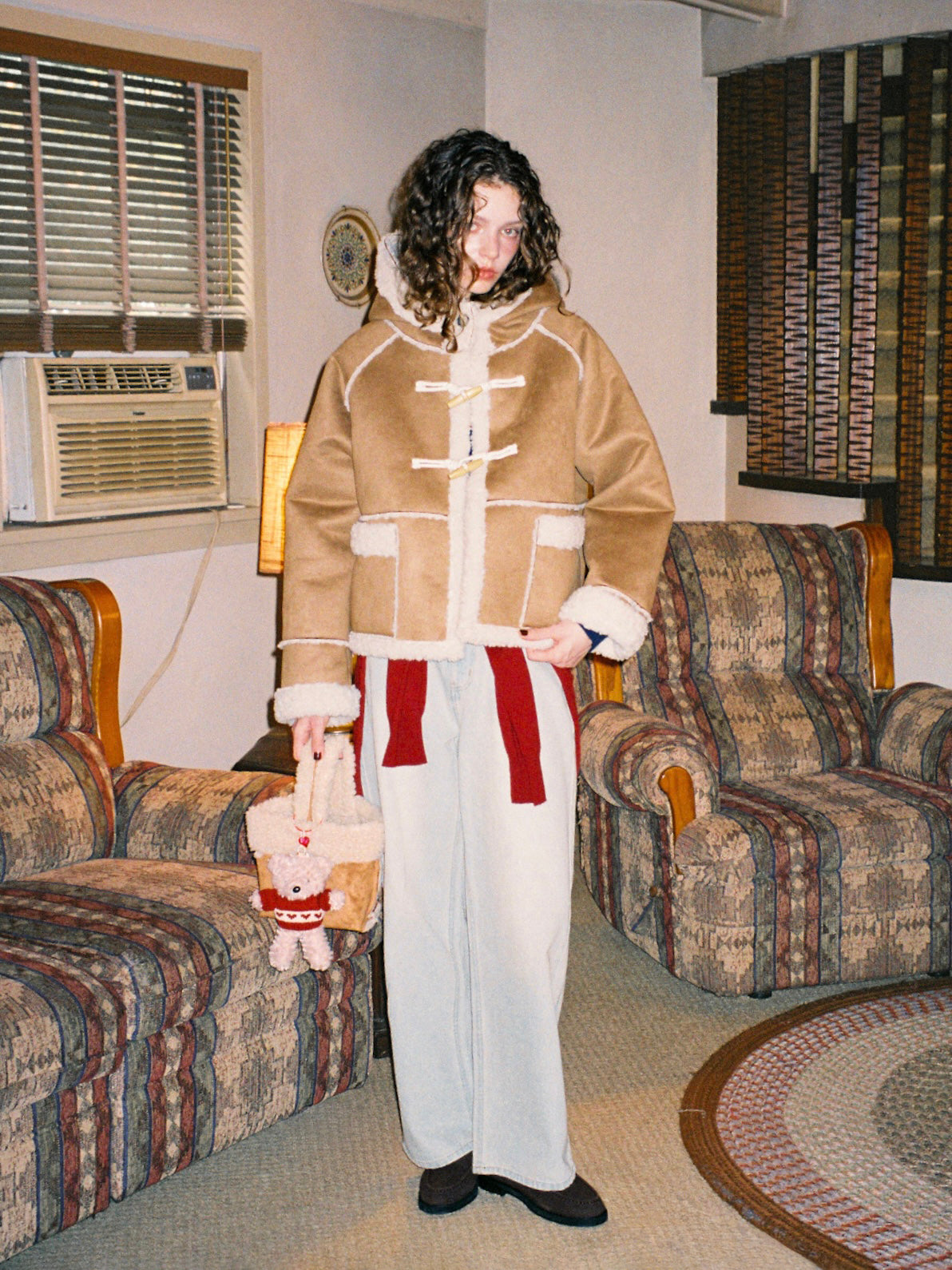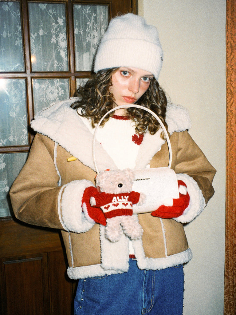 袖など折り返して見せたボアがガーリーさのあるデザイン。