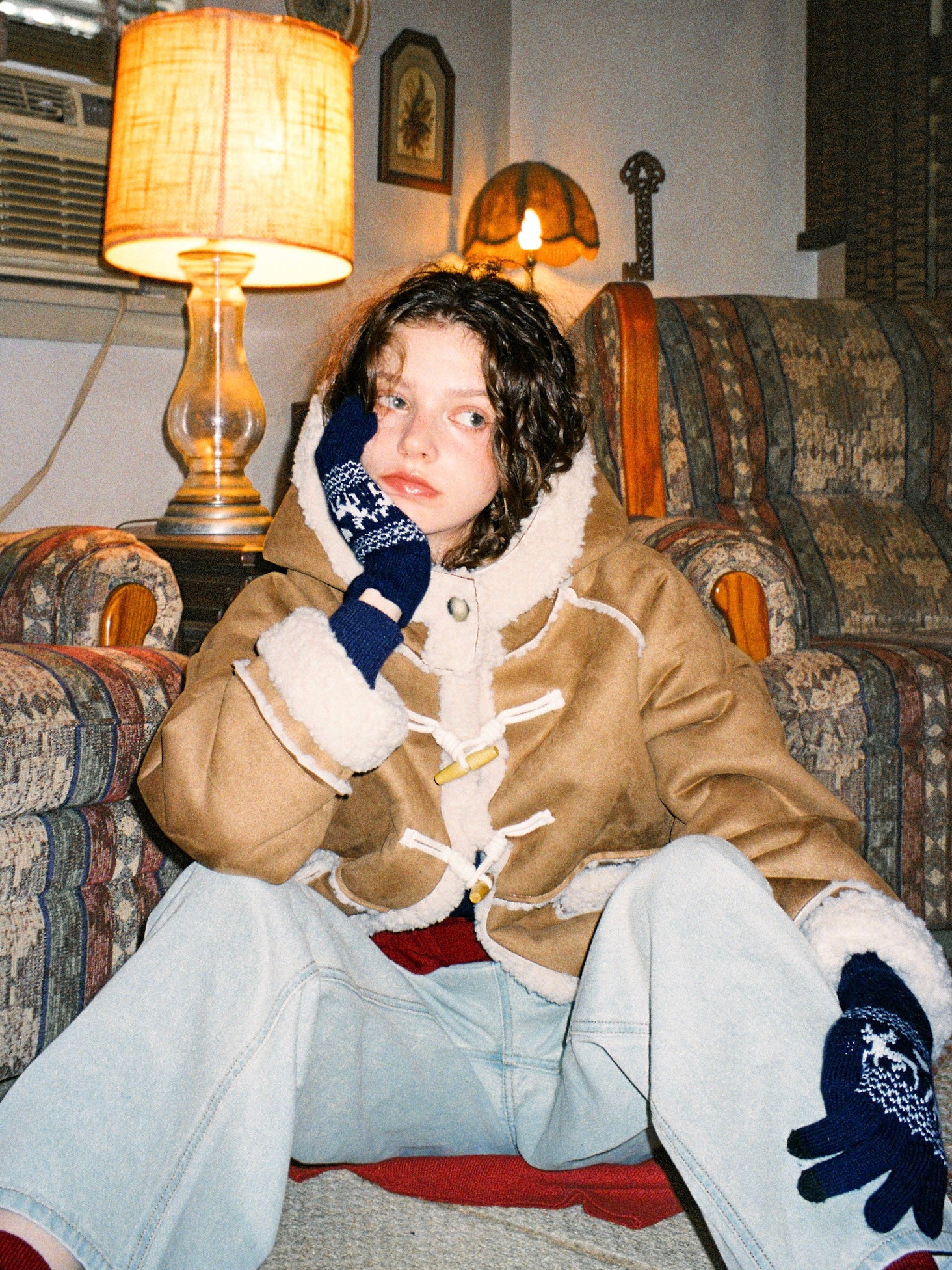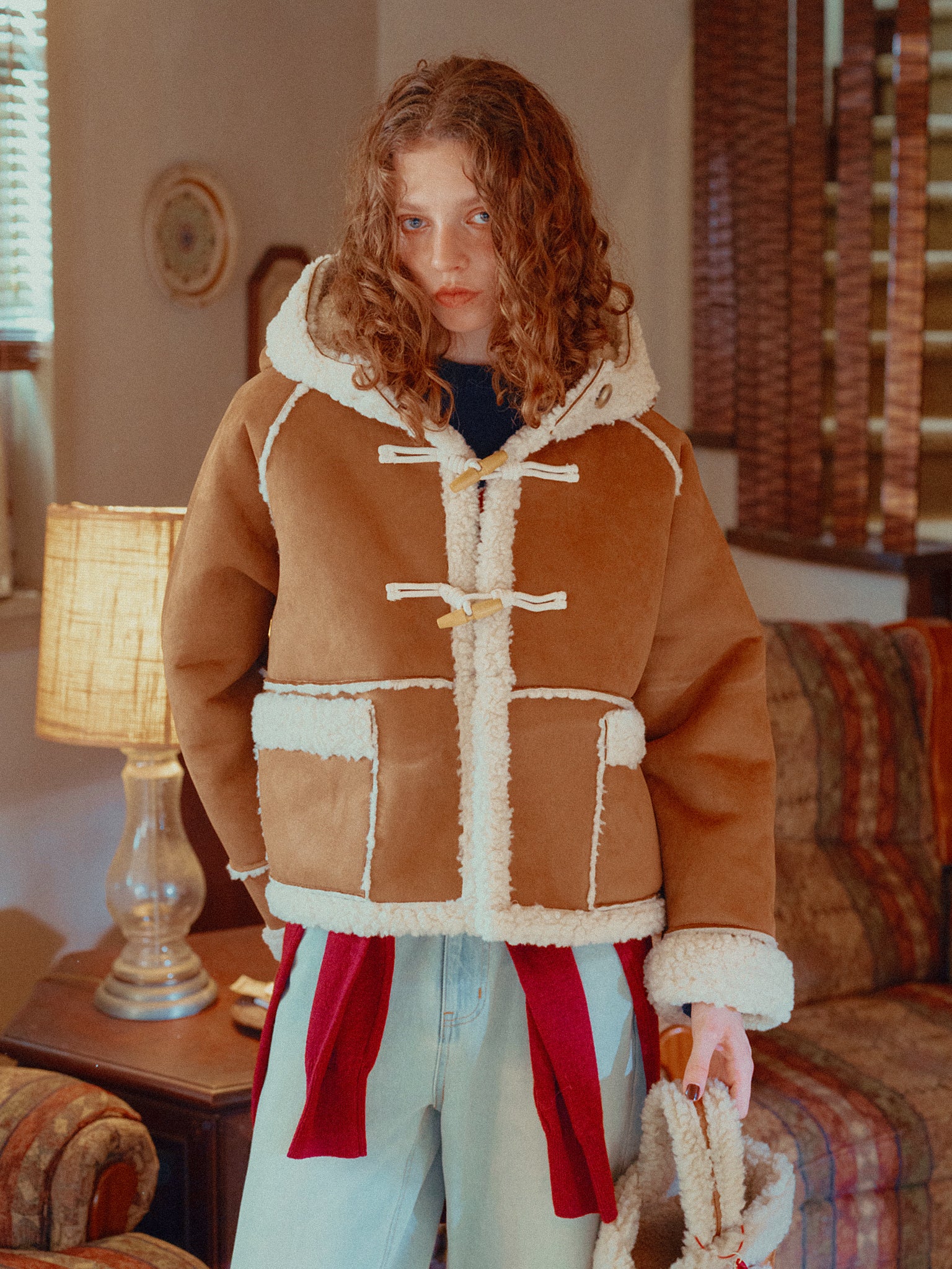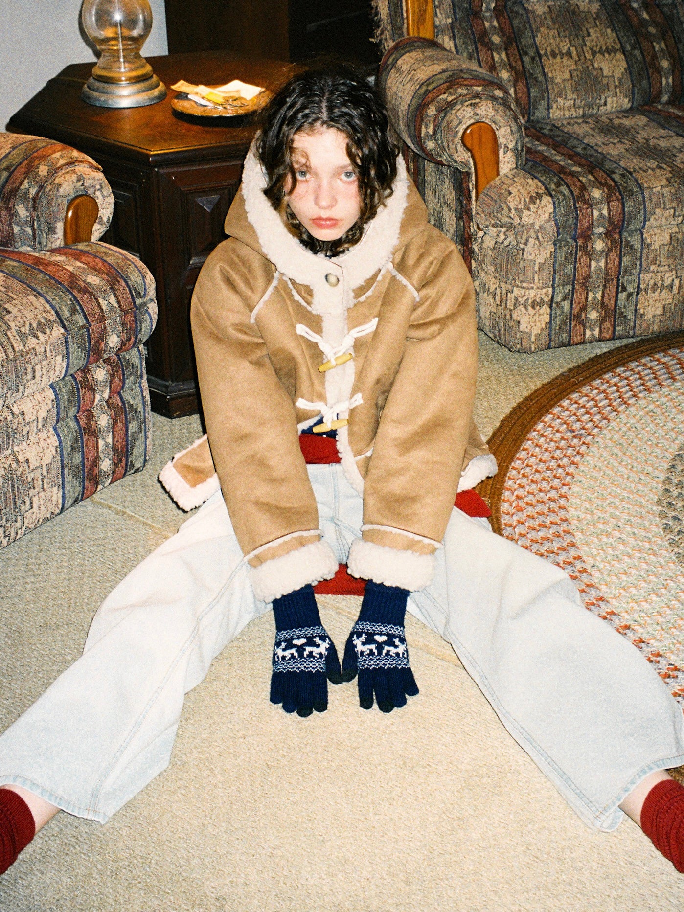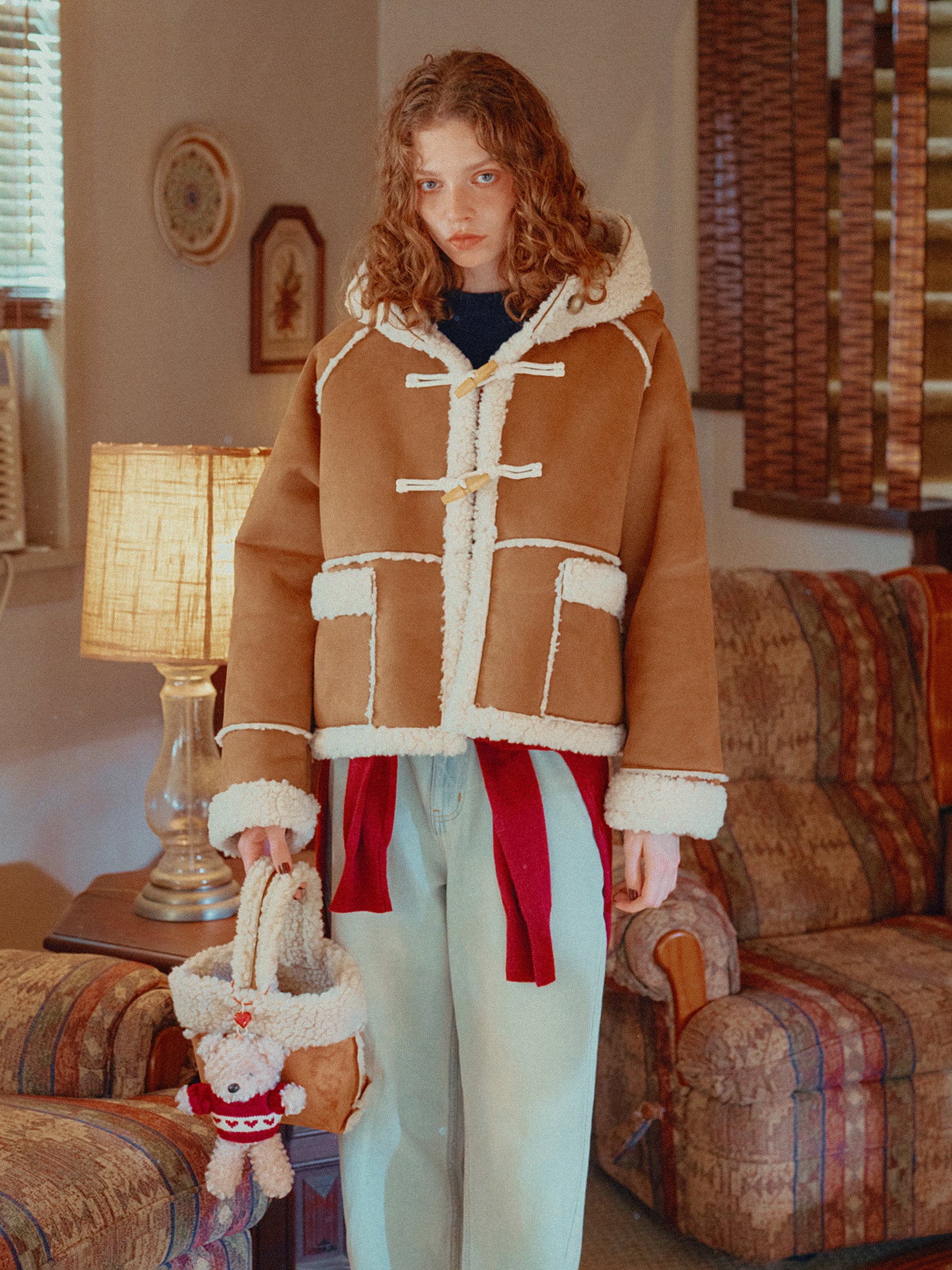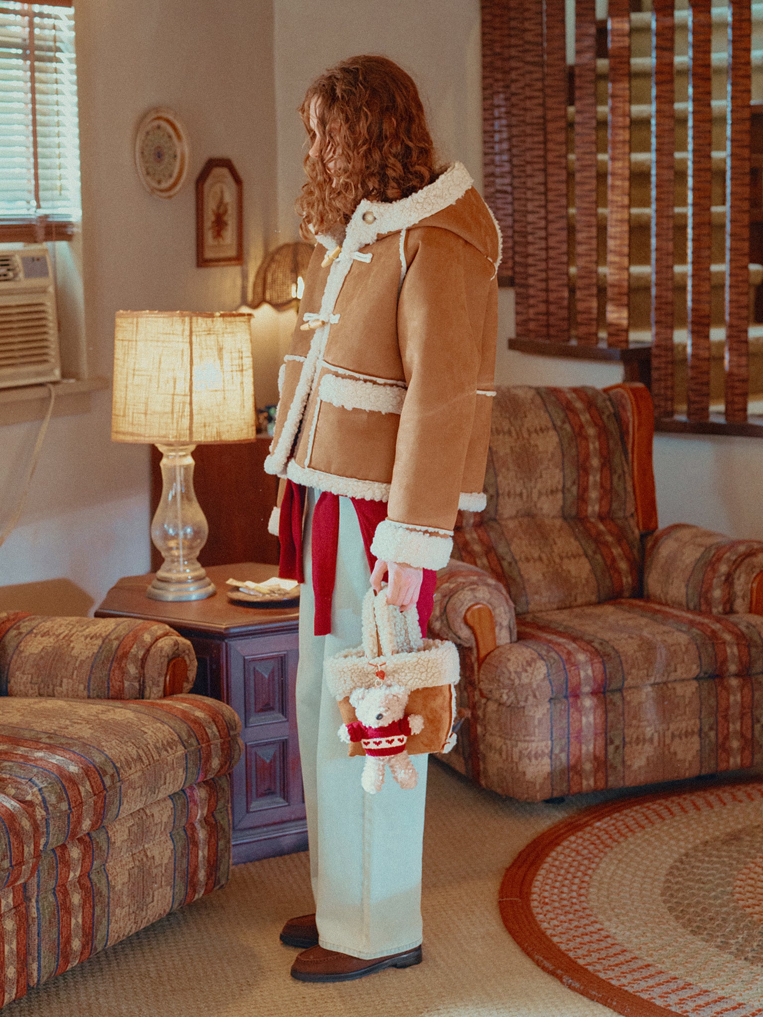 袖など折り返して見せたボアがガーリーさのあるデザイン。