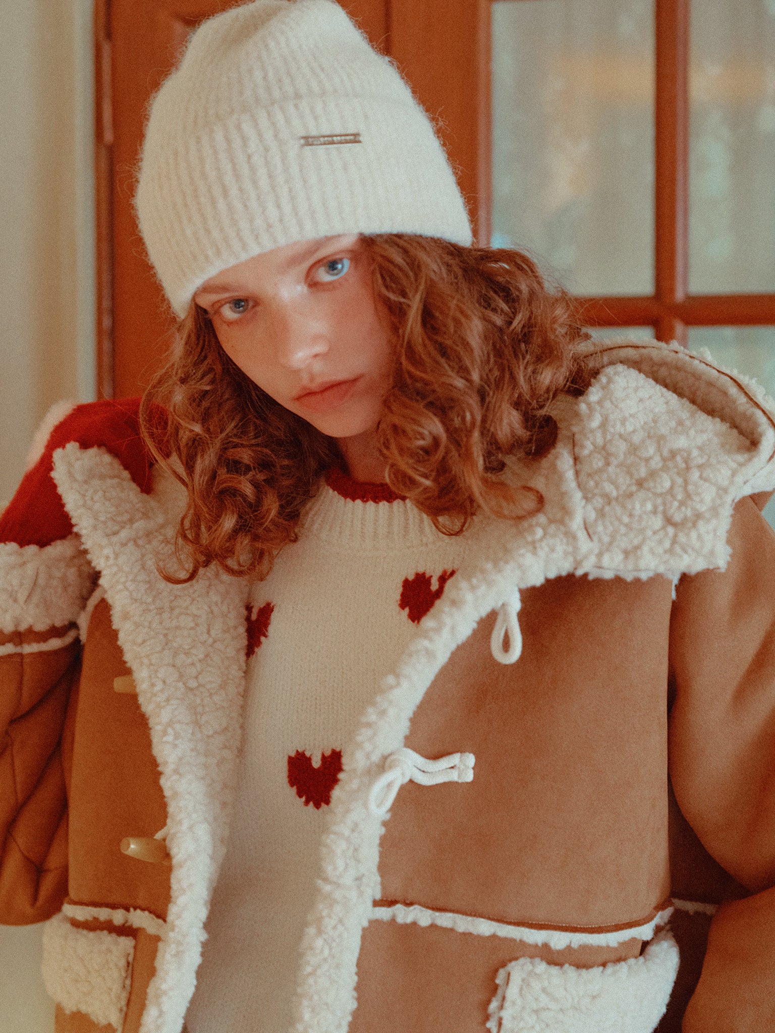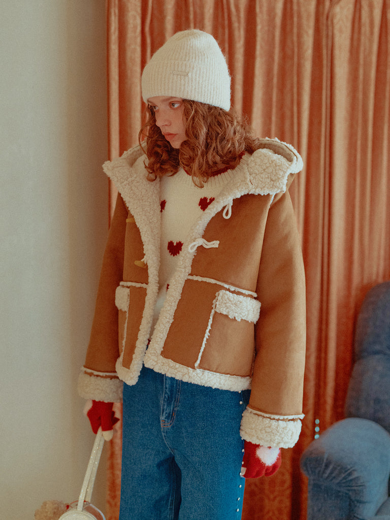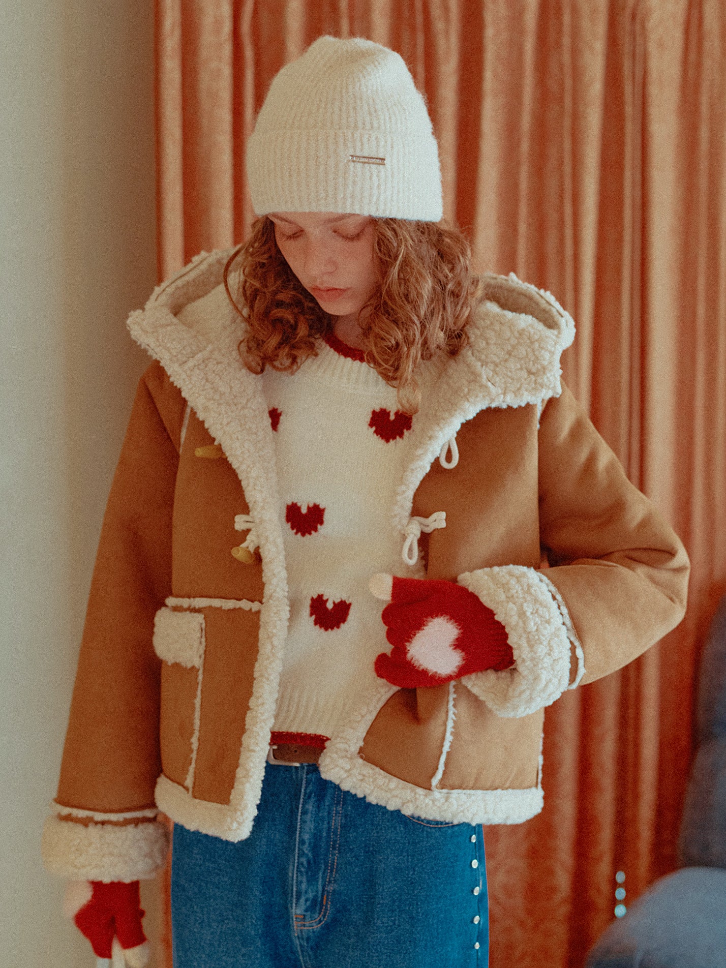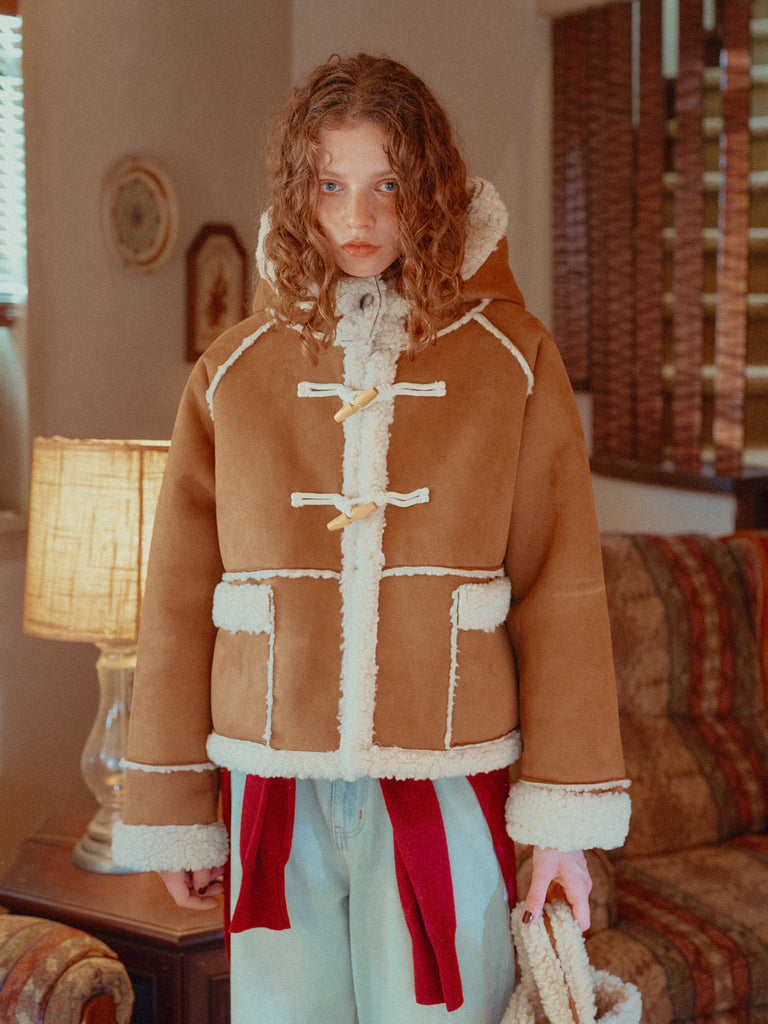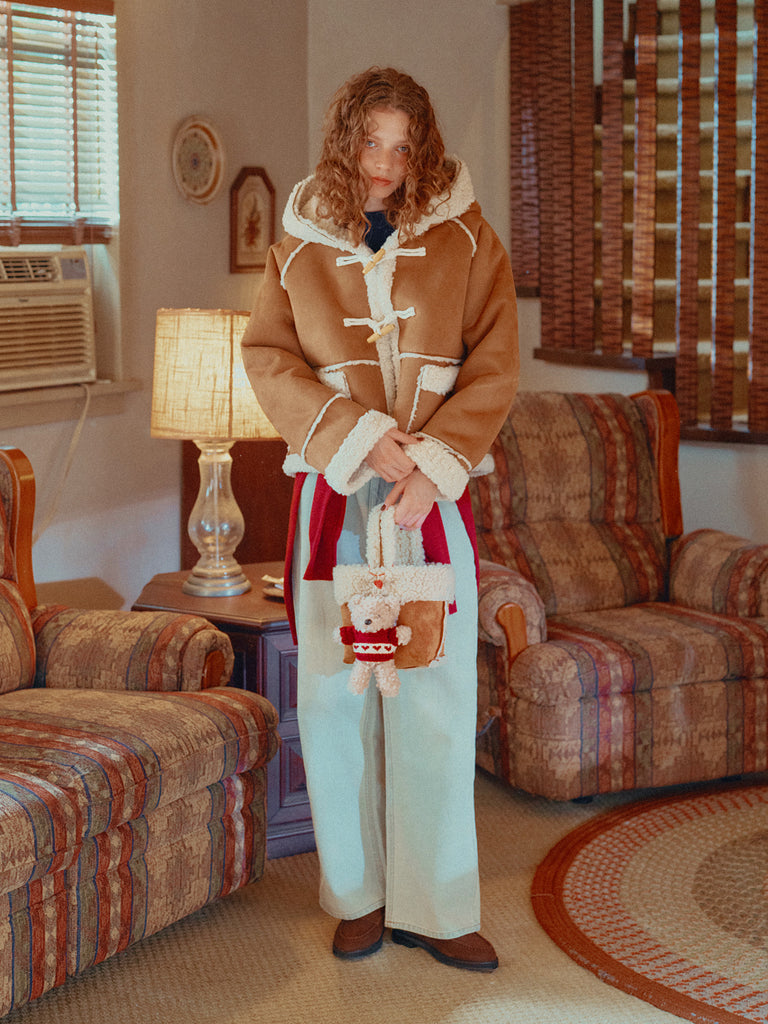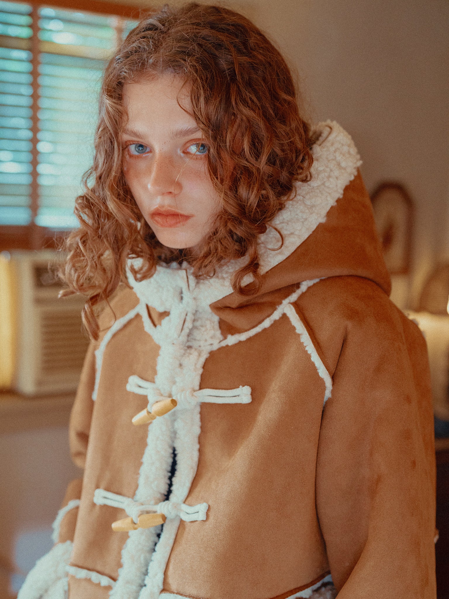 袖など折り返して見せたボアがガーリーさのあるデザイン。