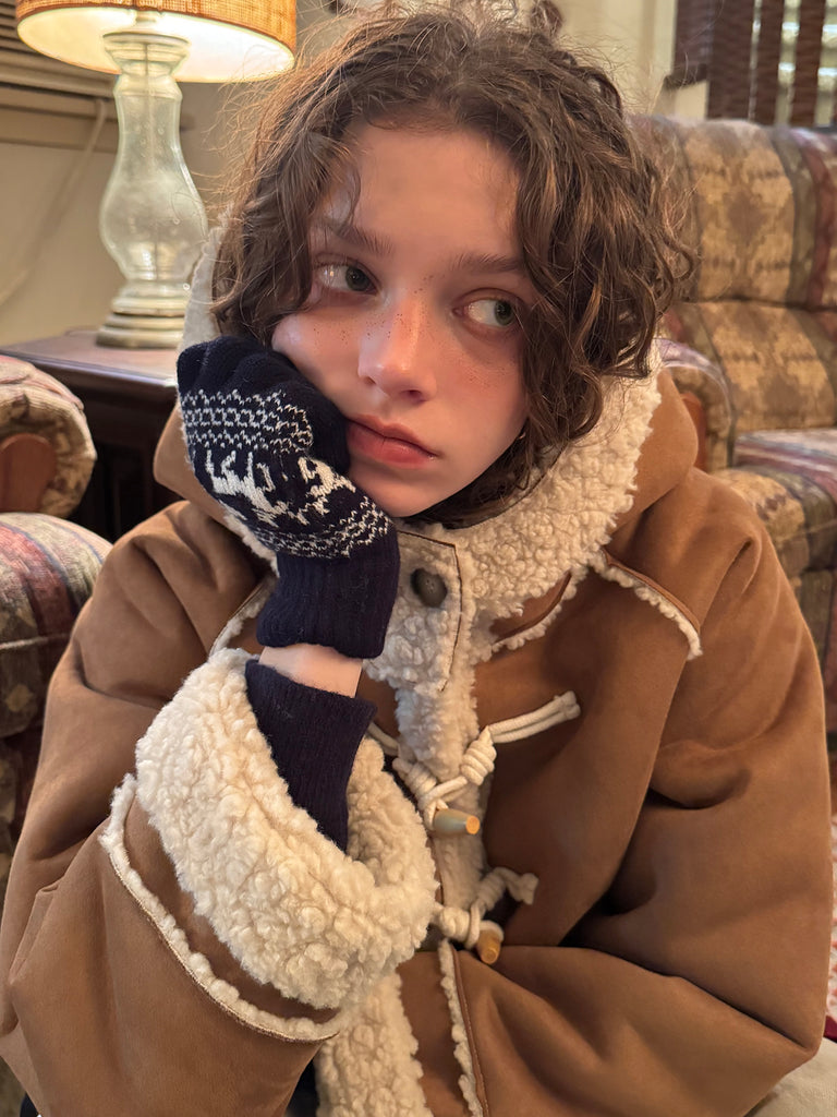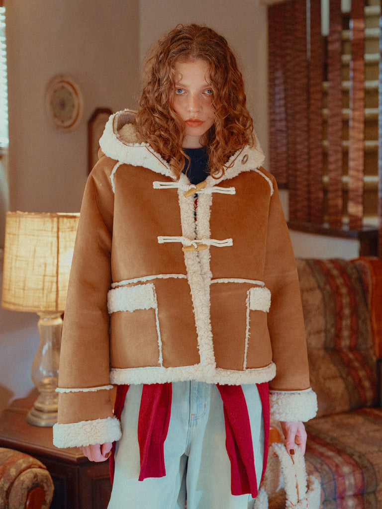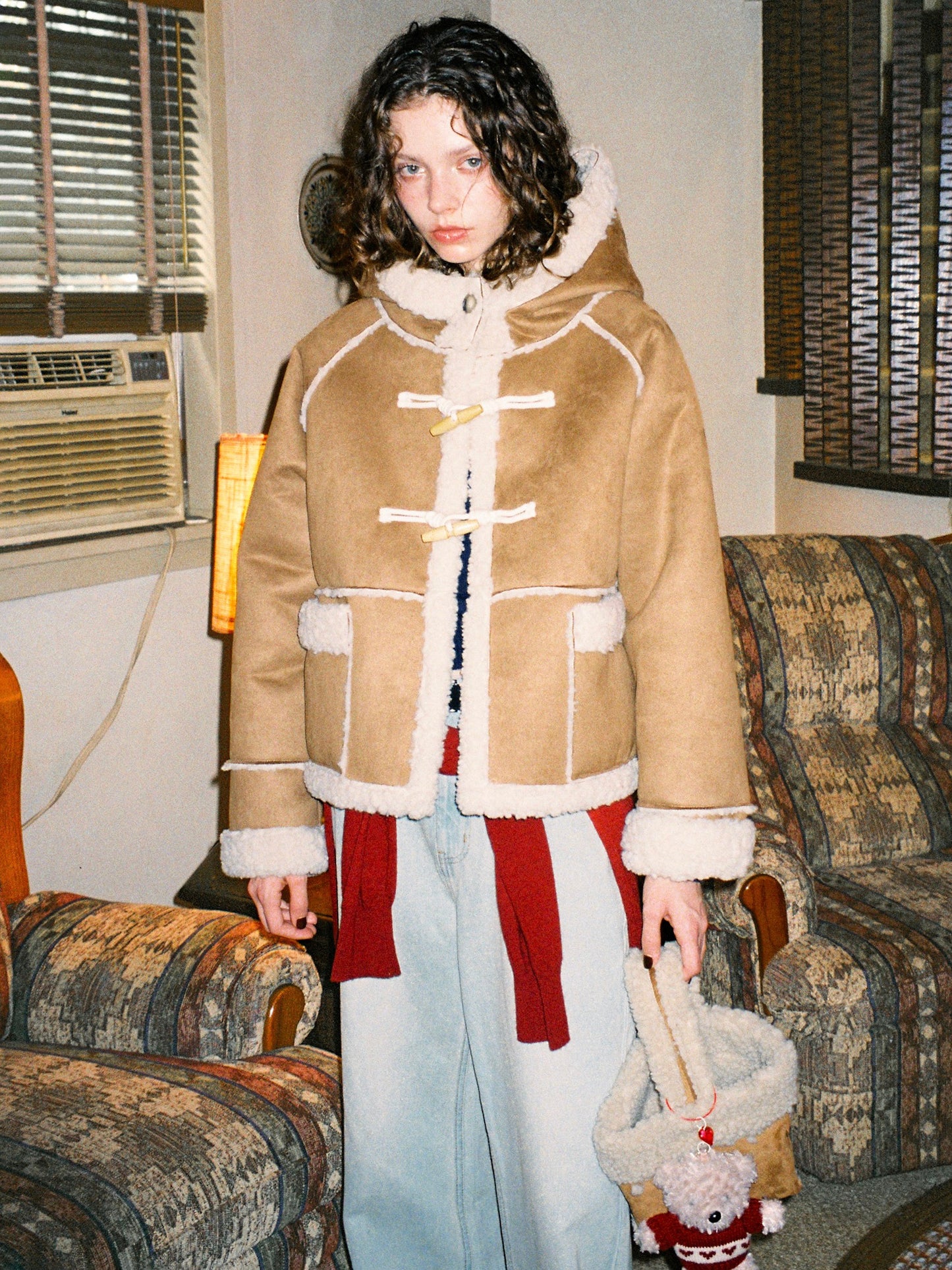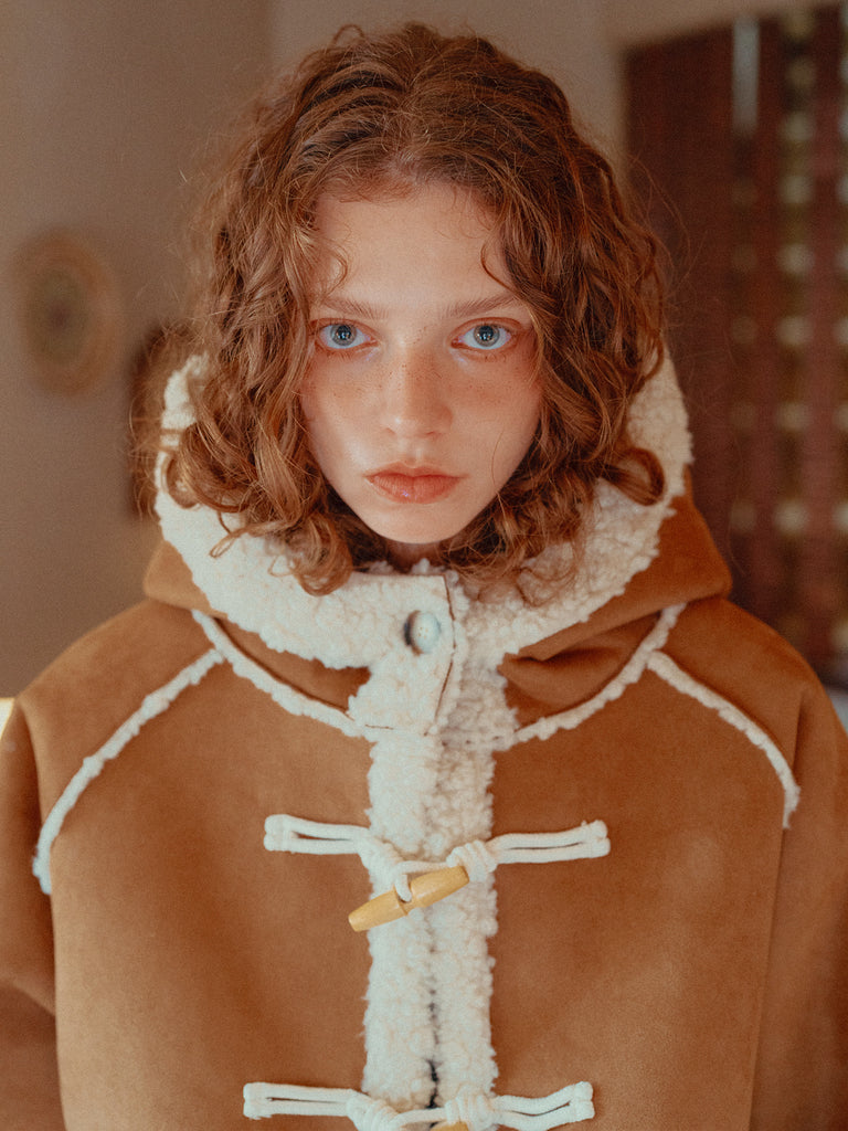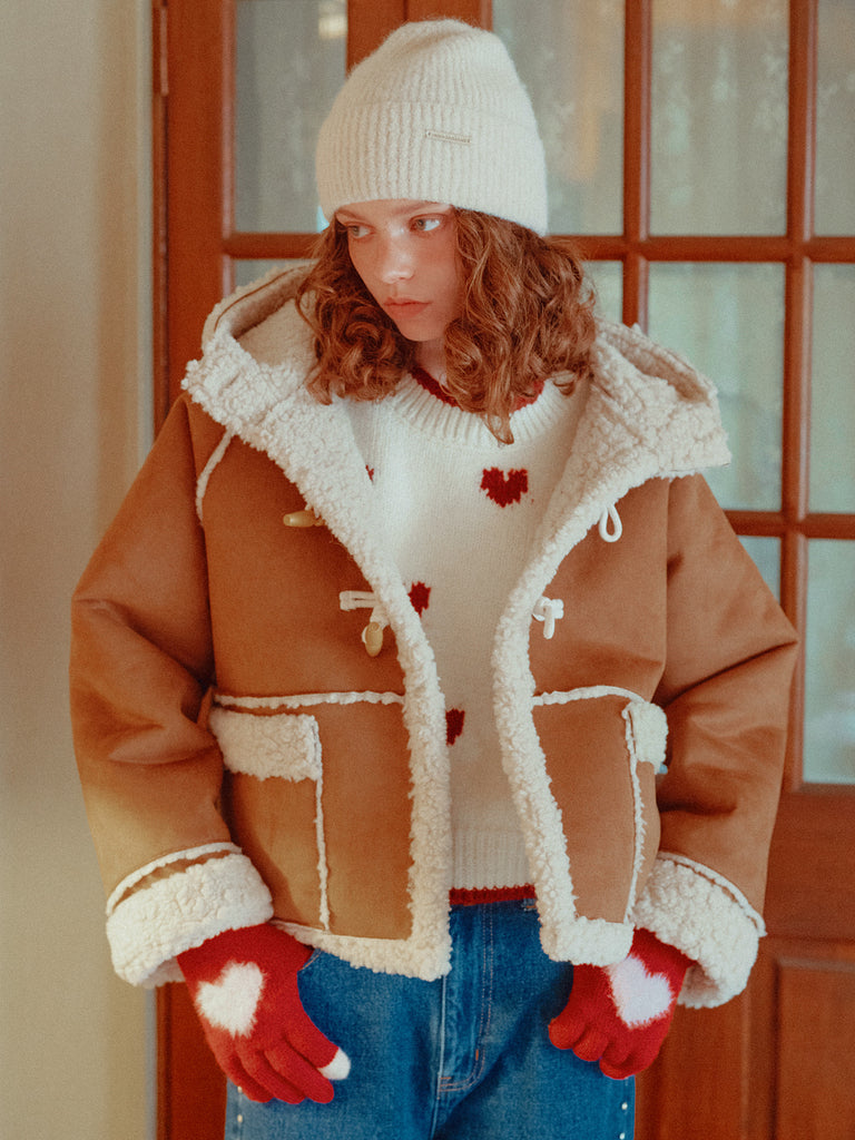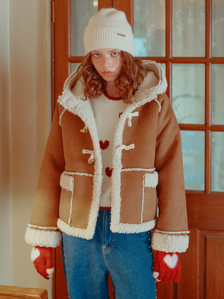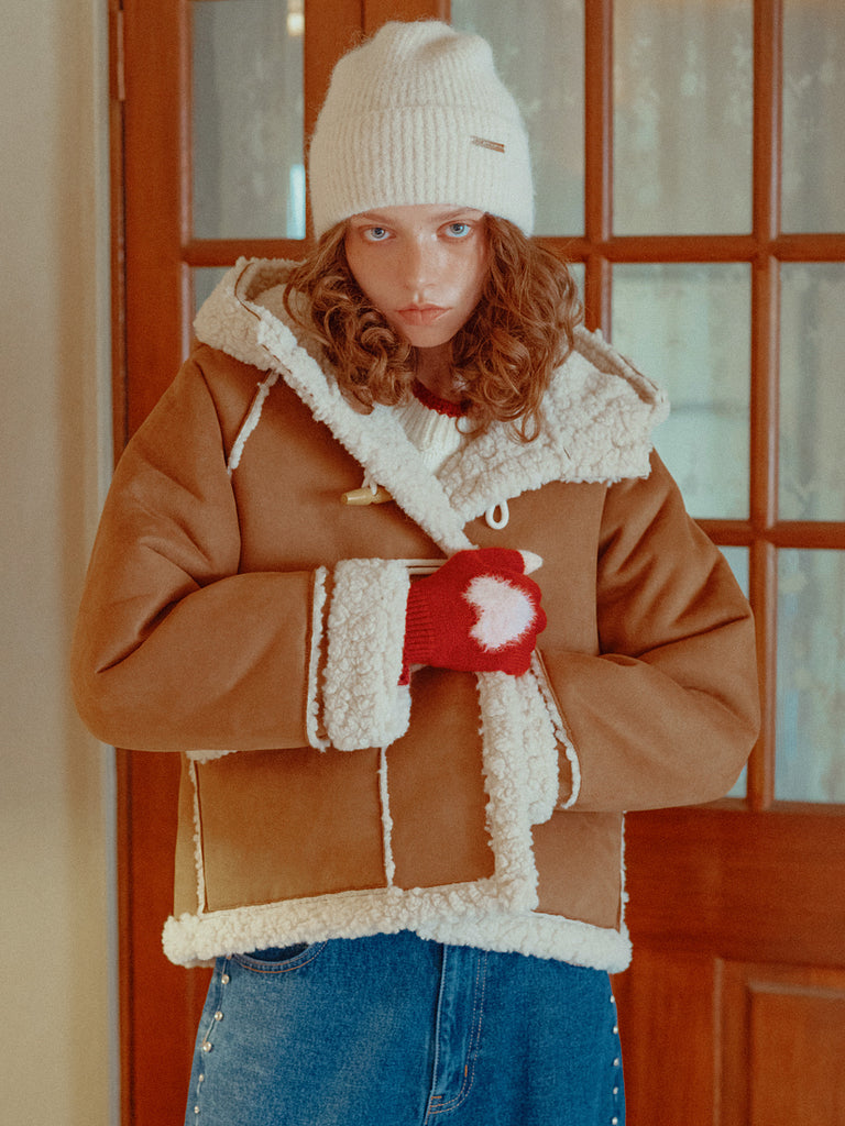 袖など折り返して見せたボアがガーリーさのあるデザイン。