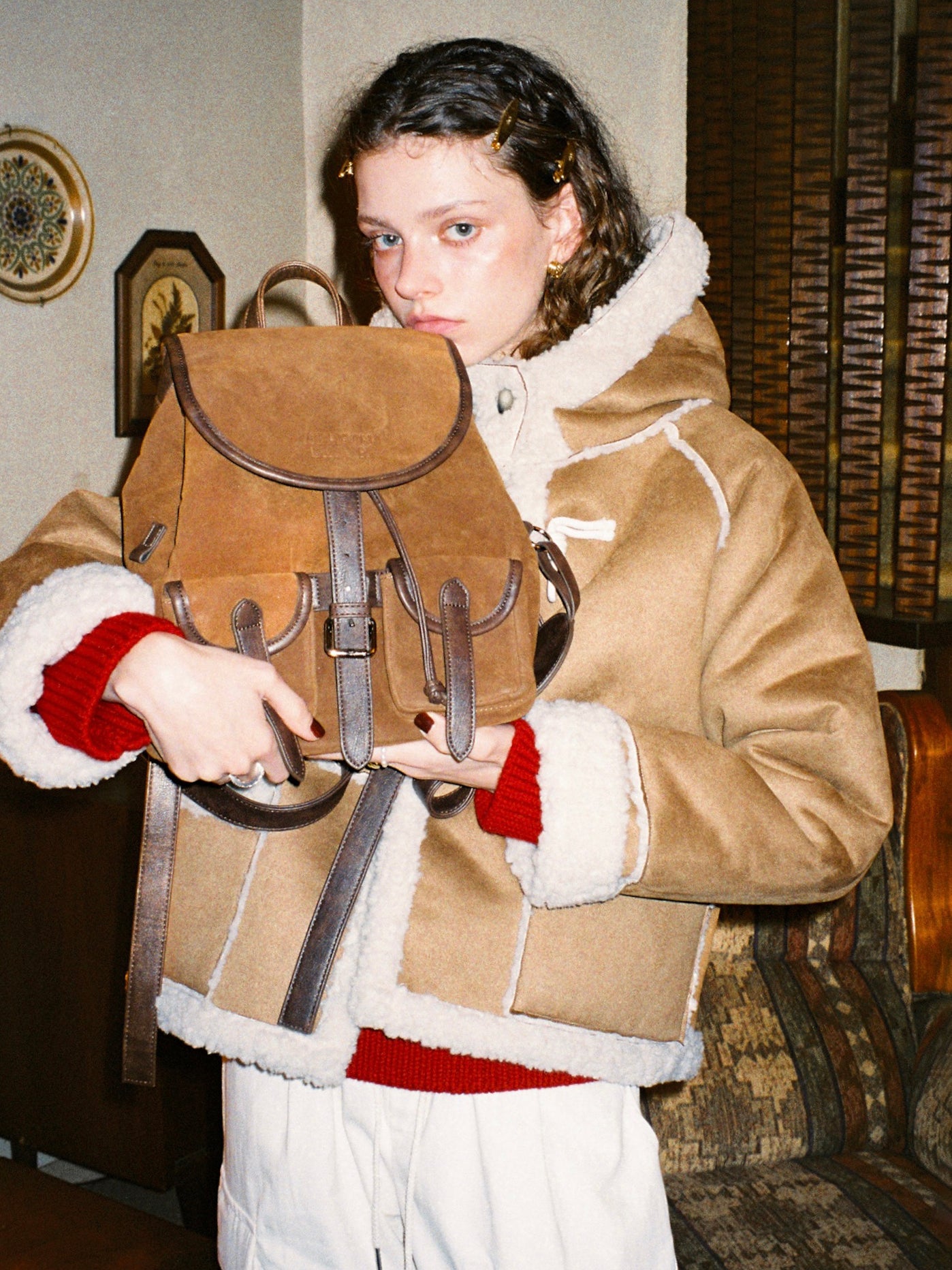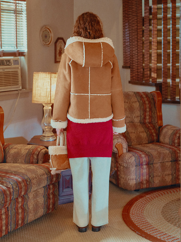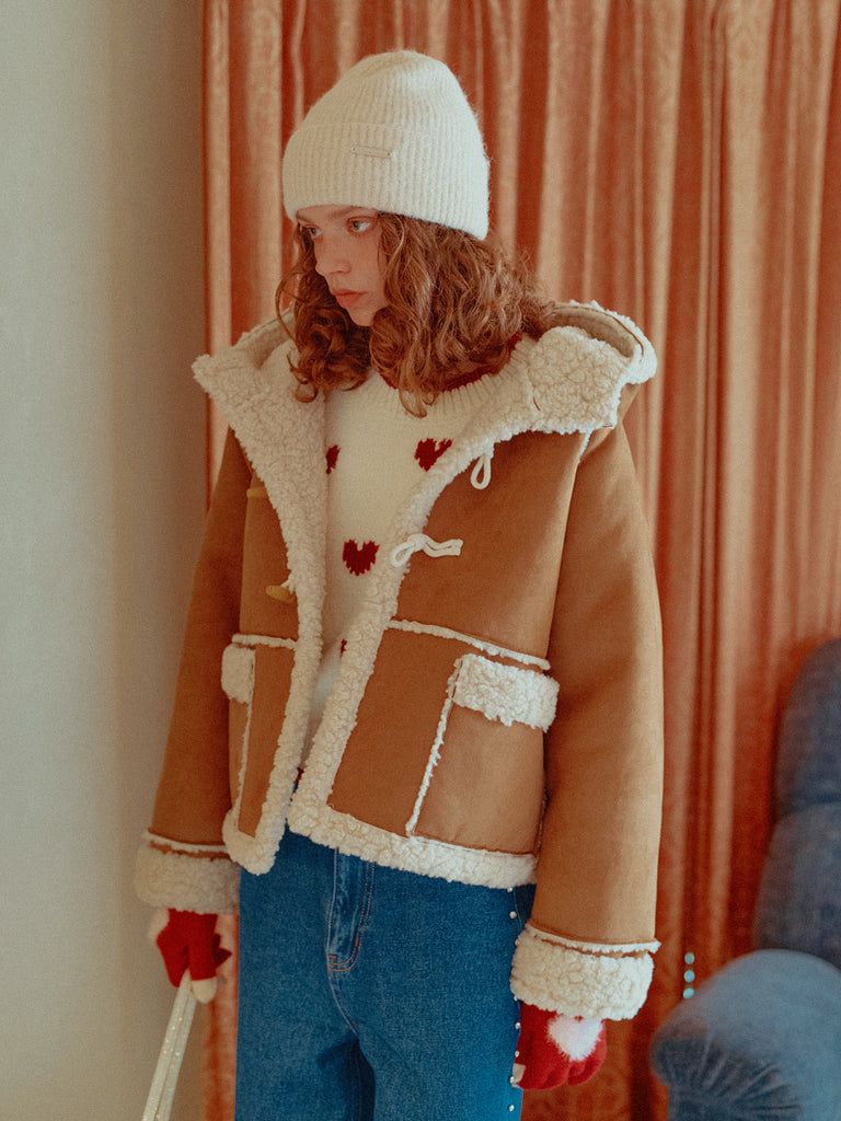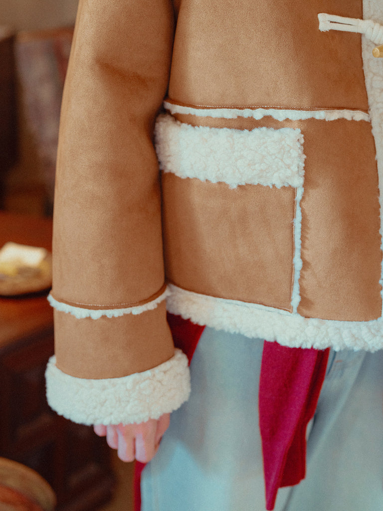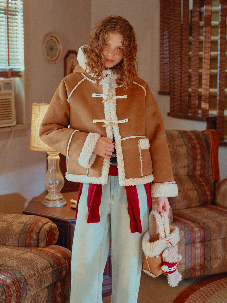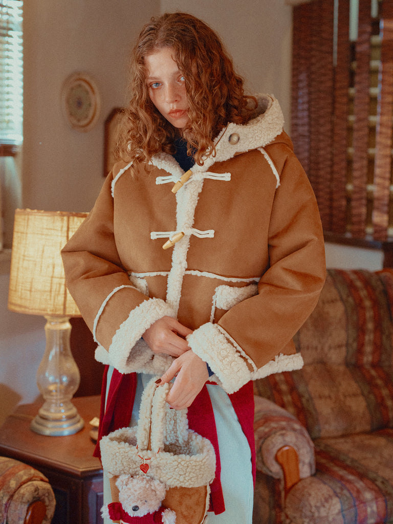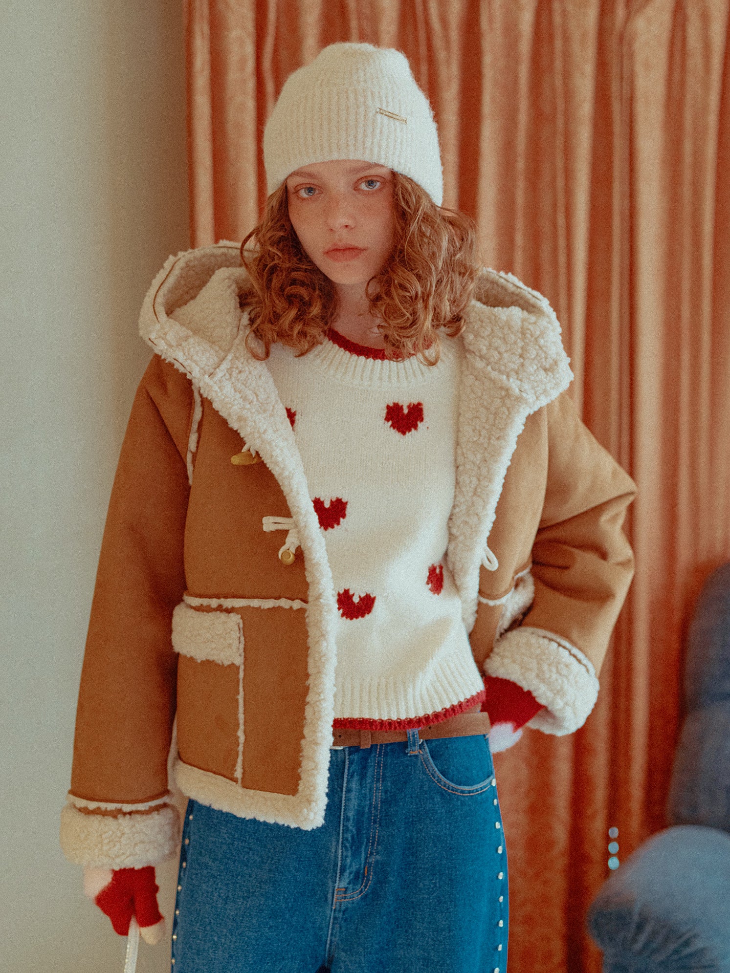 袖など折り返して見せたボアがガーリーさのあるデザイン。