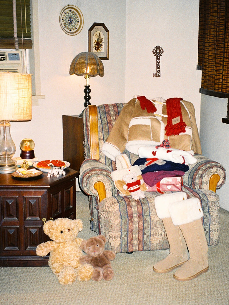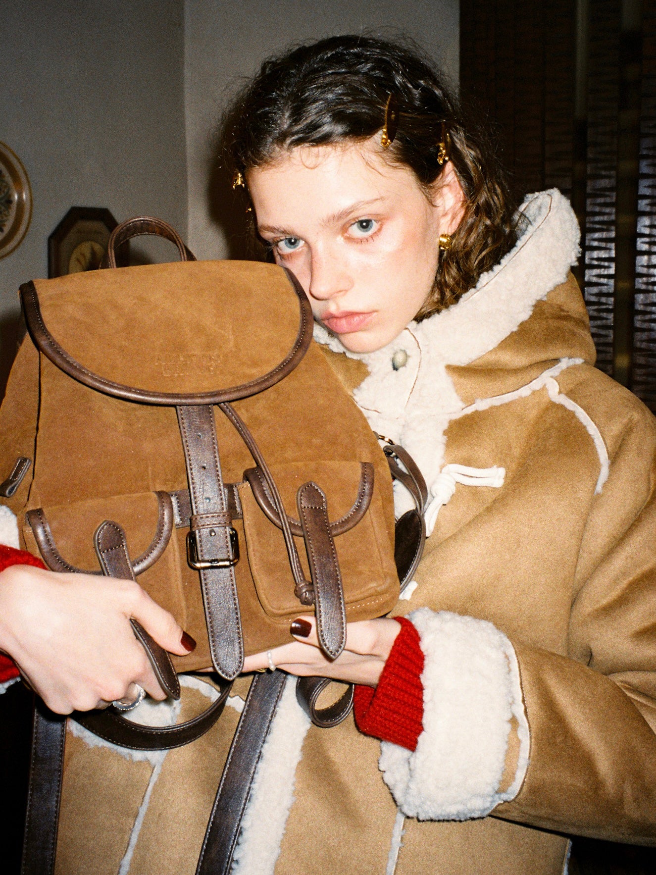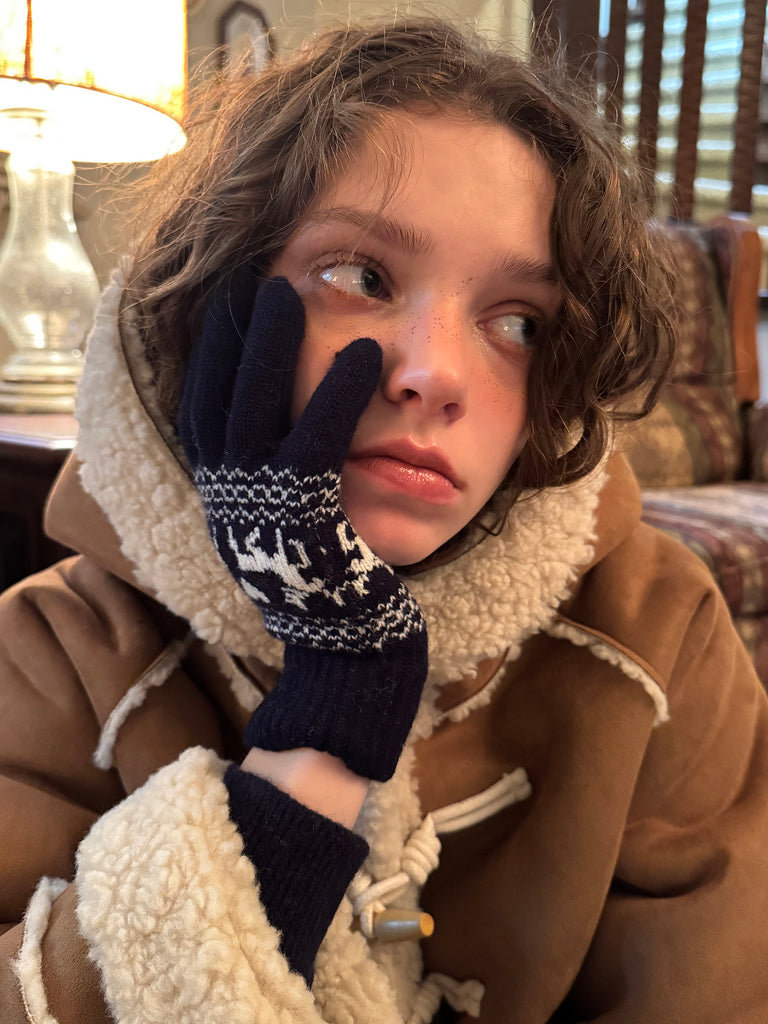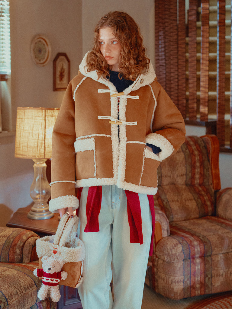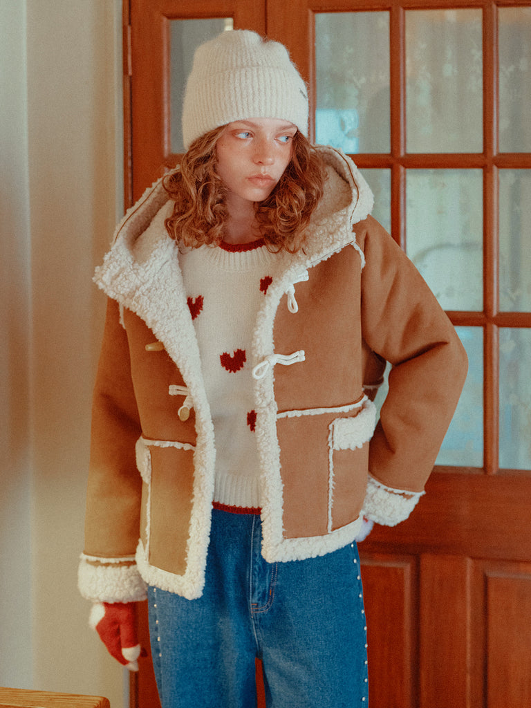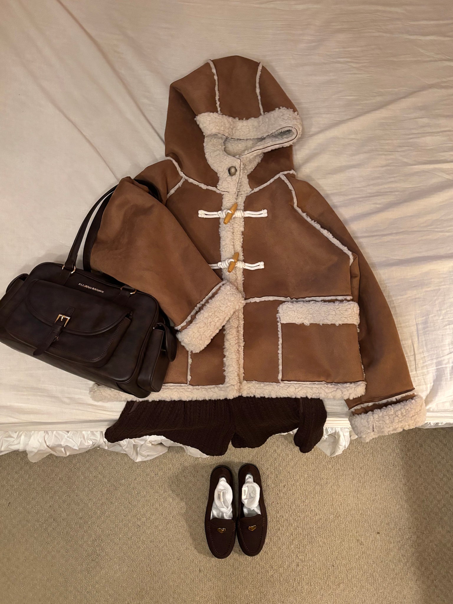 袖など折り返して見せたボアがガーリーさのあるデザイン。