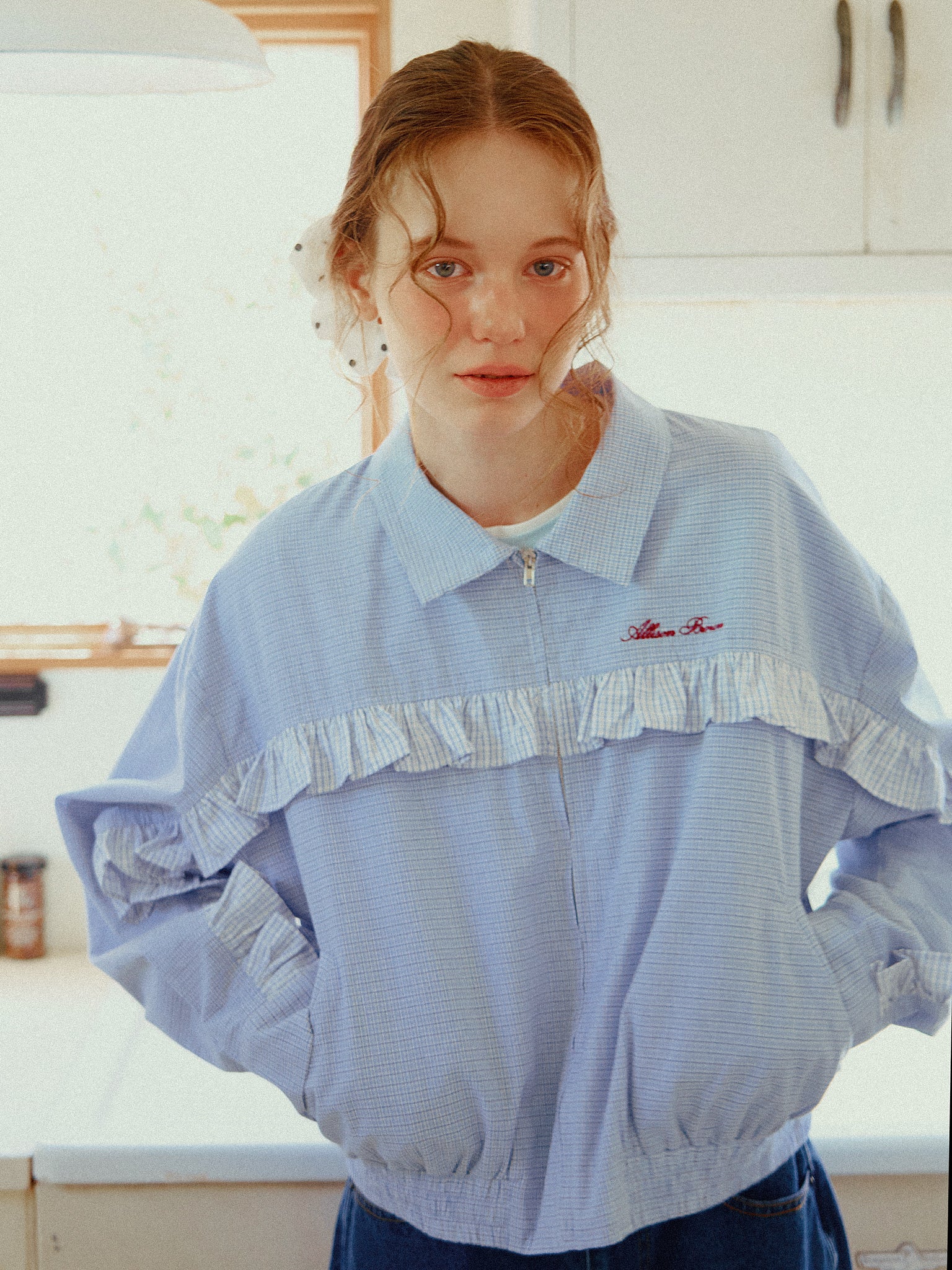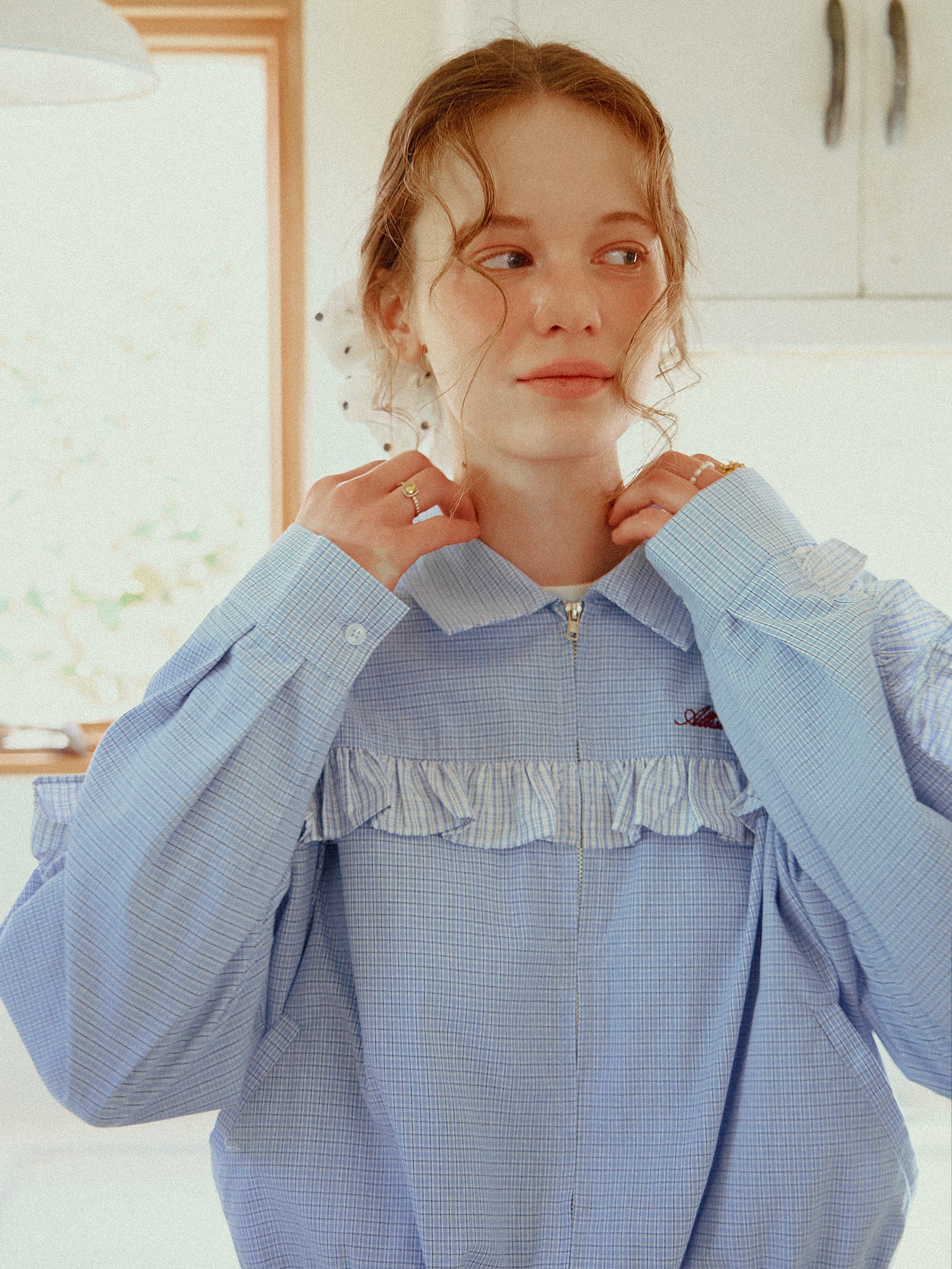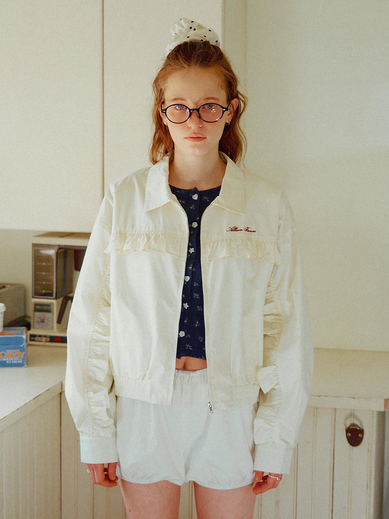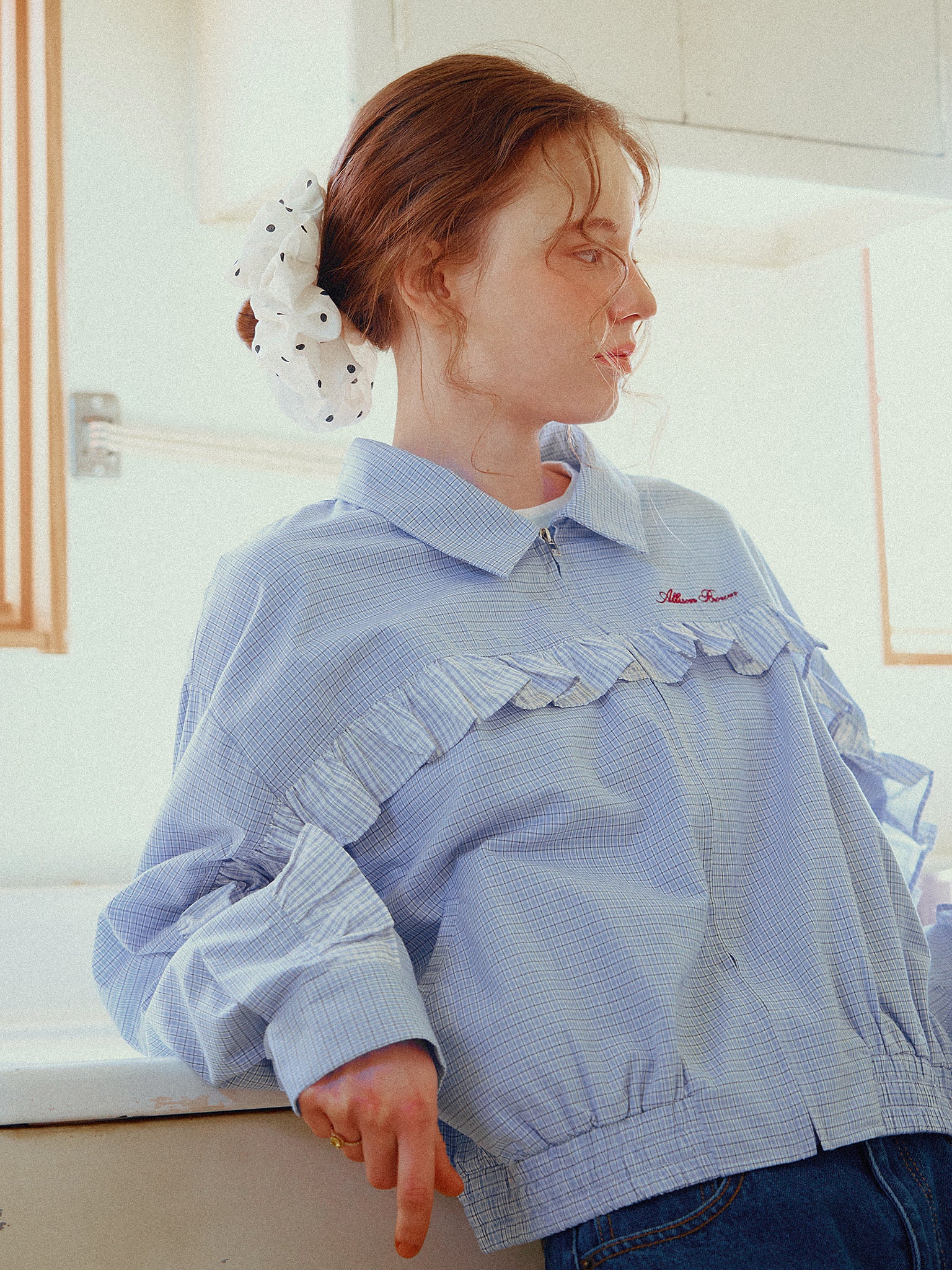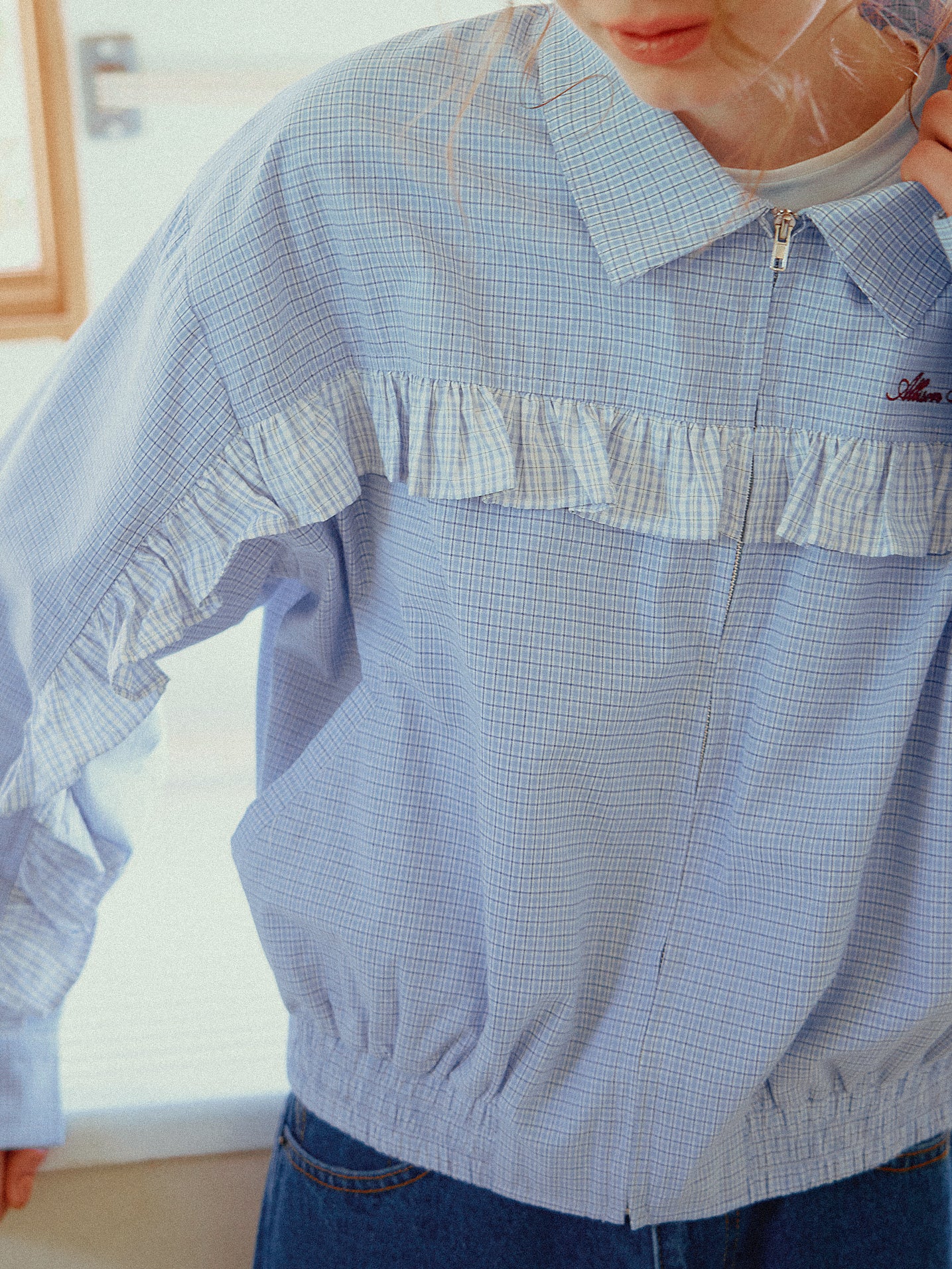 フリルデザインがポイントのシャツブルゾン。