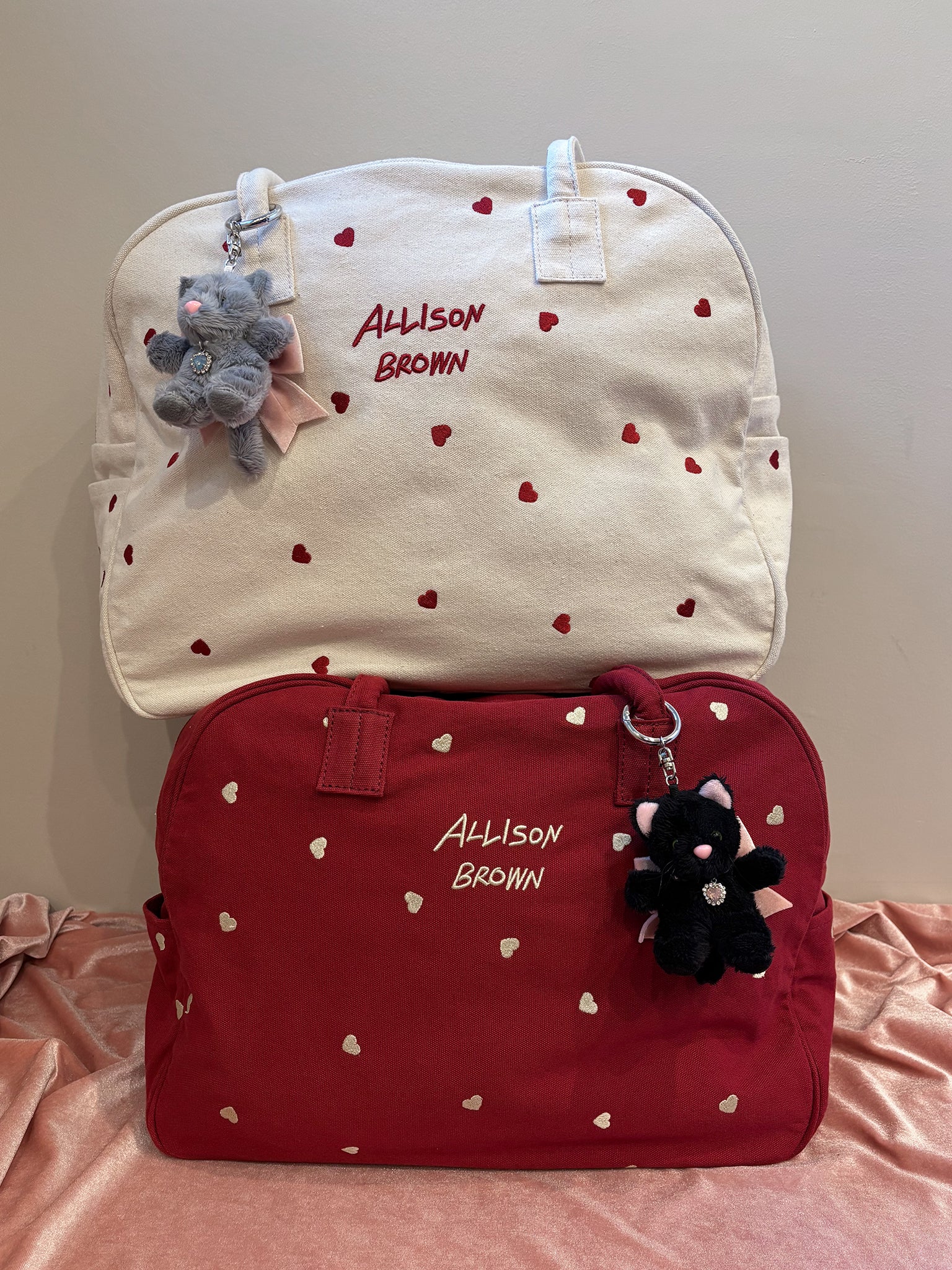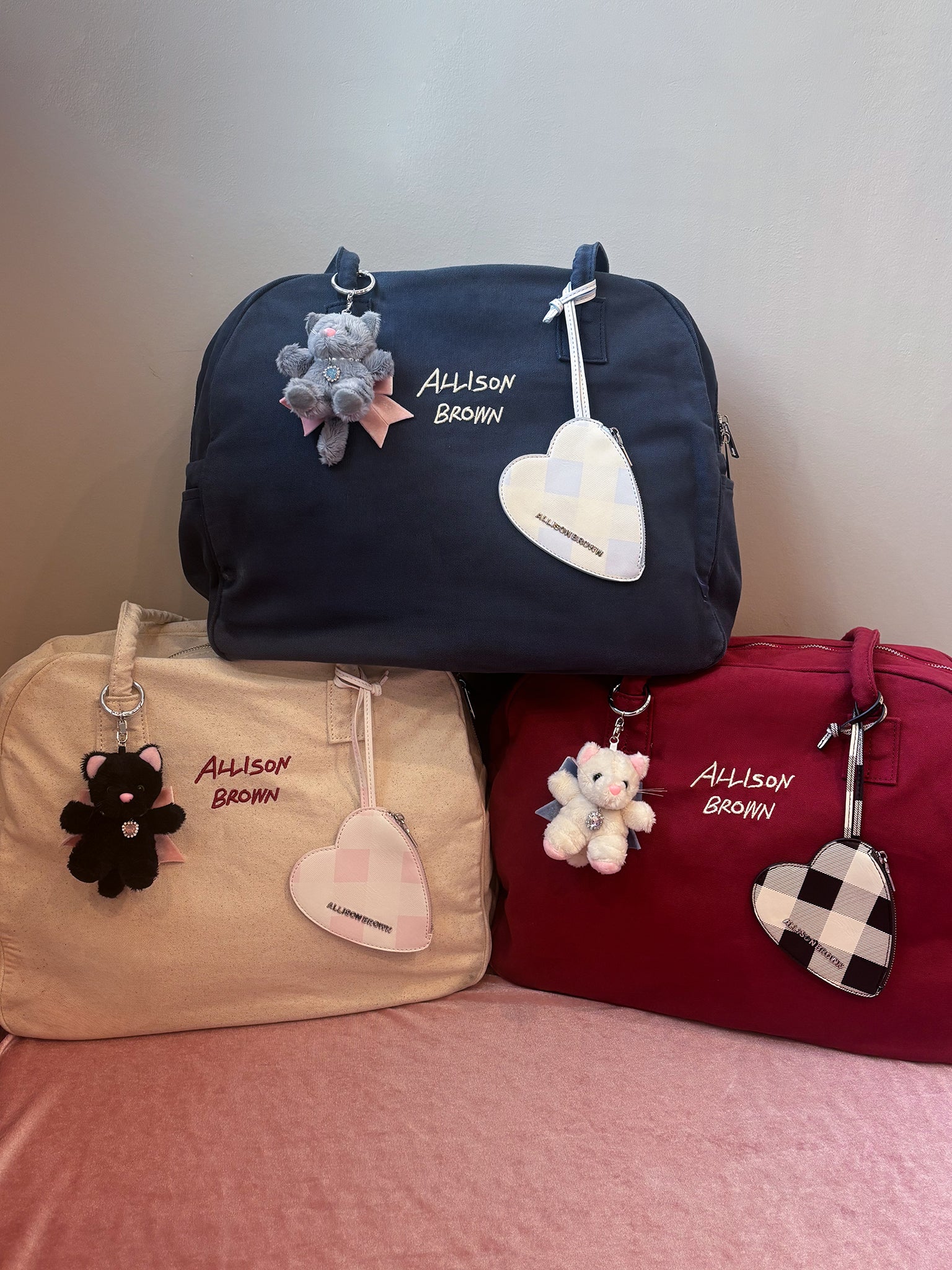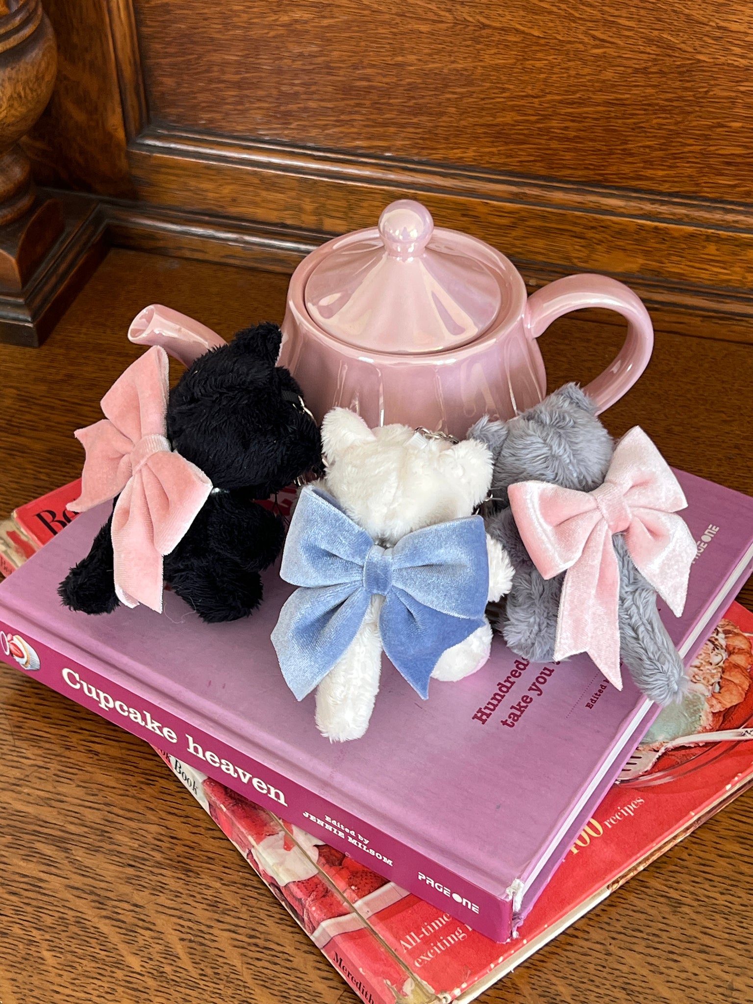 Gray、Blackにはベビーピンクのリボン、