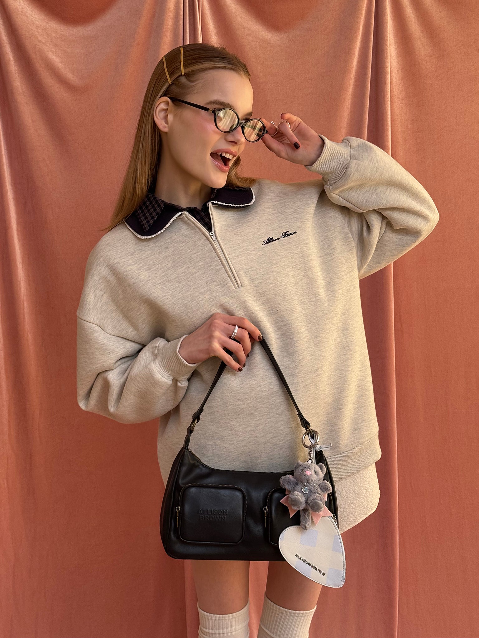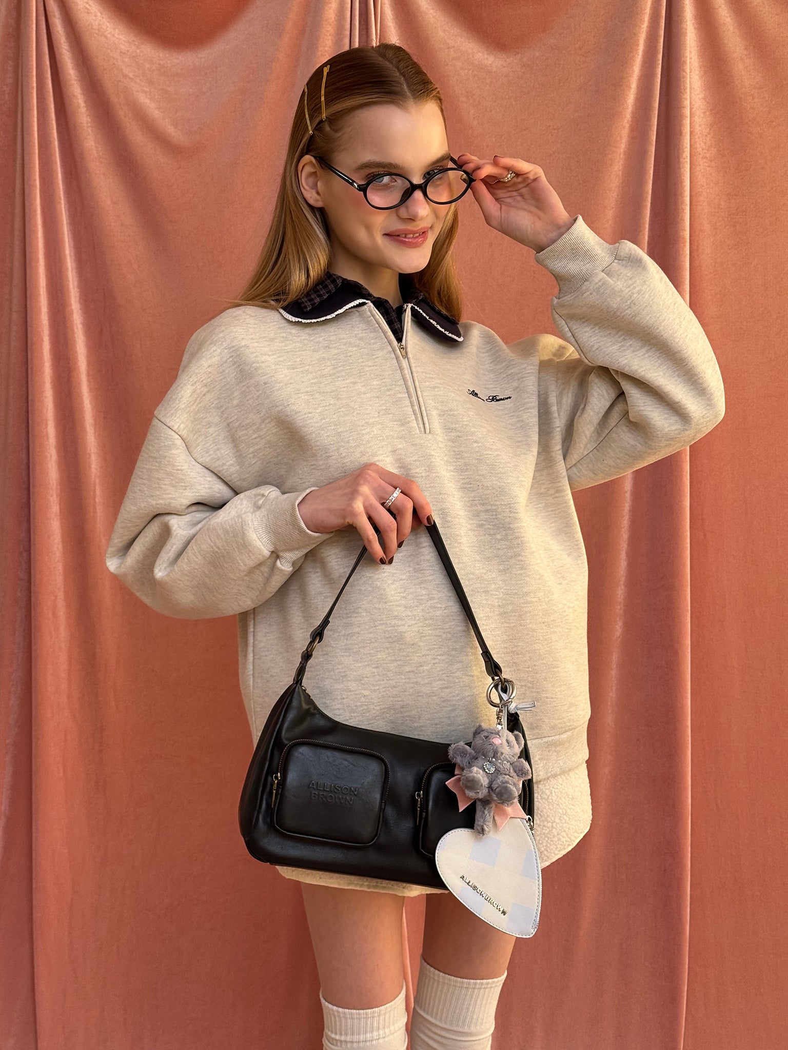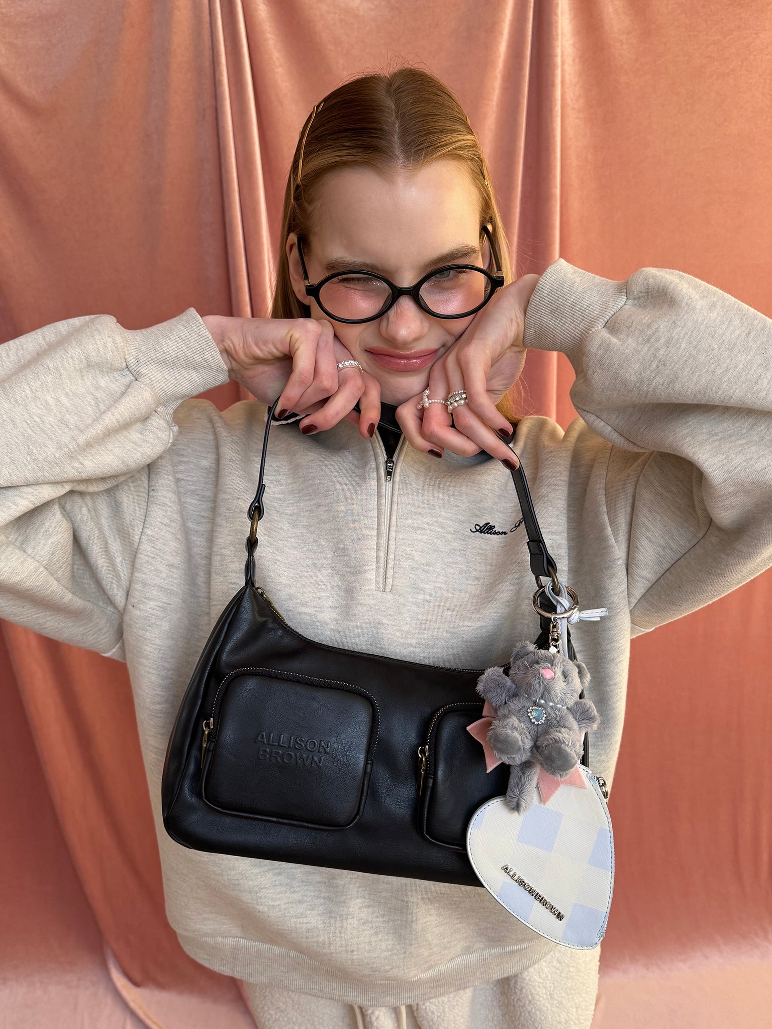 Gray、Blackにはベビーピンクのリボン、