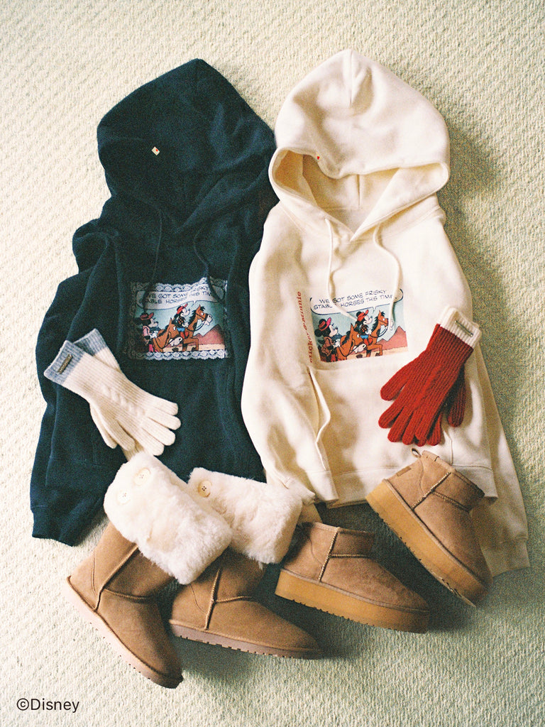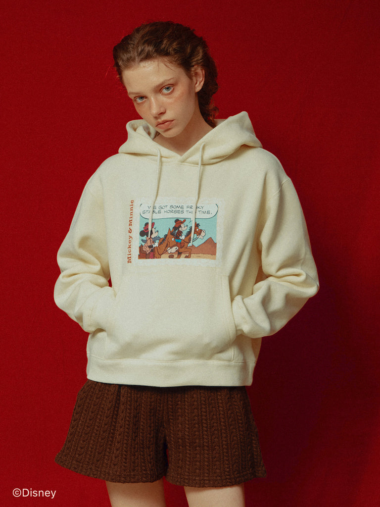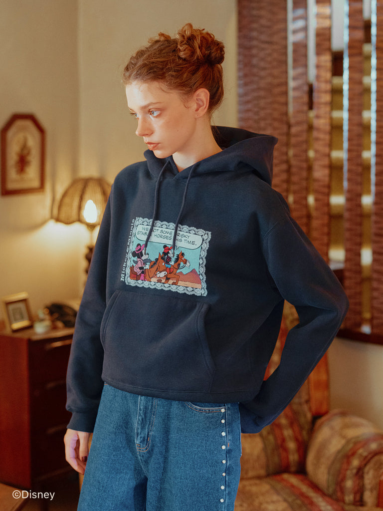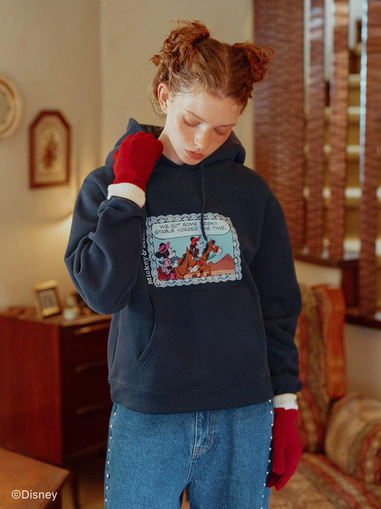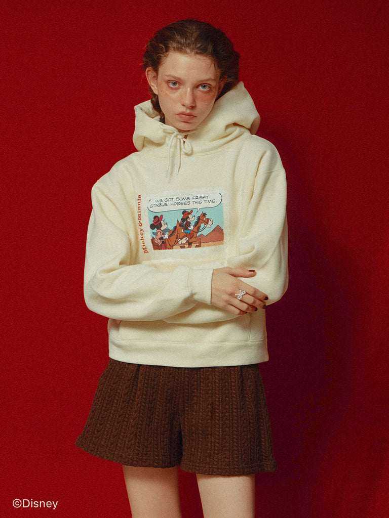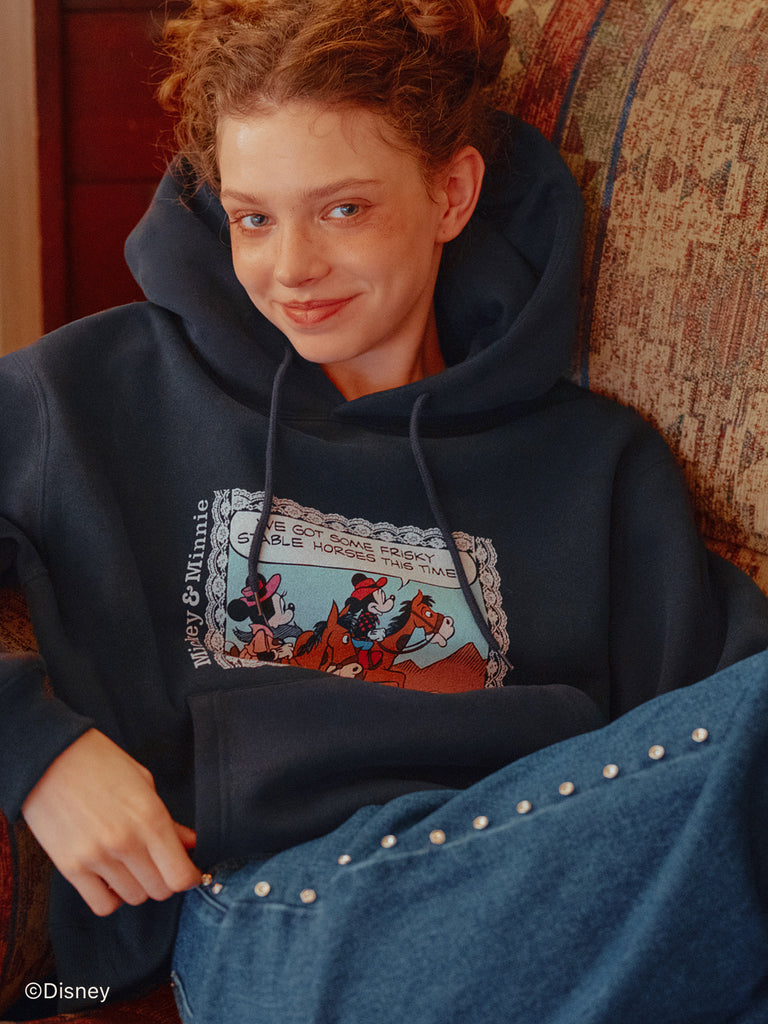 「ミニーマウス」をプリントしたフーディー。