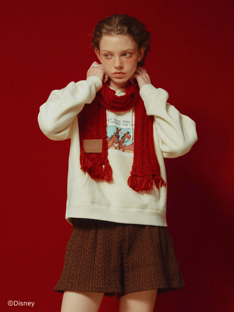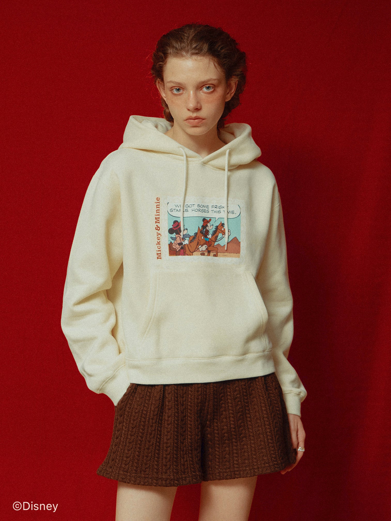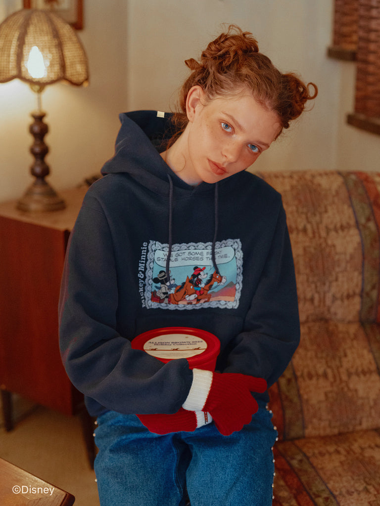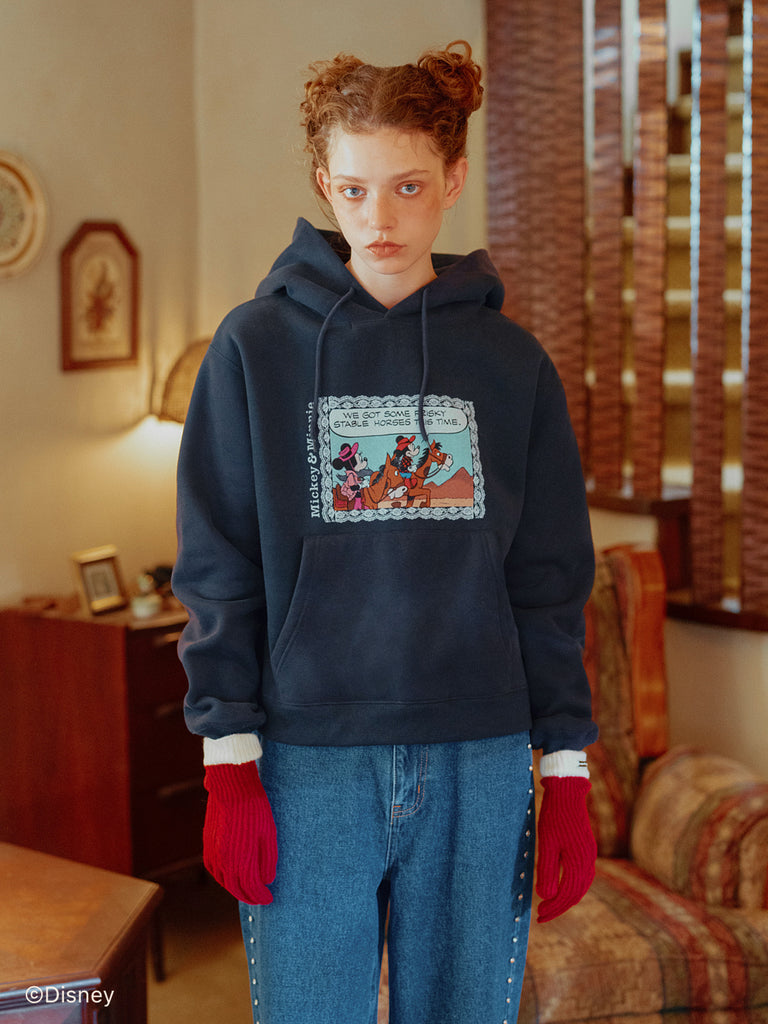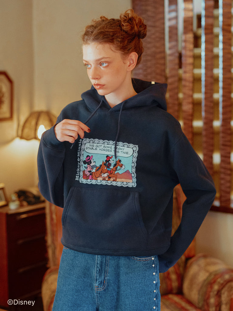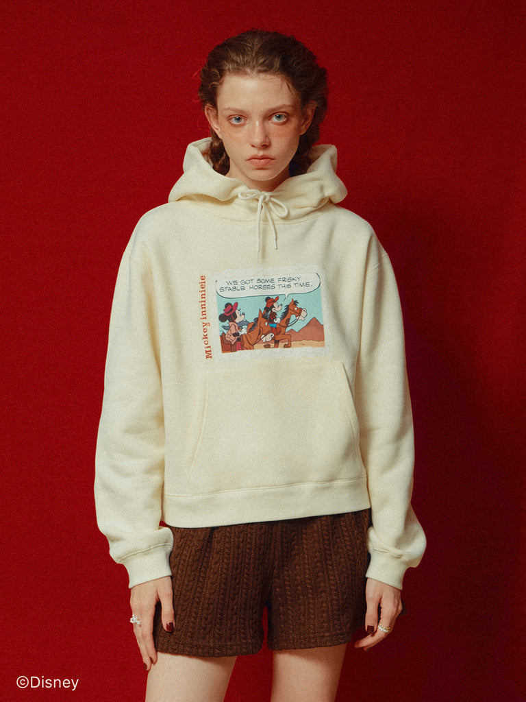 「ミニーマウス」をプリントしたフーディー。