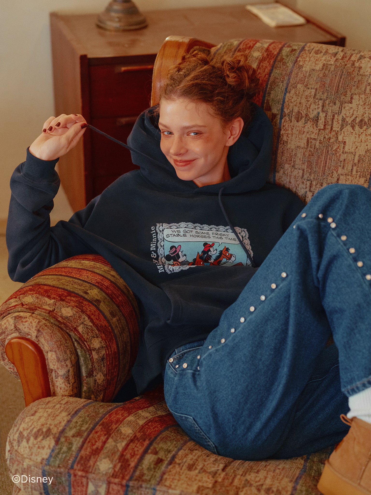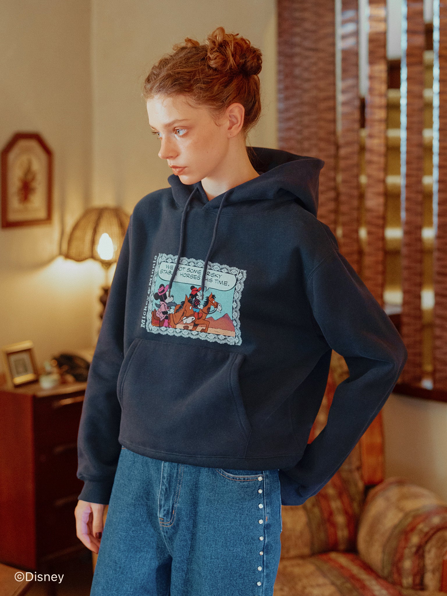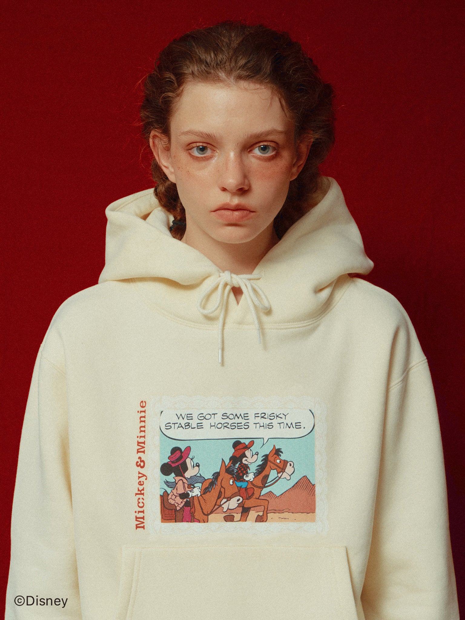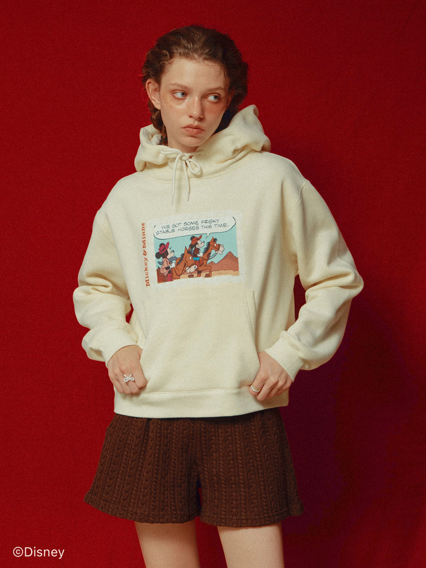 「ミニーマウス」をプリントしたフーディー。