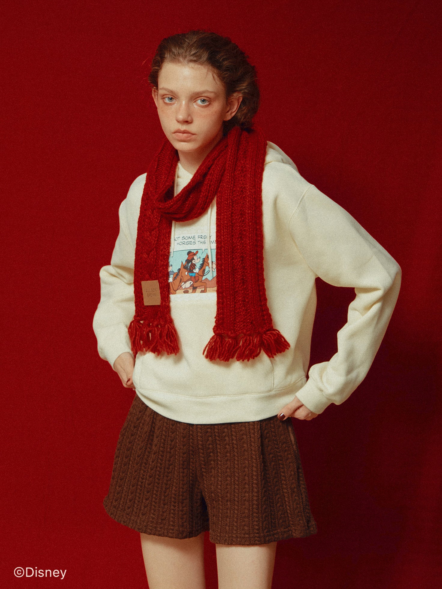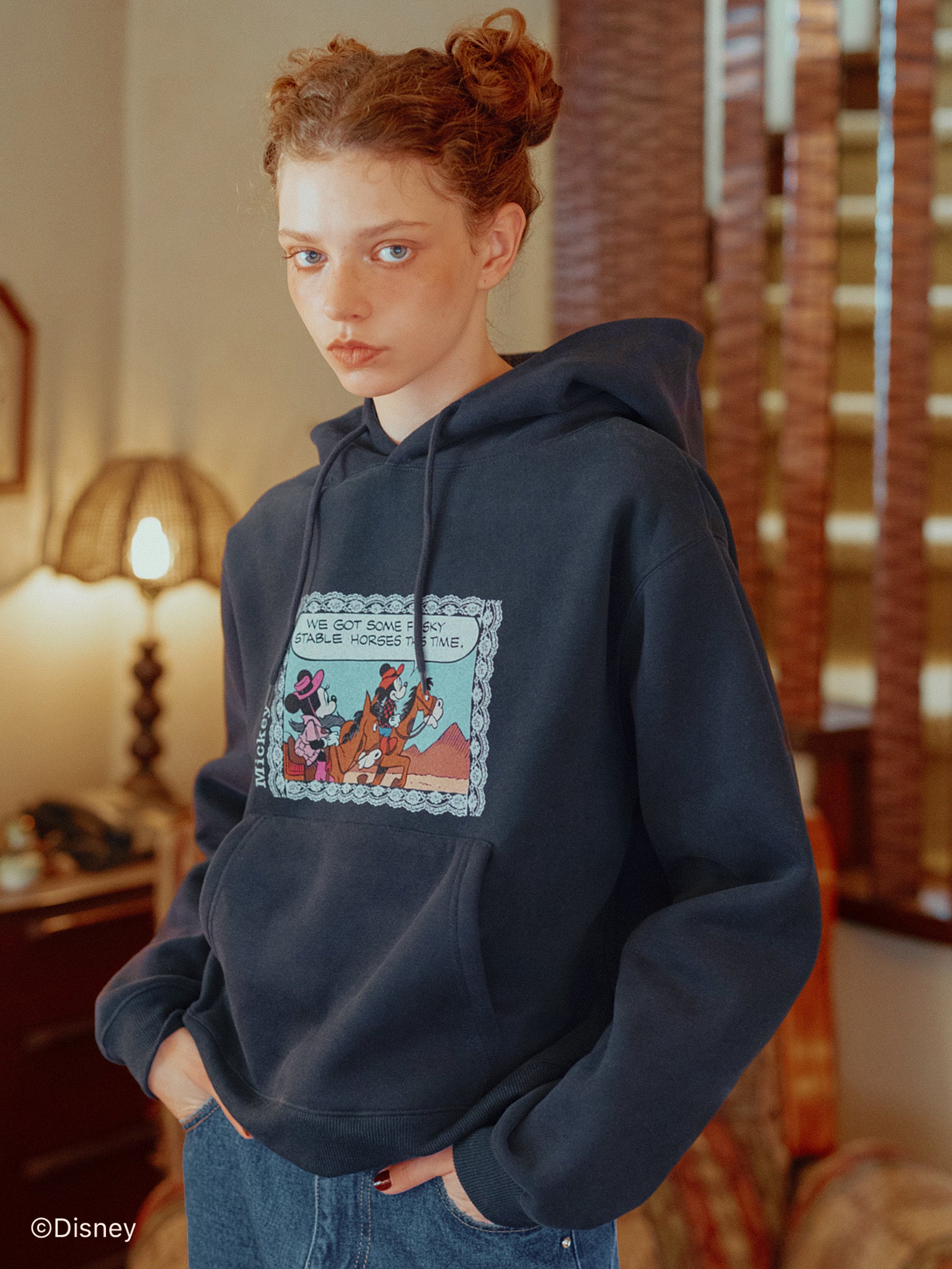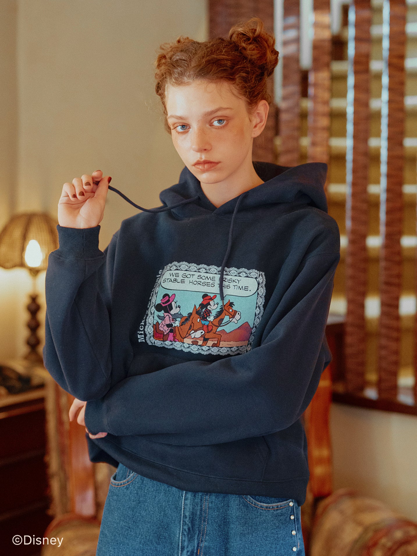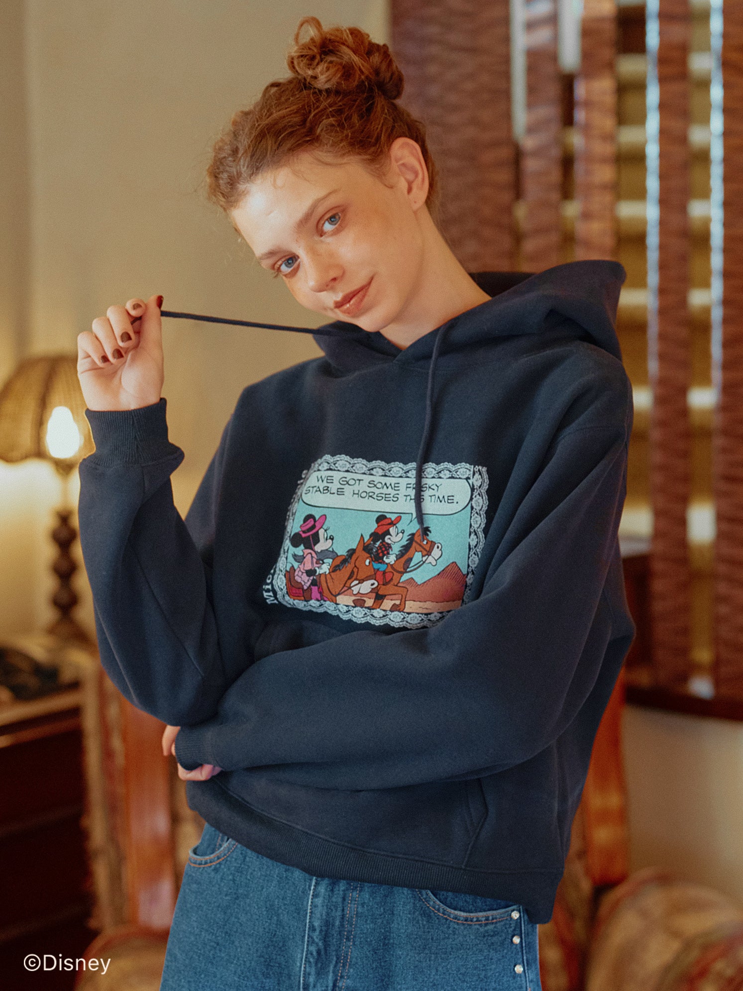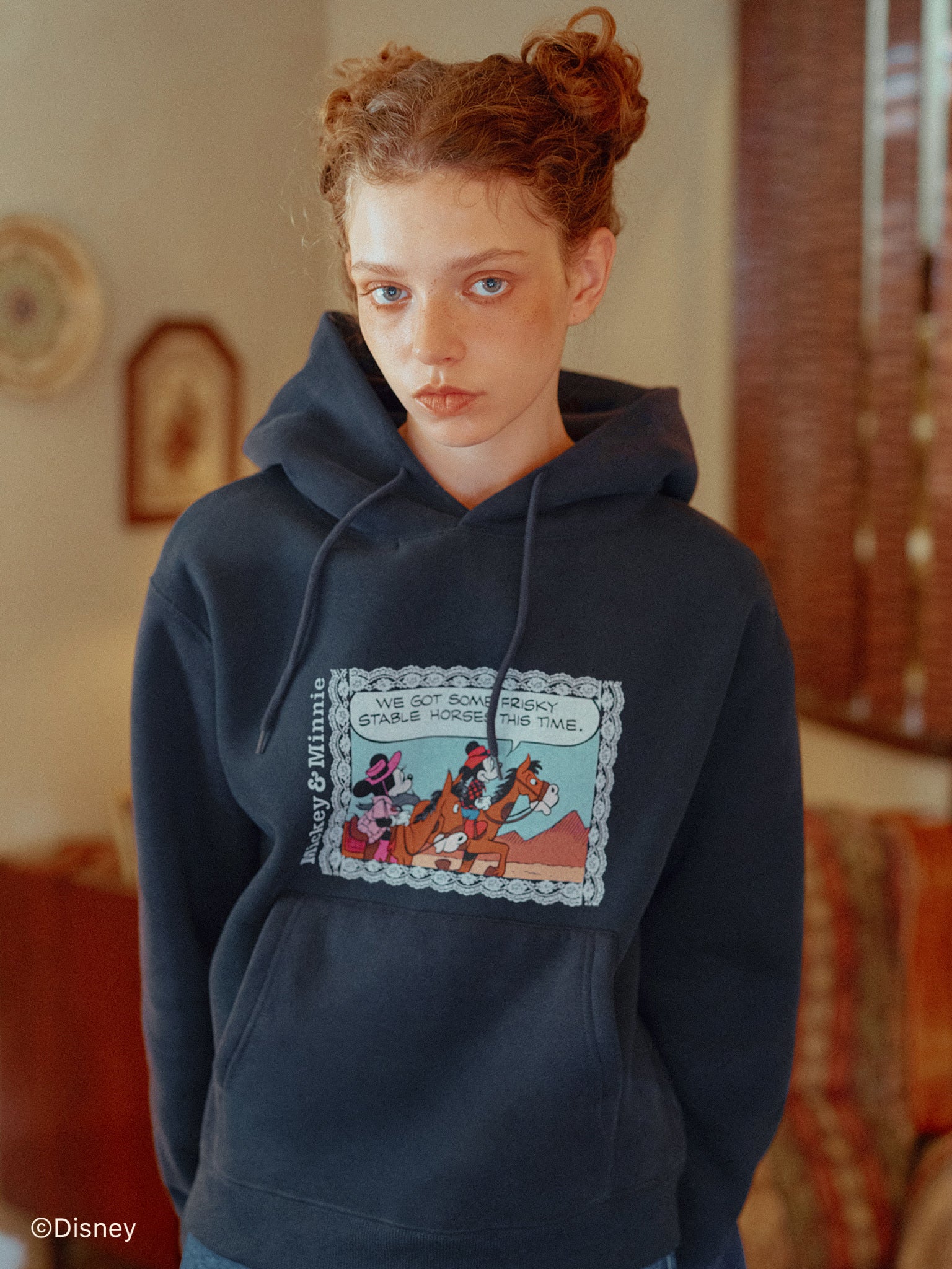 「ミニーマウス」をプリントしたフーディー。