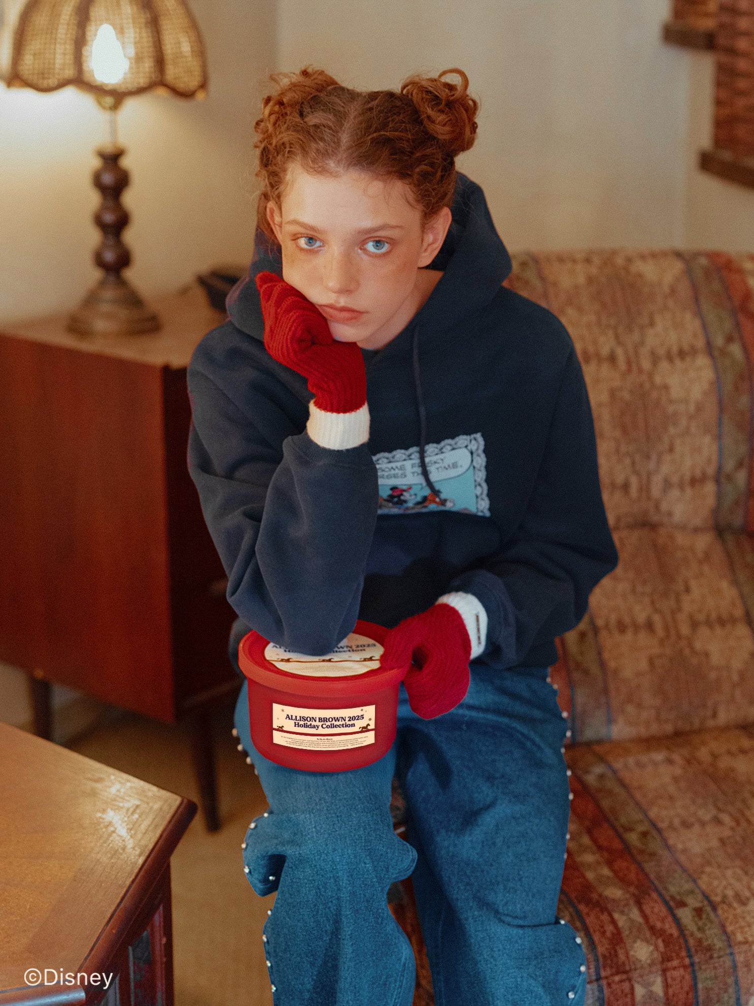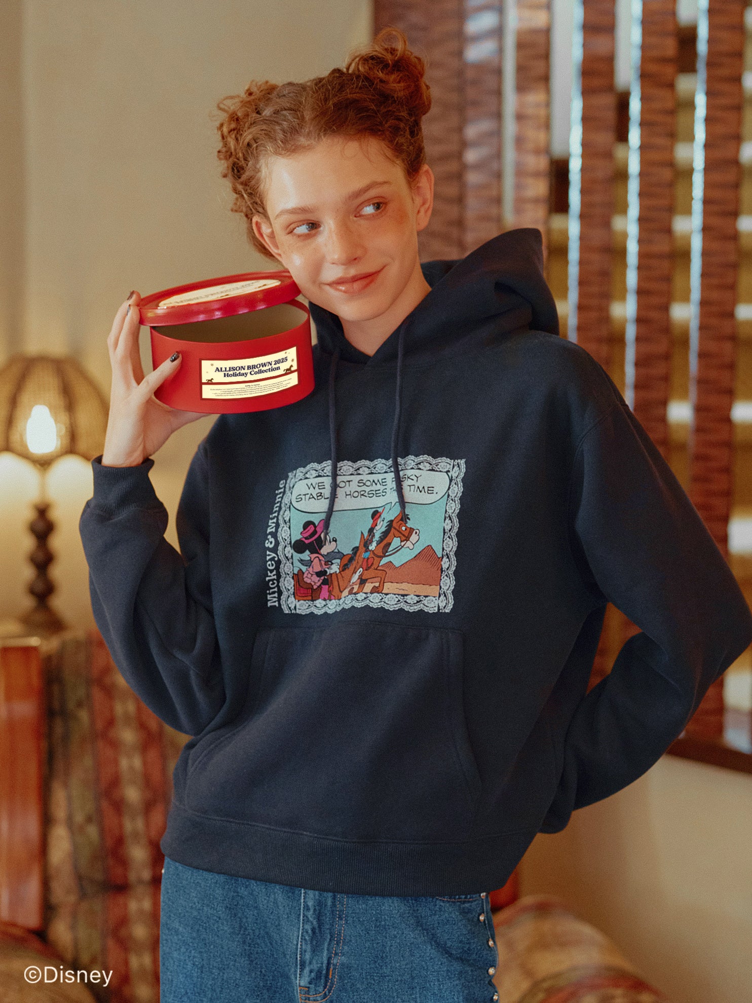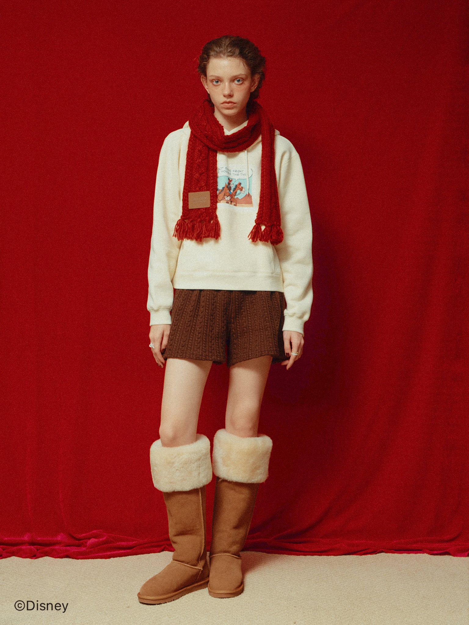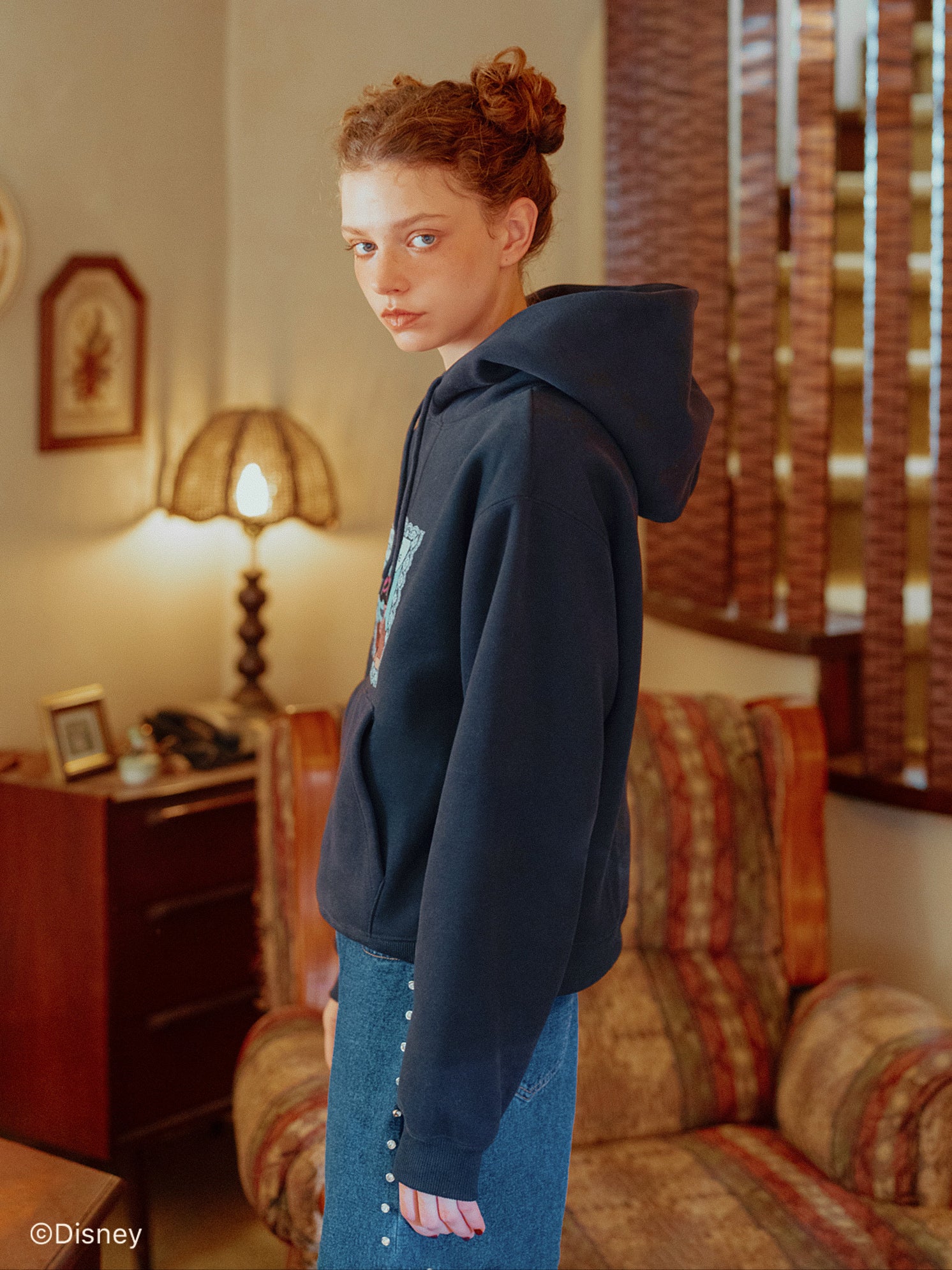 「ミニーマウス」をプリントしたフーディー。