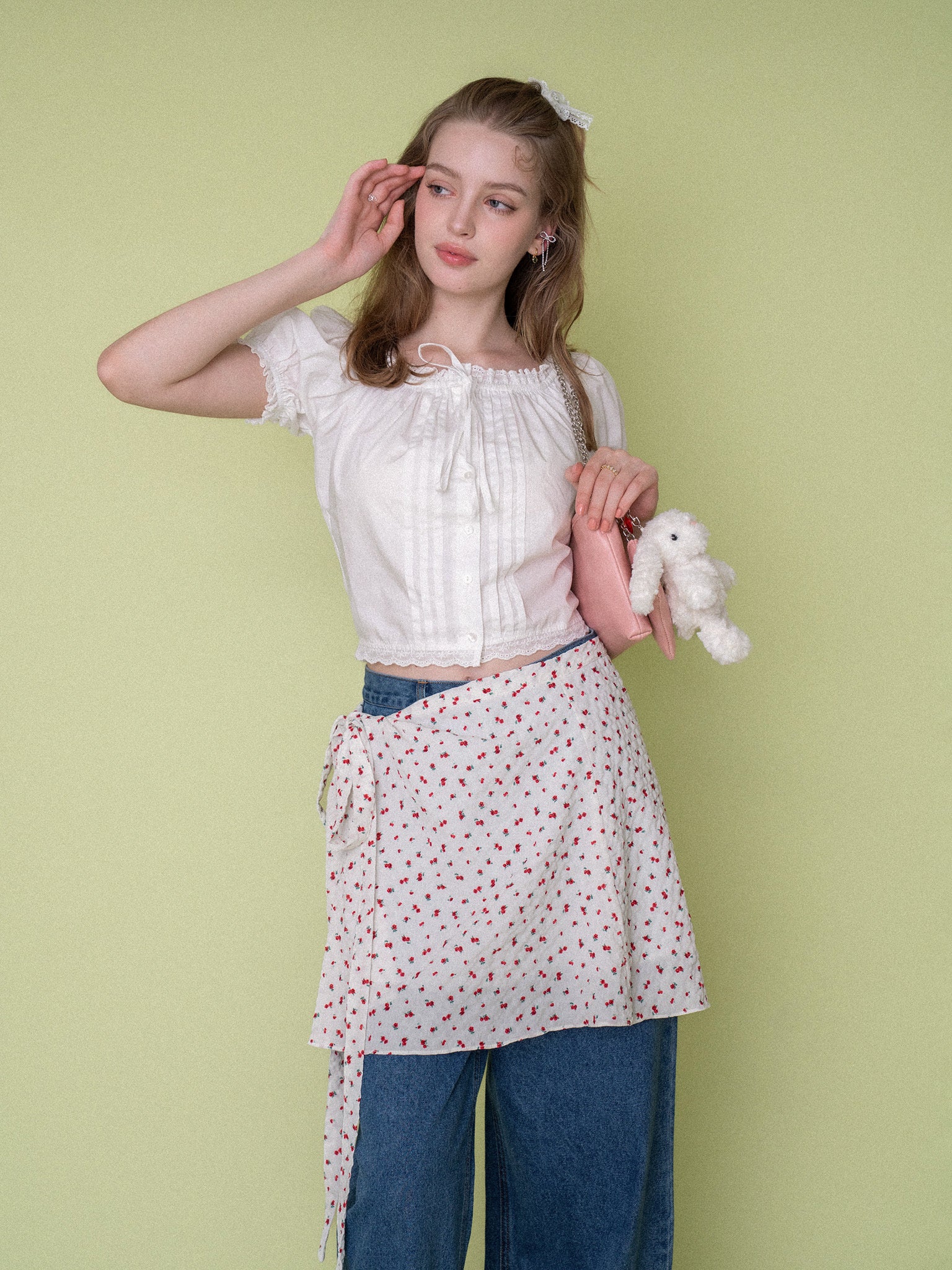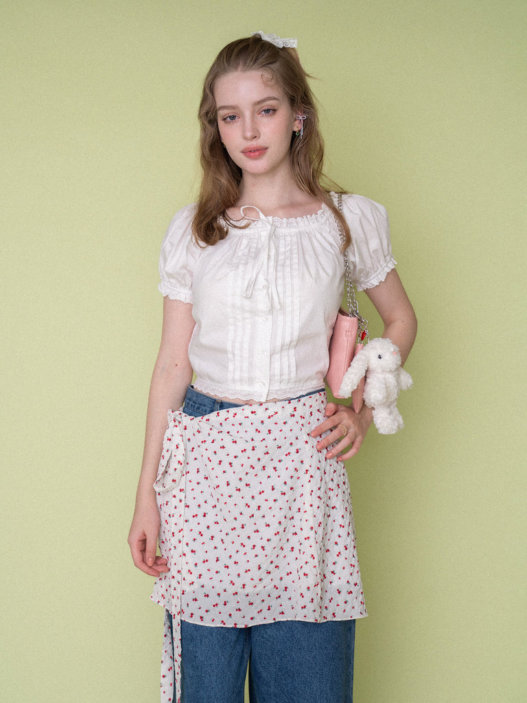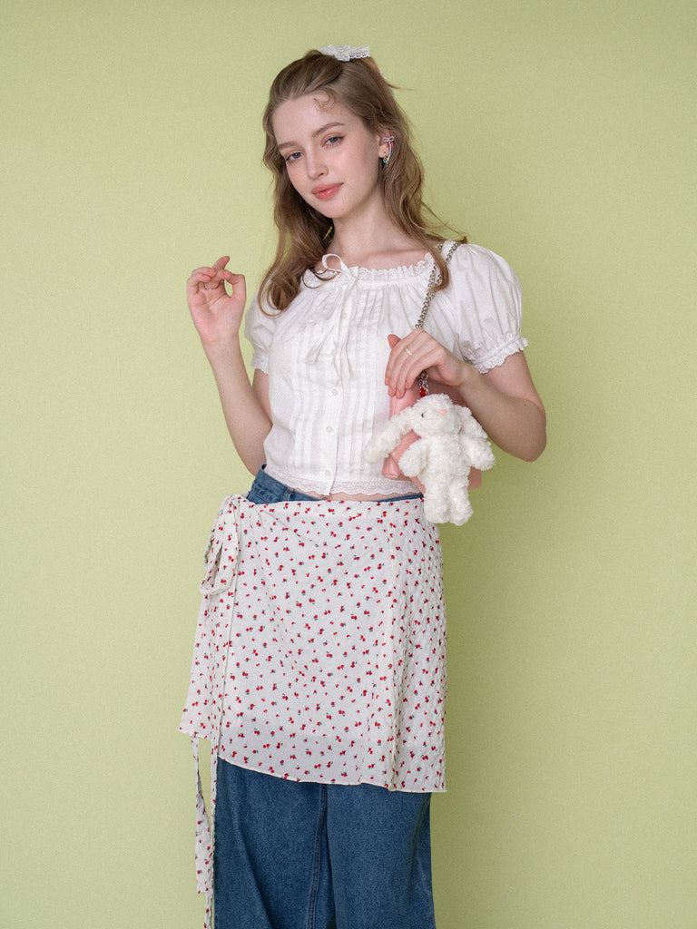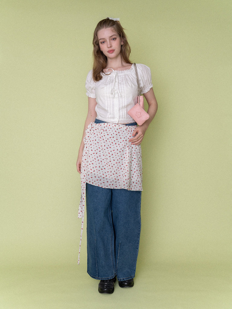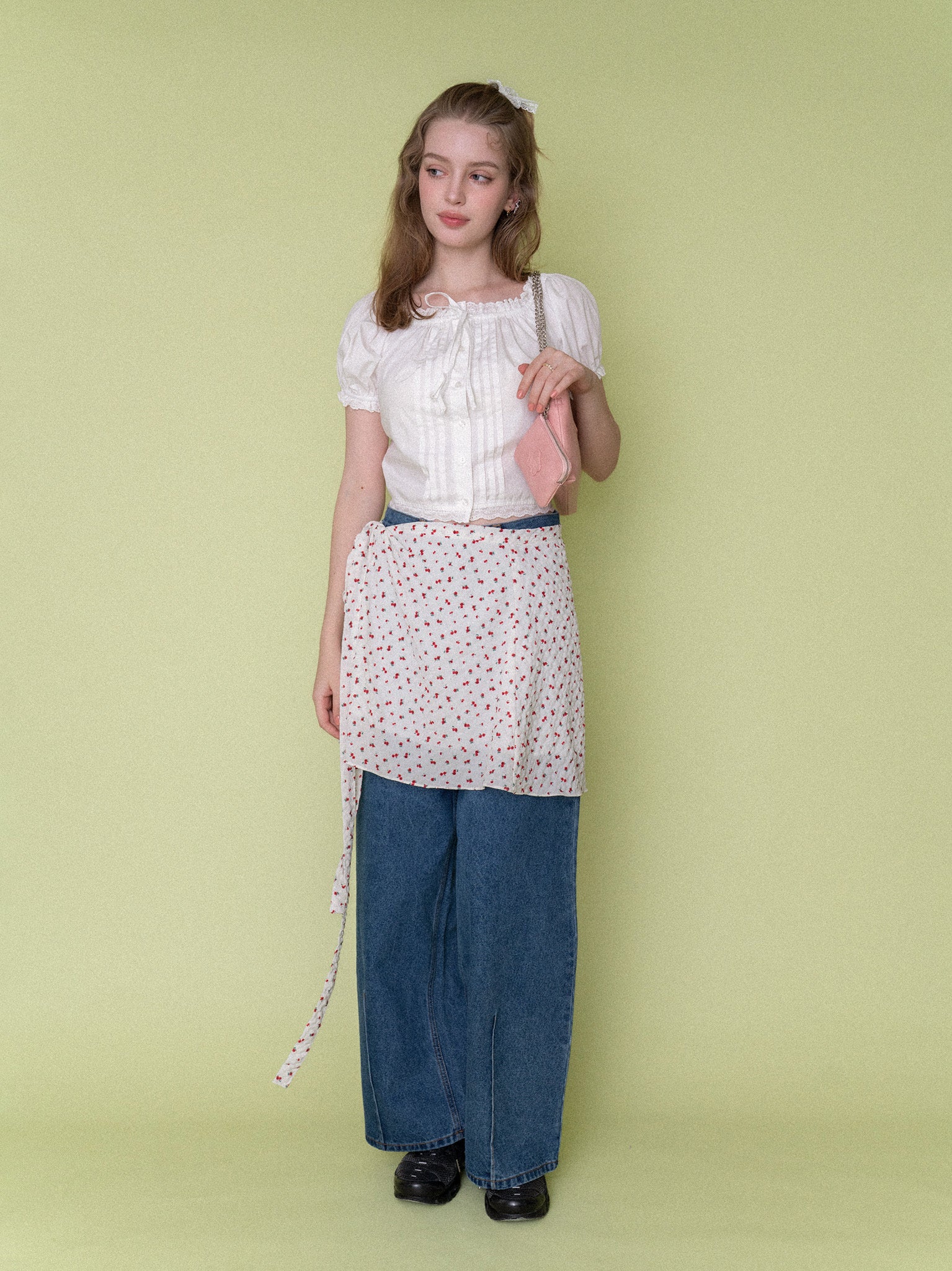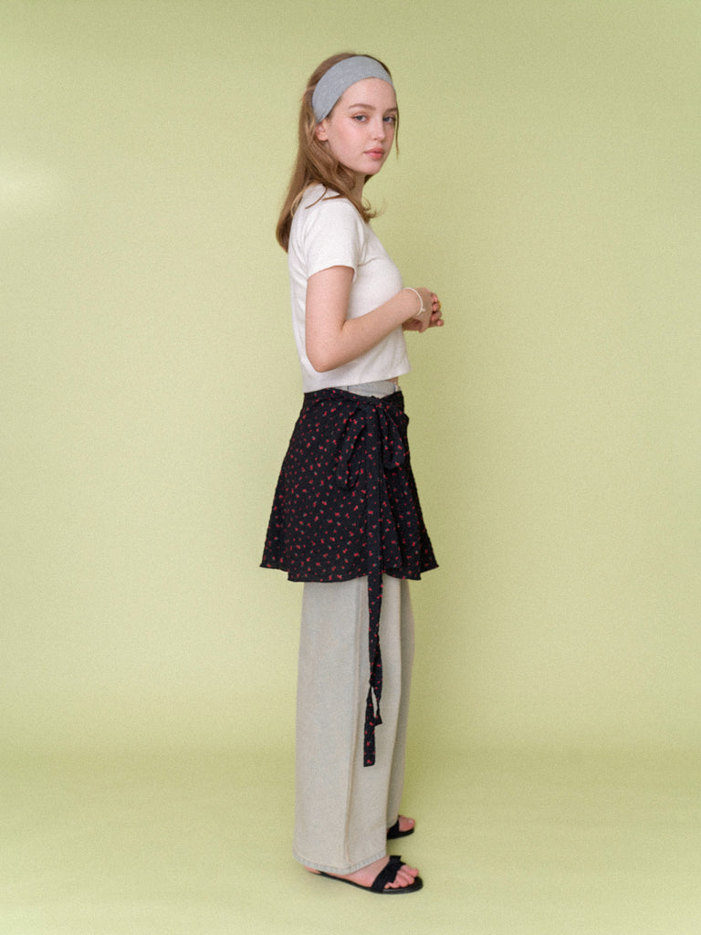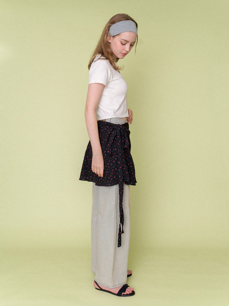 リボンの結び具合でウエストのサイズ調節が可能です。