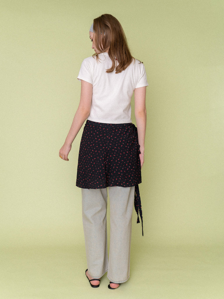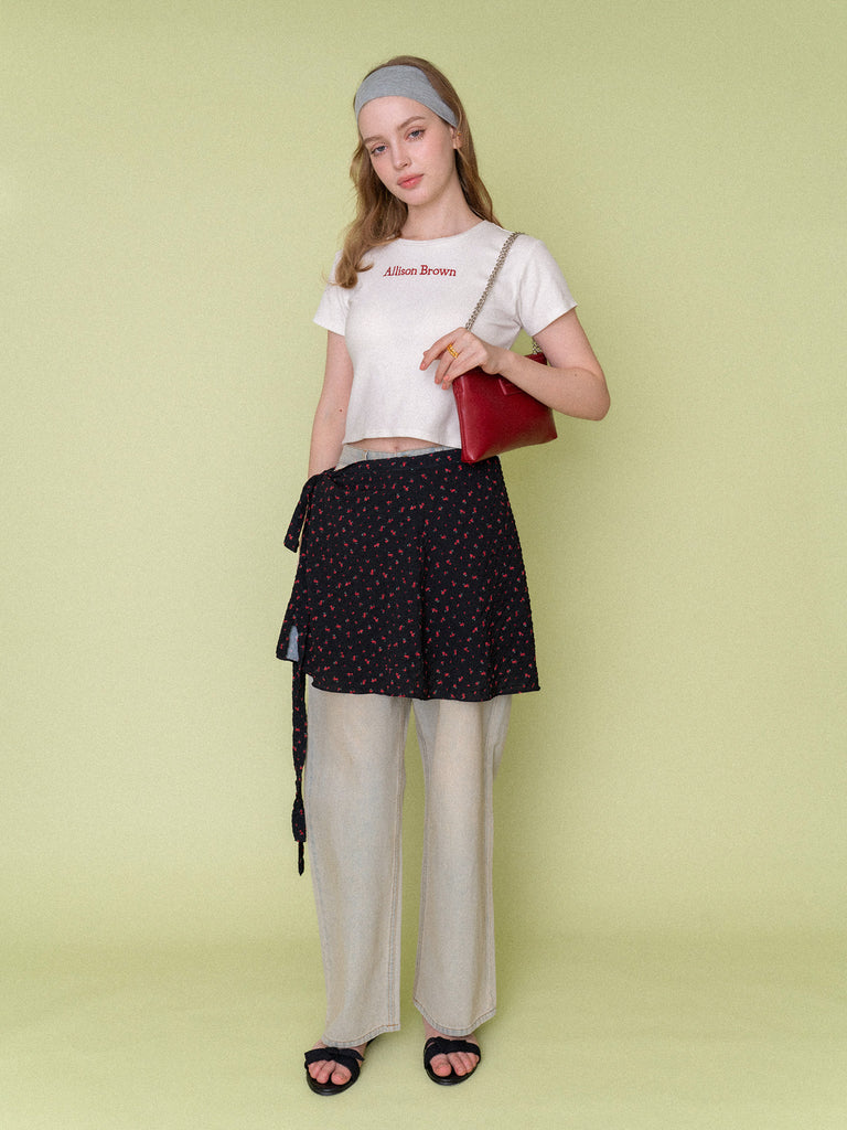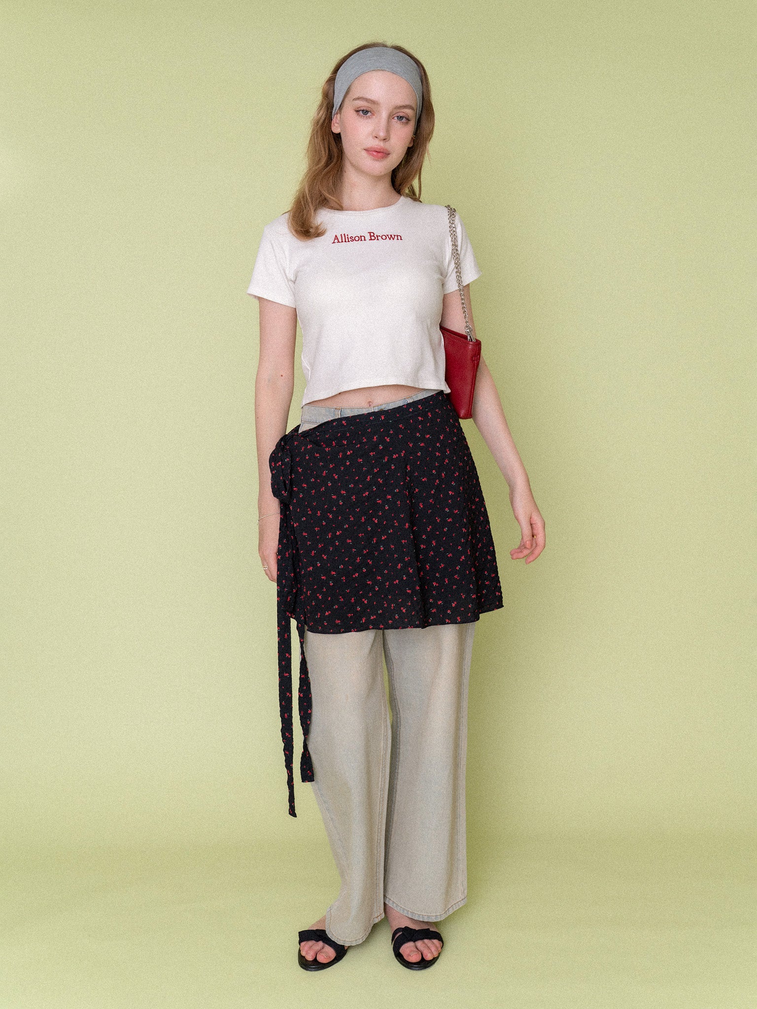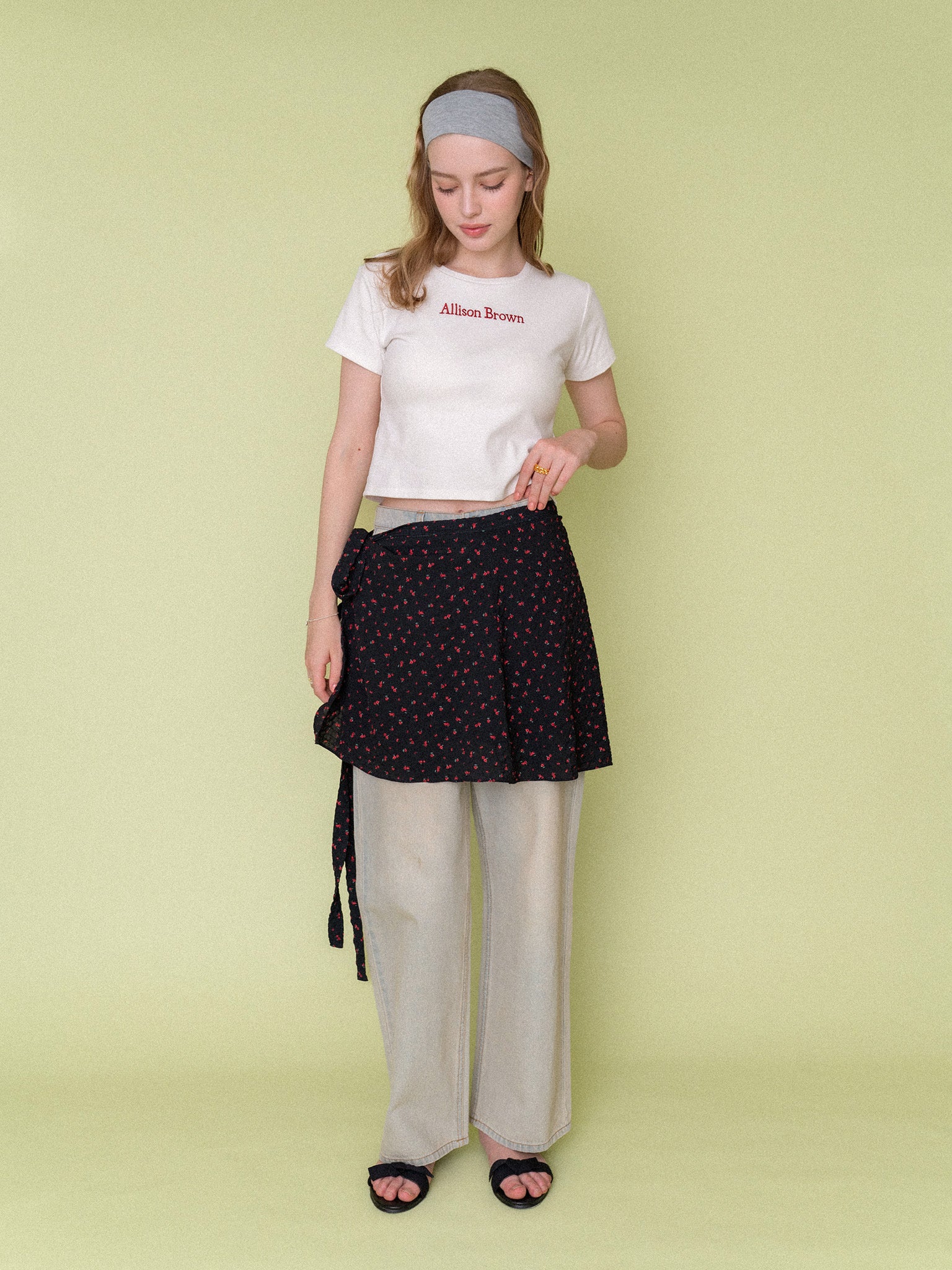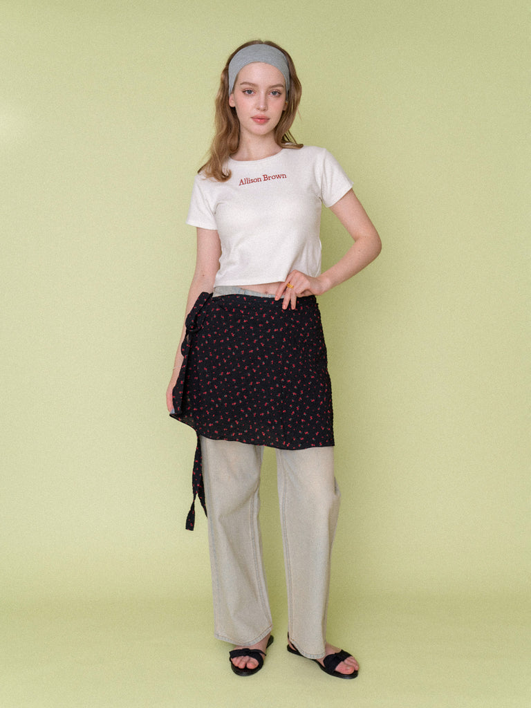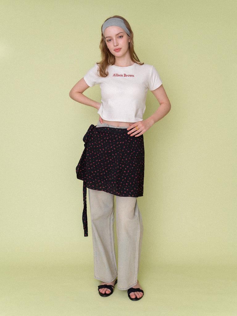リボンの結び具合でウエストのサイズ調節が可能です。