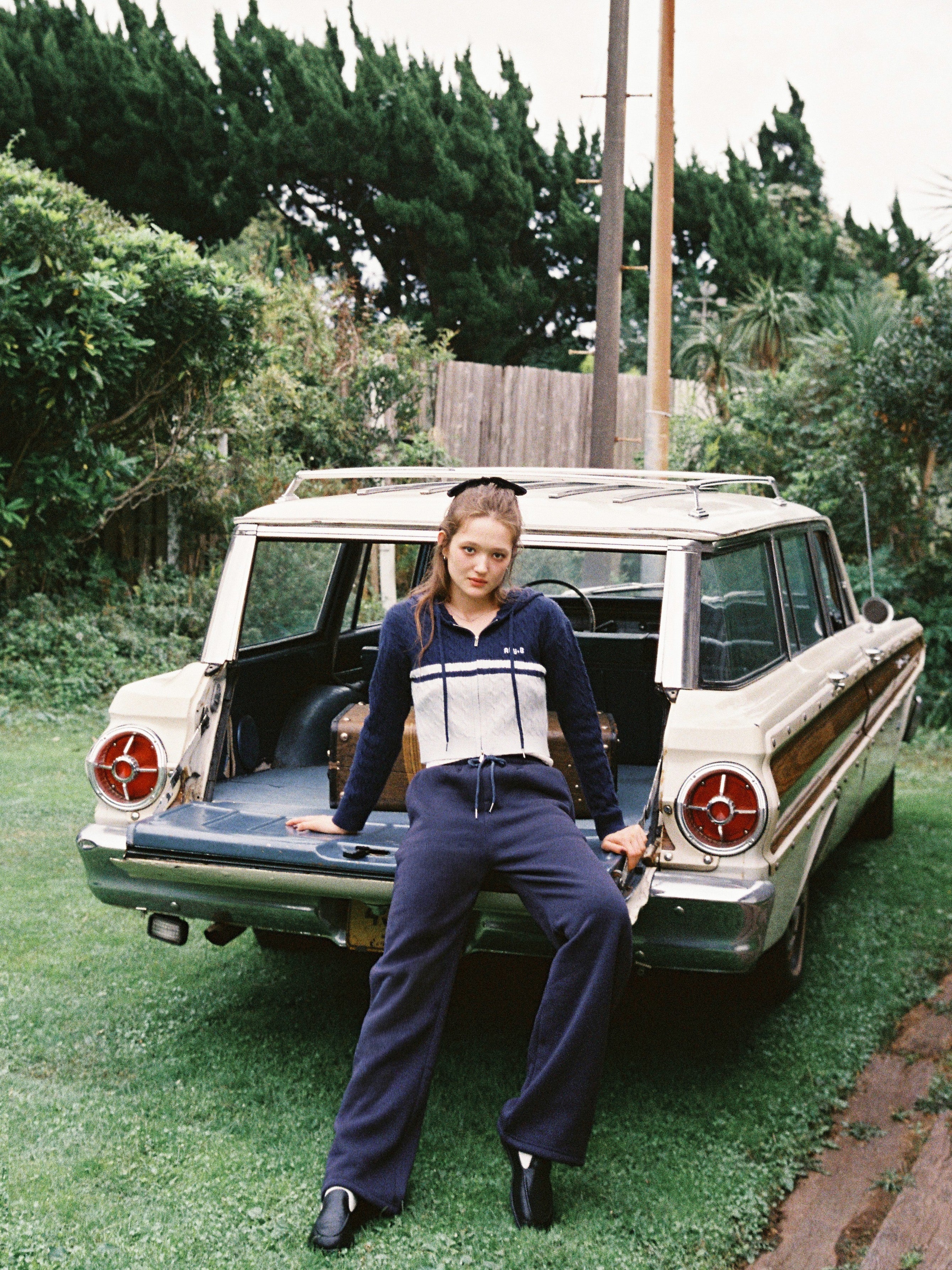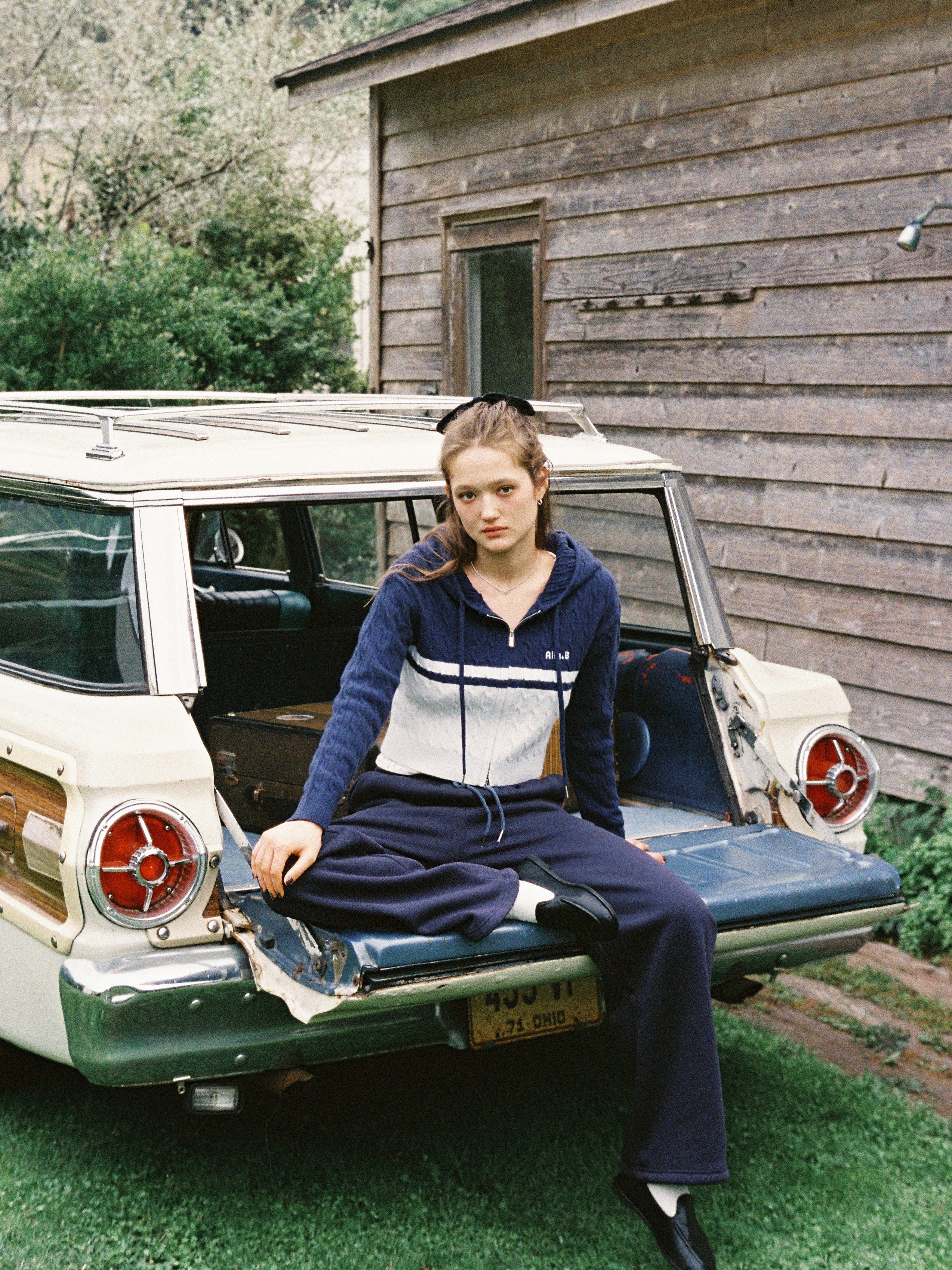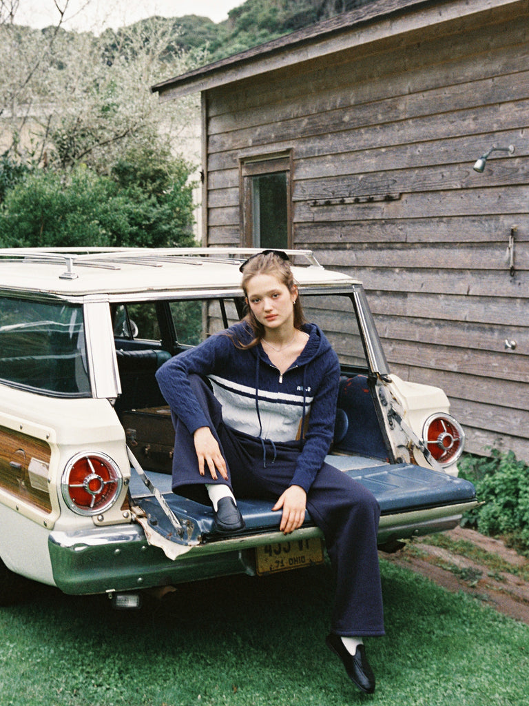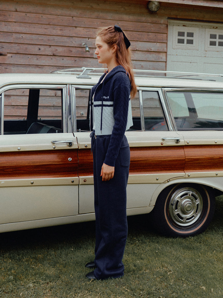 配色の切り替えと左胸のロゴ刺繍がポイントです。