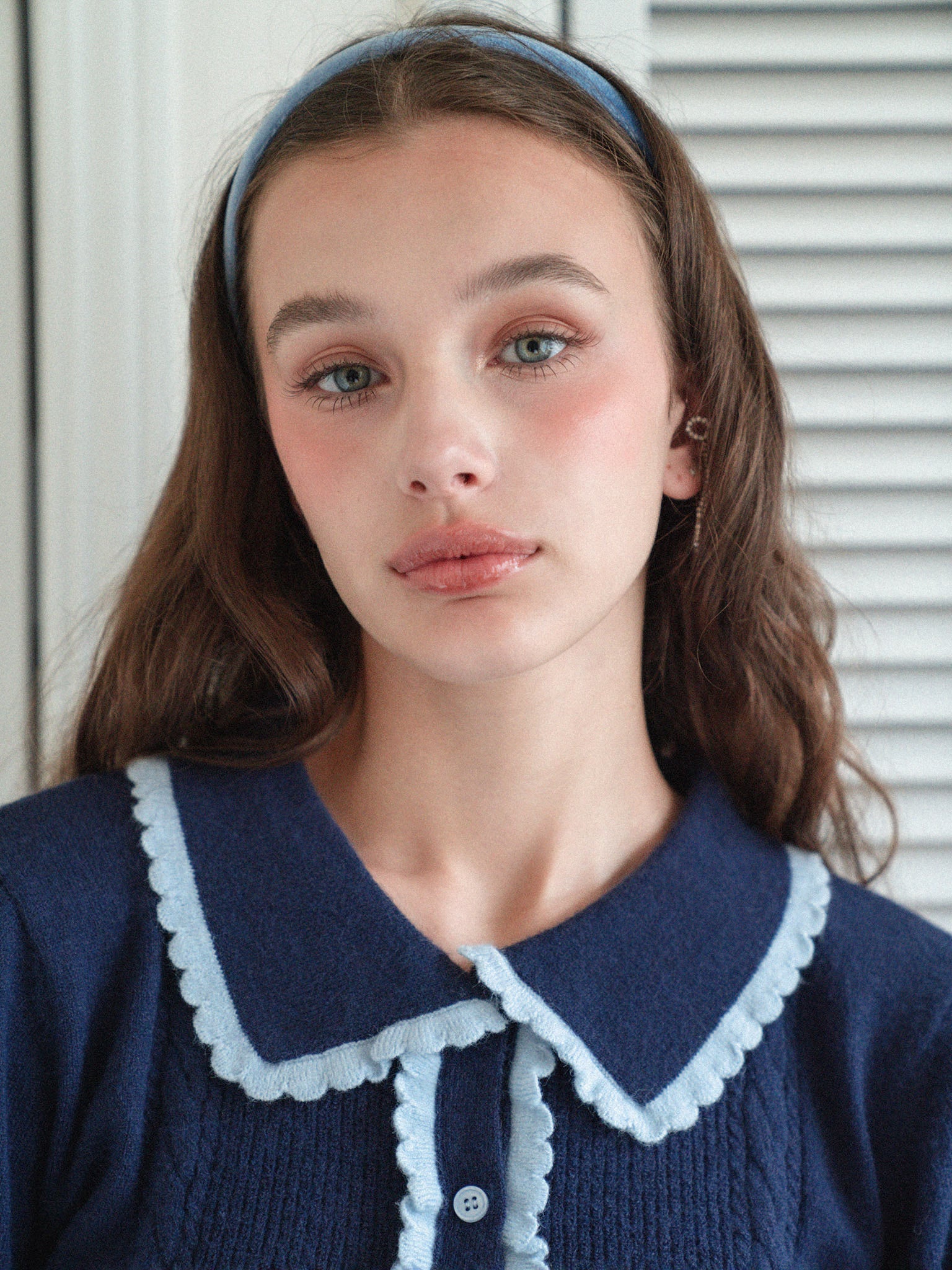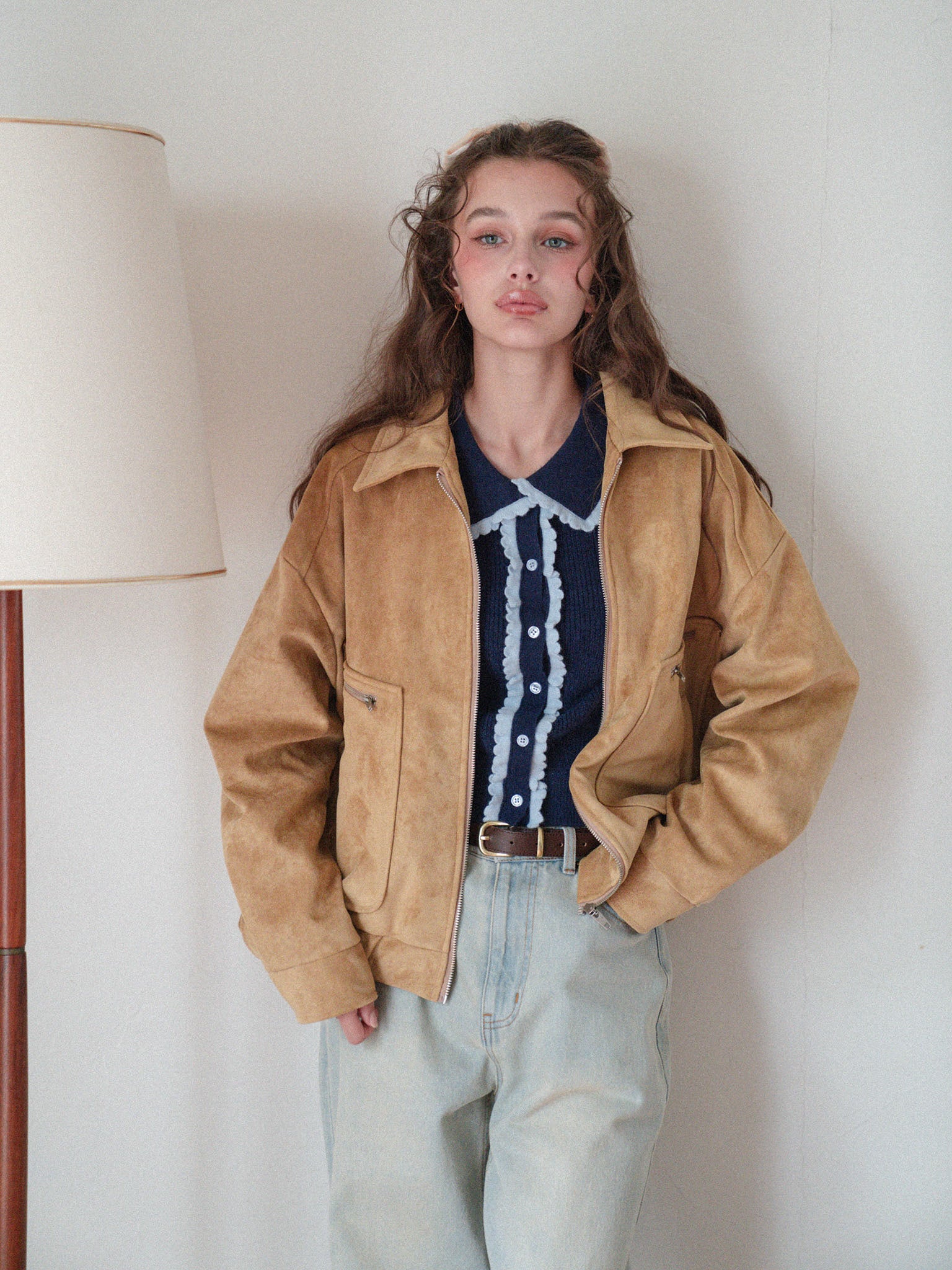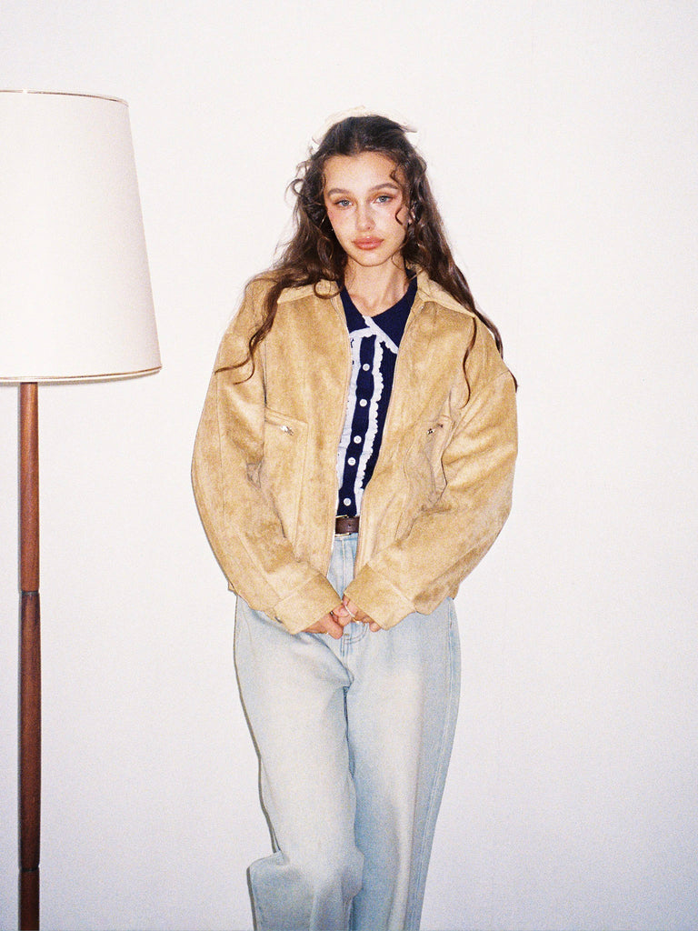 大きめの衿とほどよくあいたVネックラインで