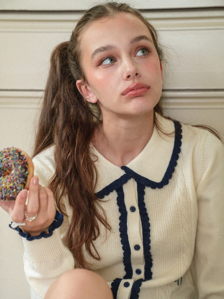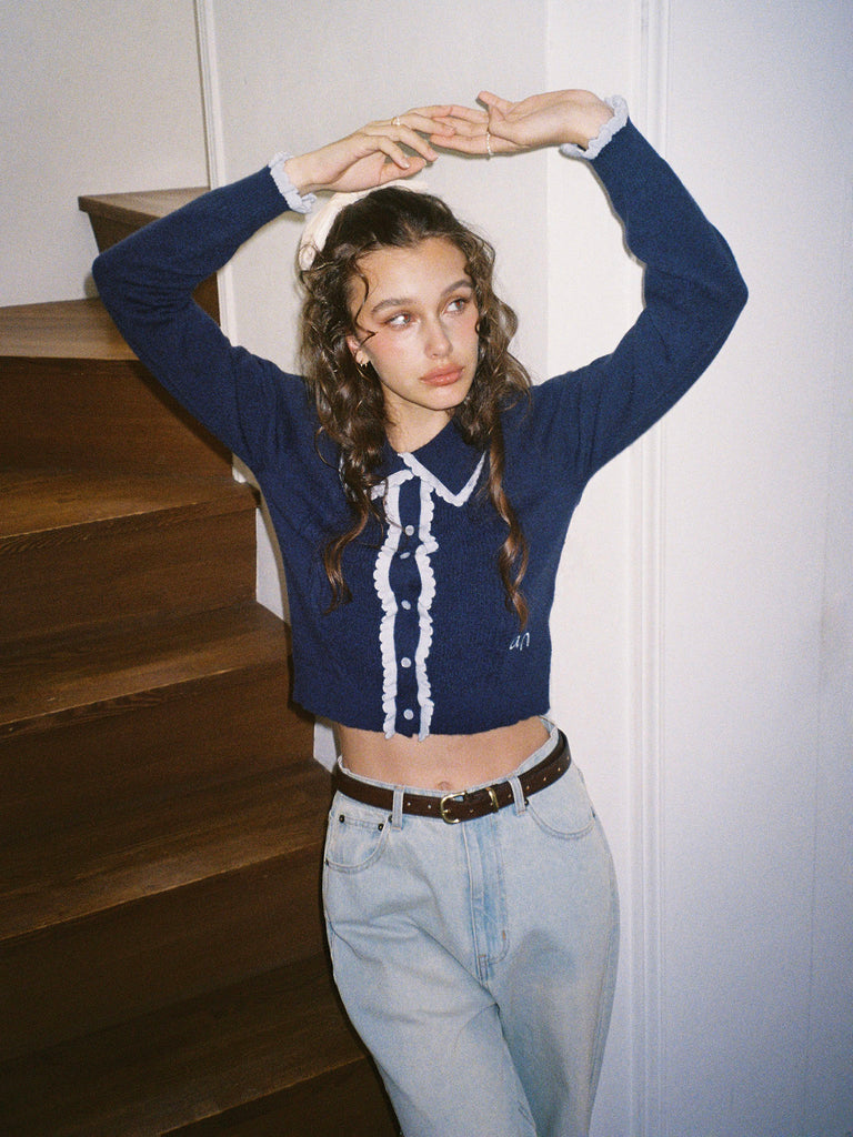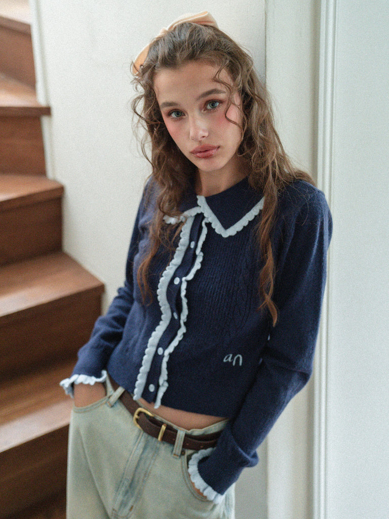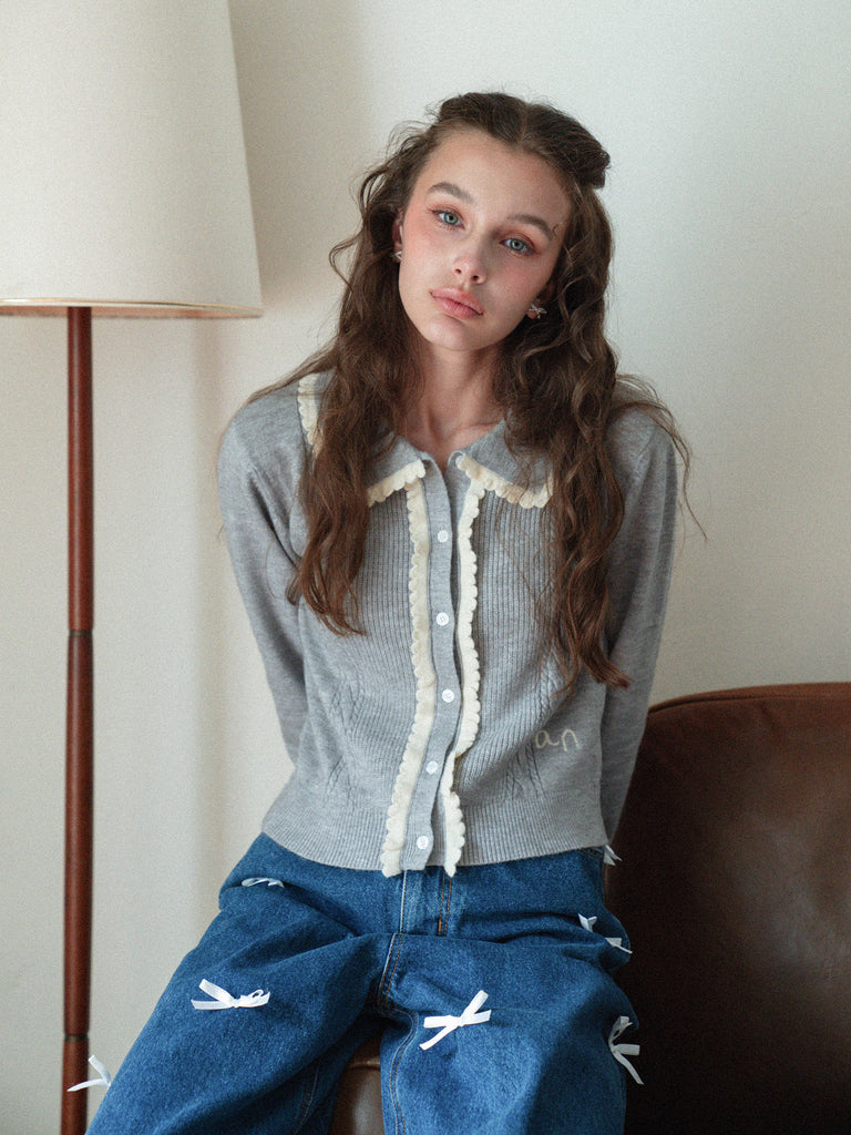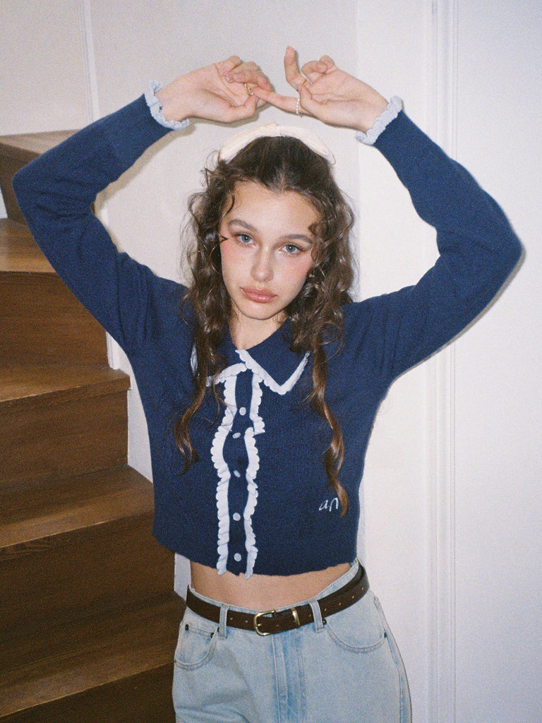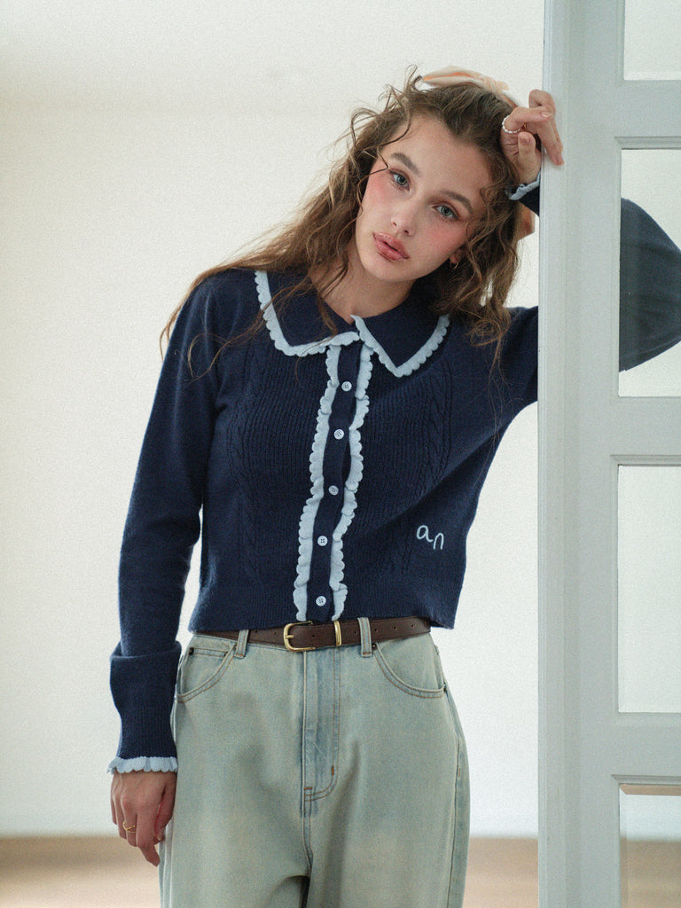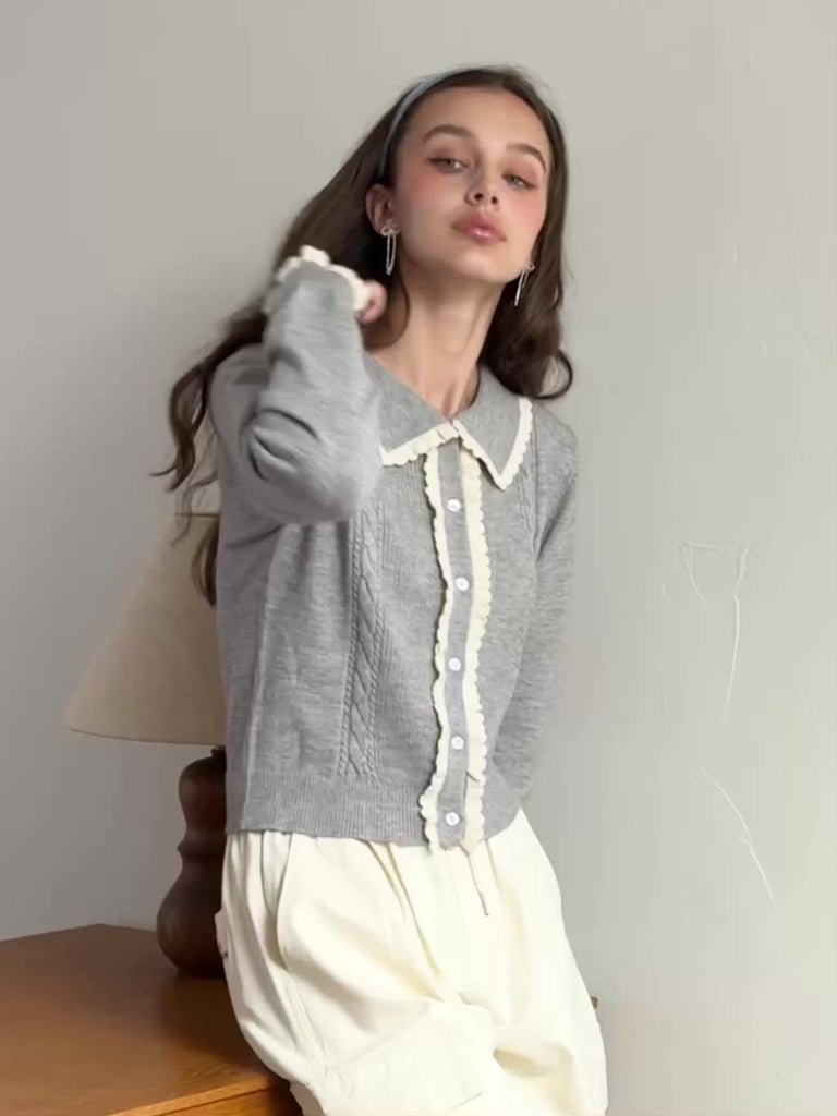 Lovely Frill Collar Knit Cardigan