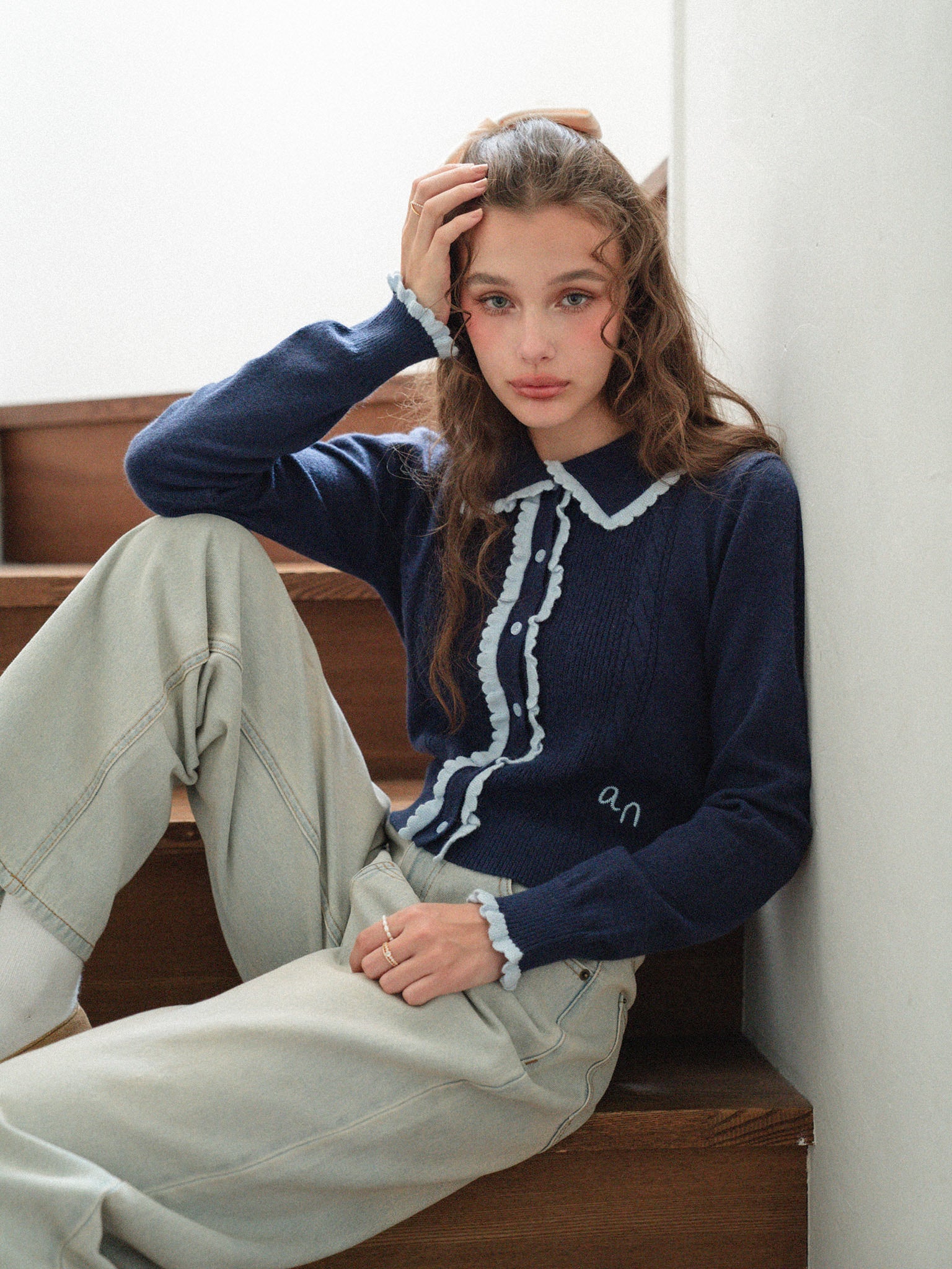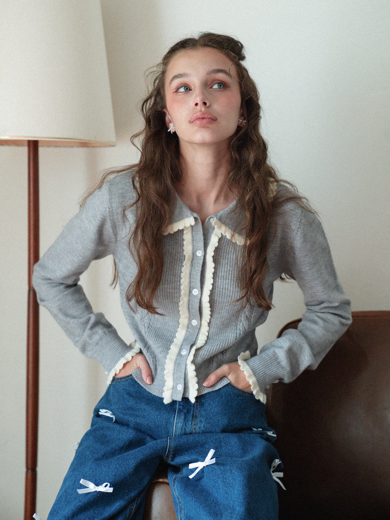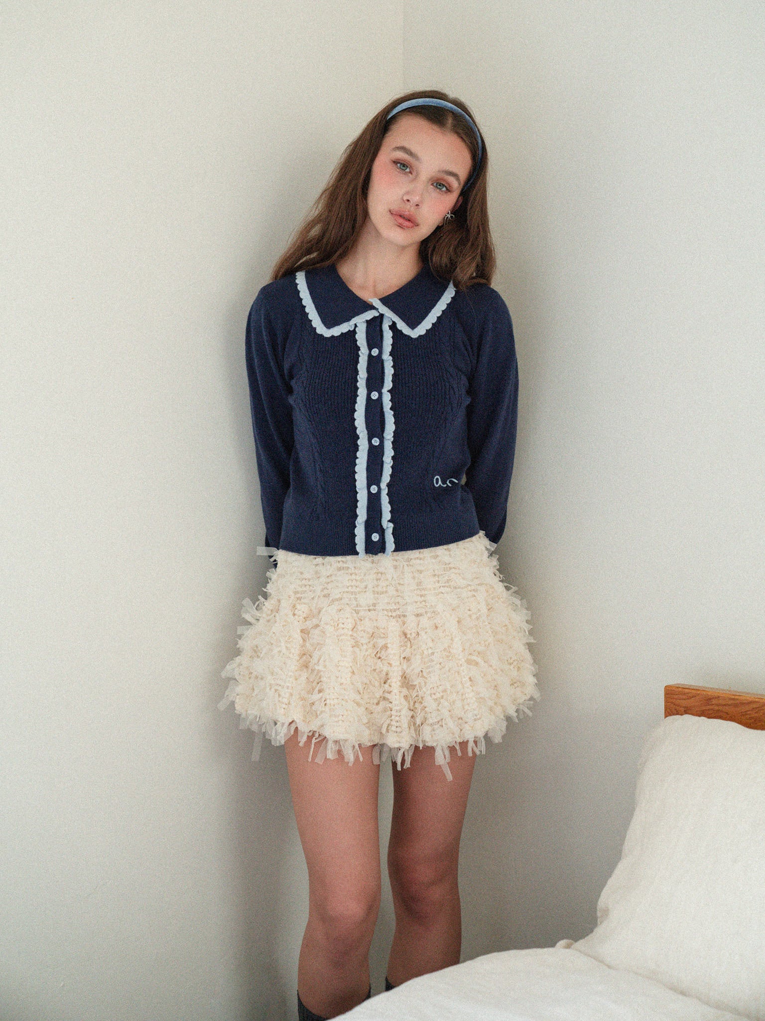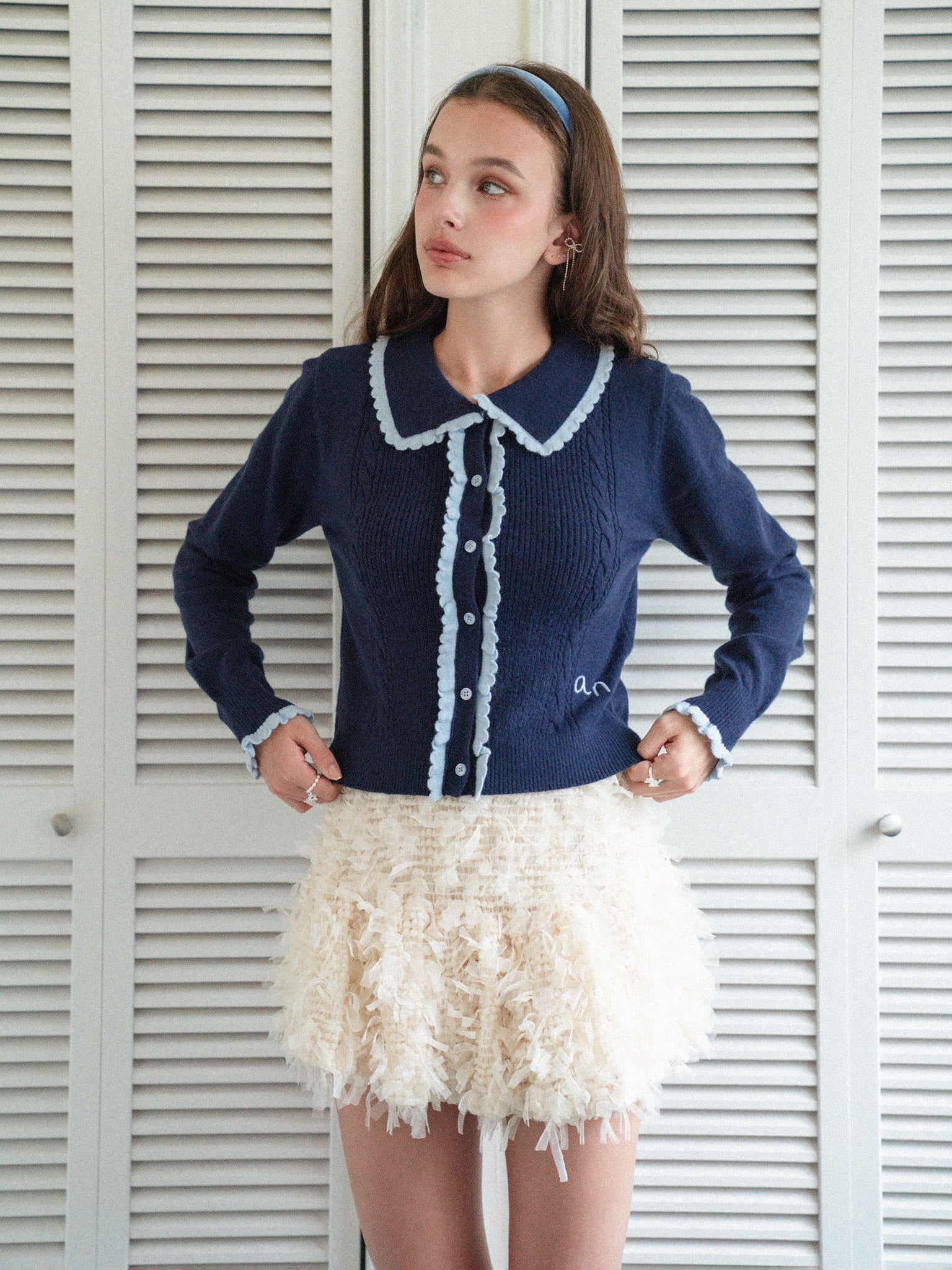 Lovely Frill Collar Knit Cardigan