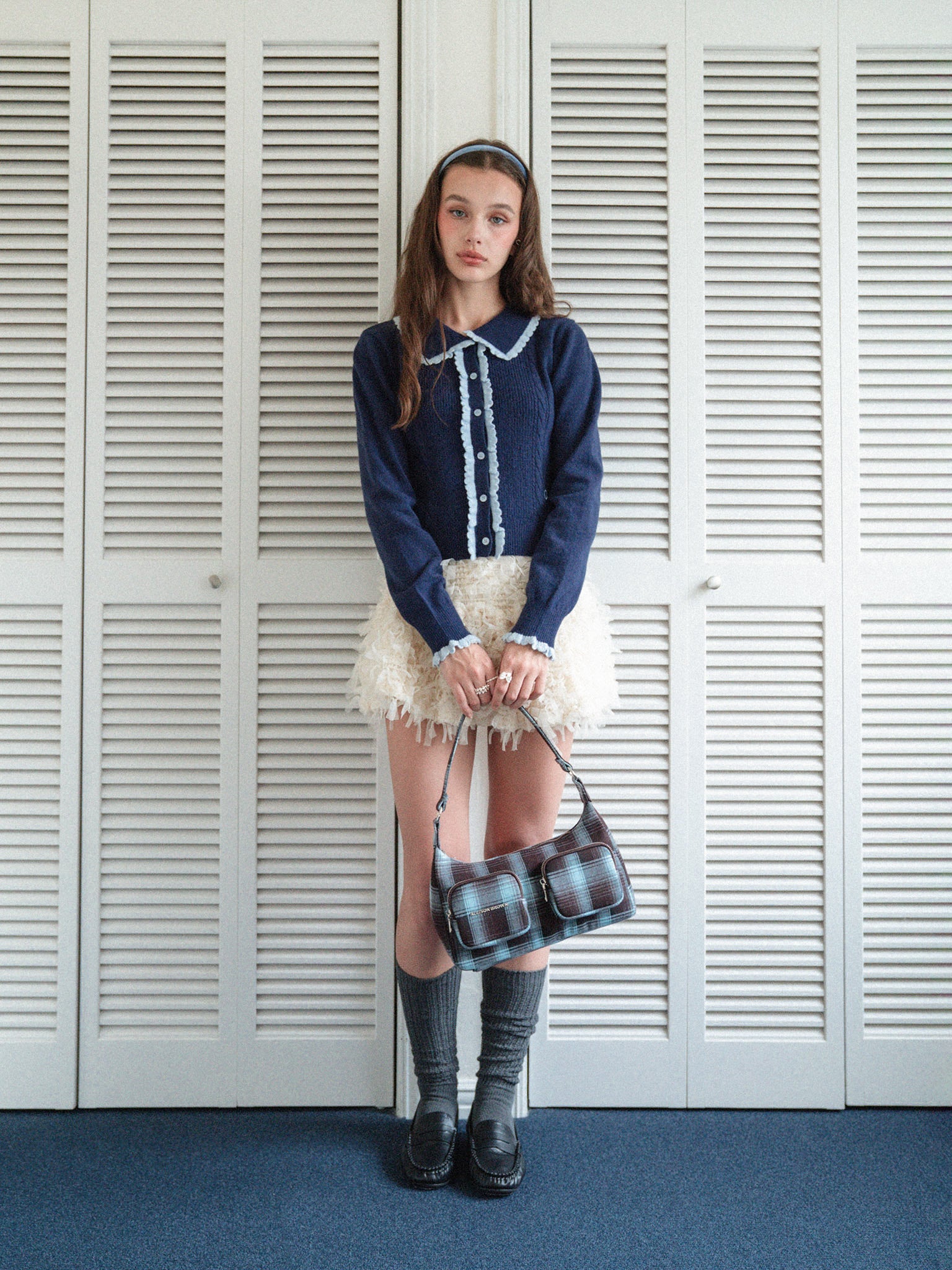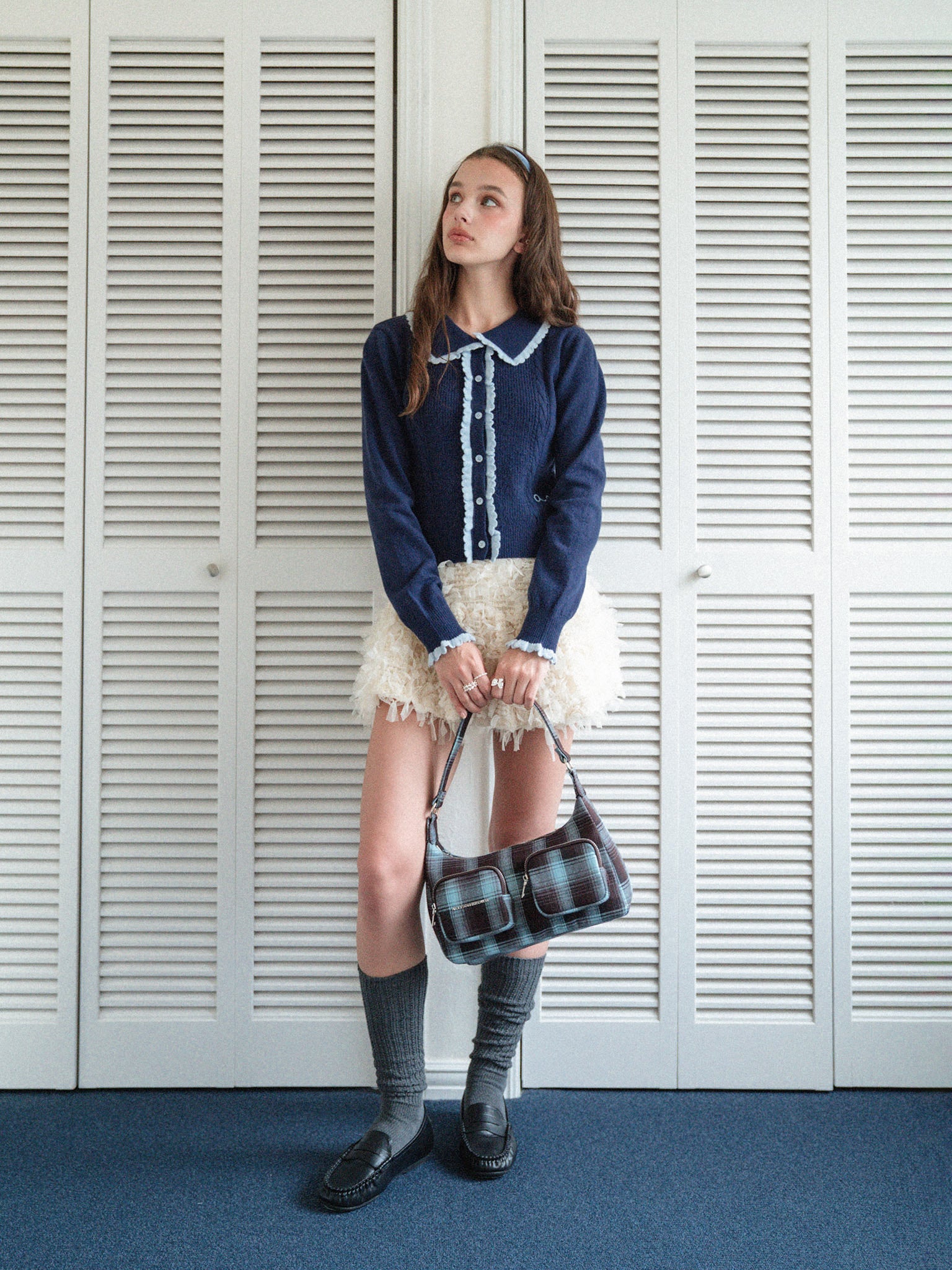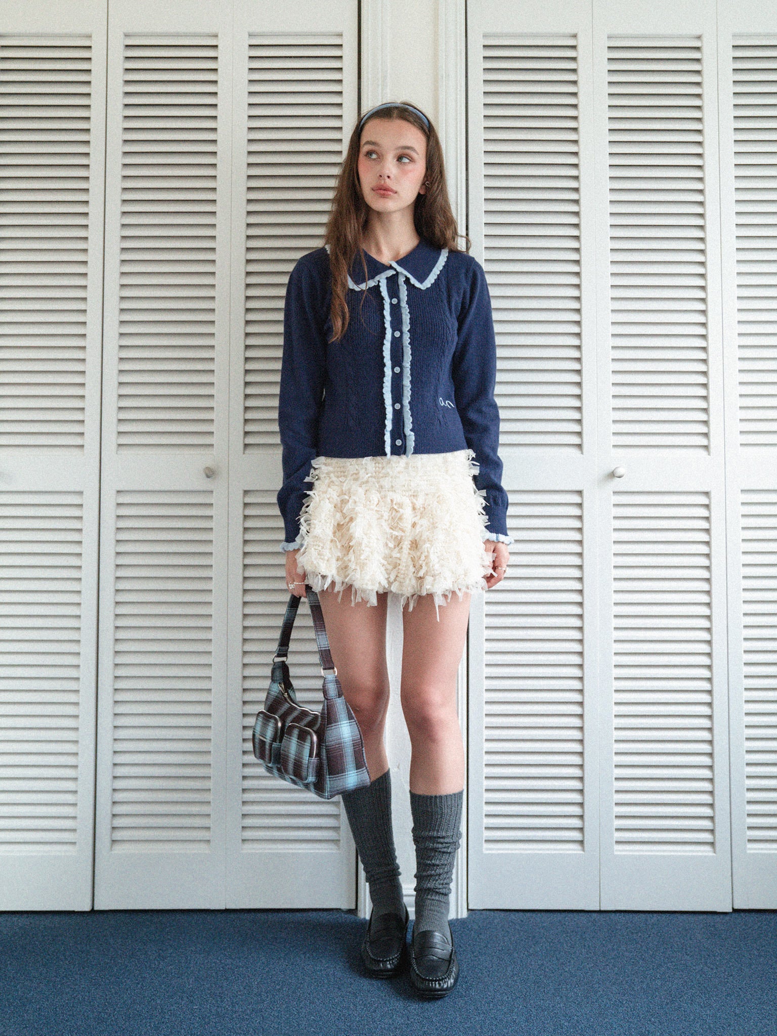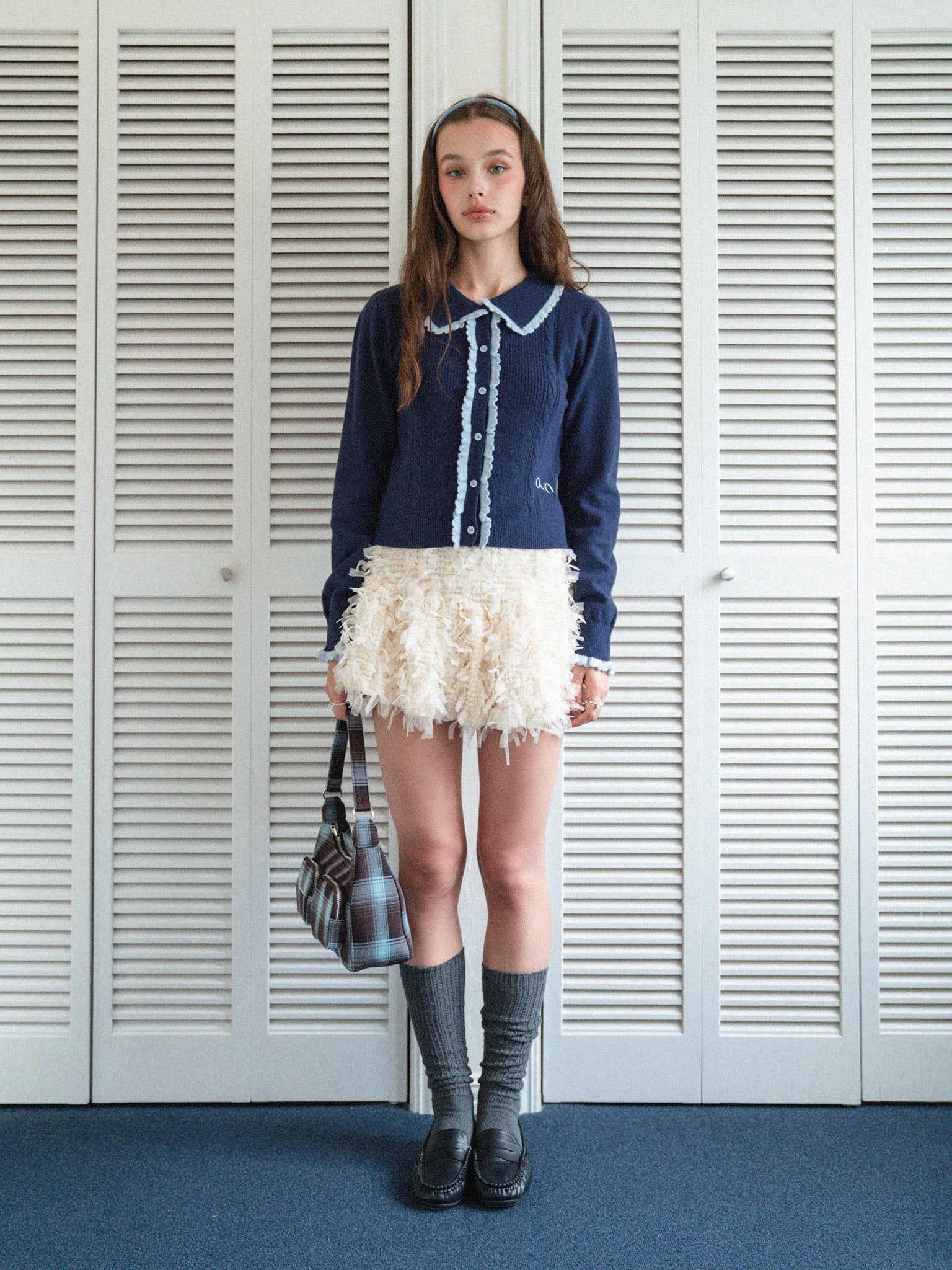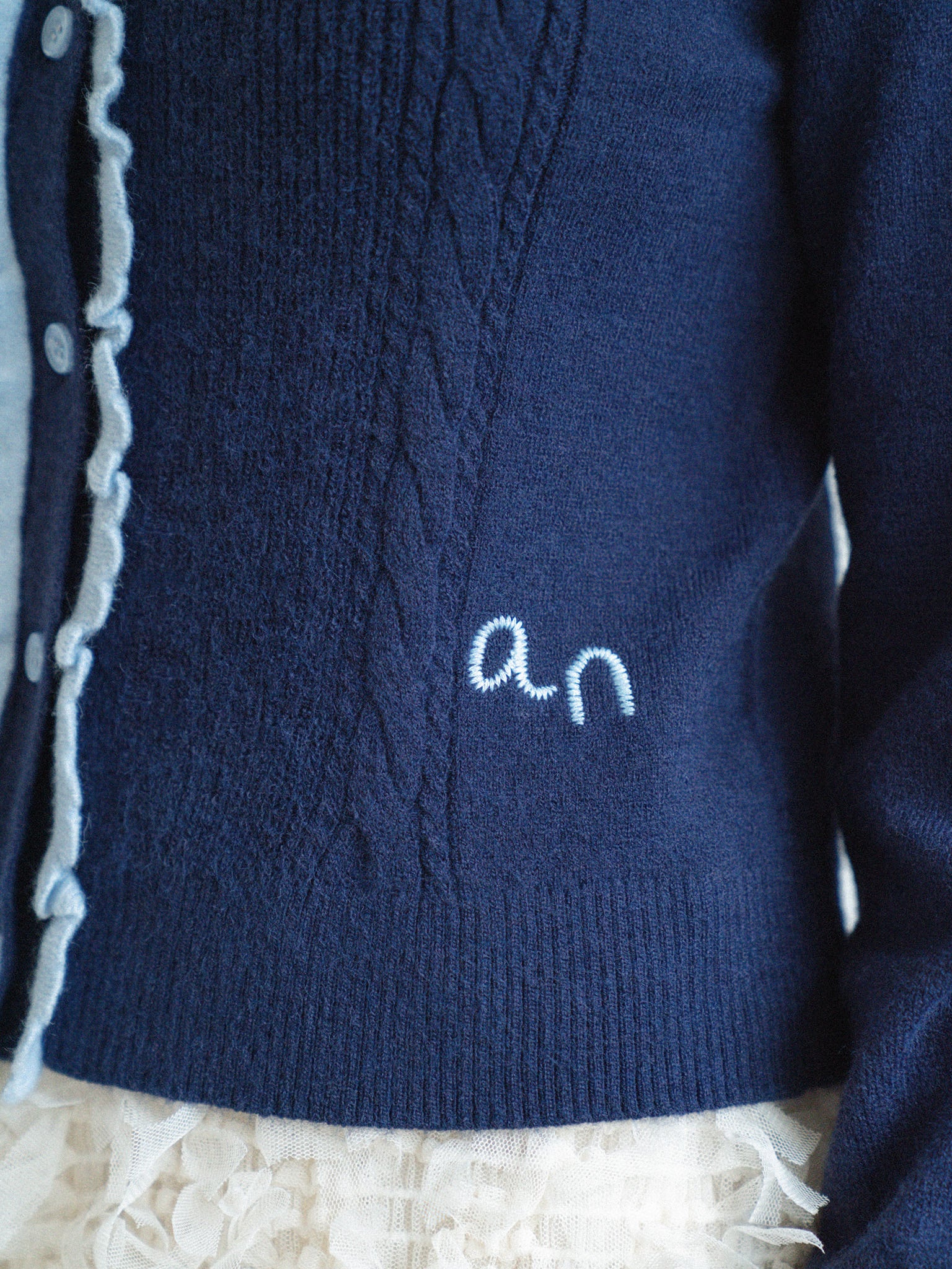 ニット素材のフリルを配色で付けて
