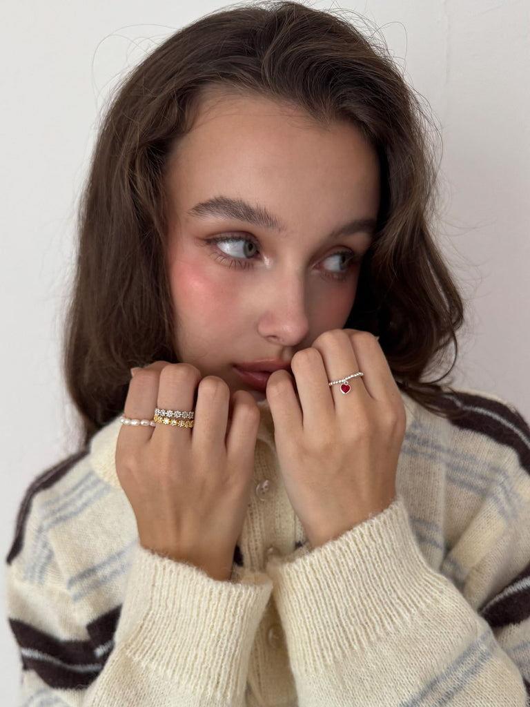 Ball Chain Tiny Heart Ring