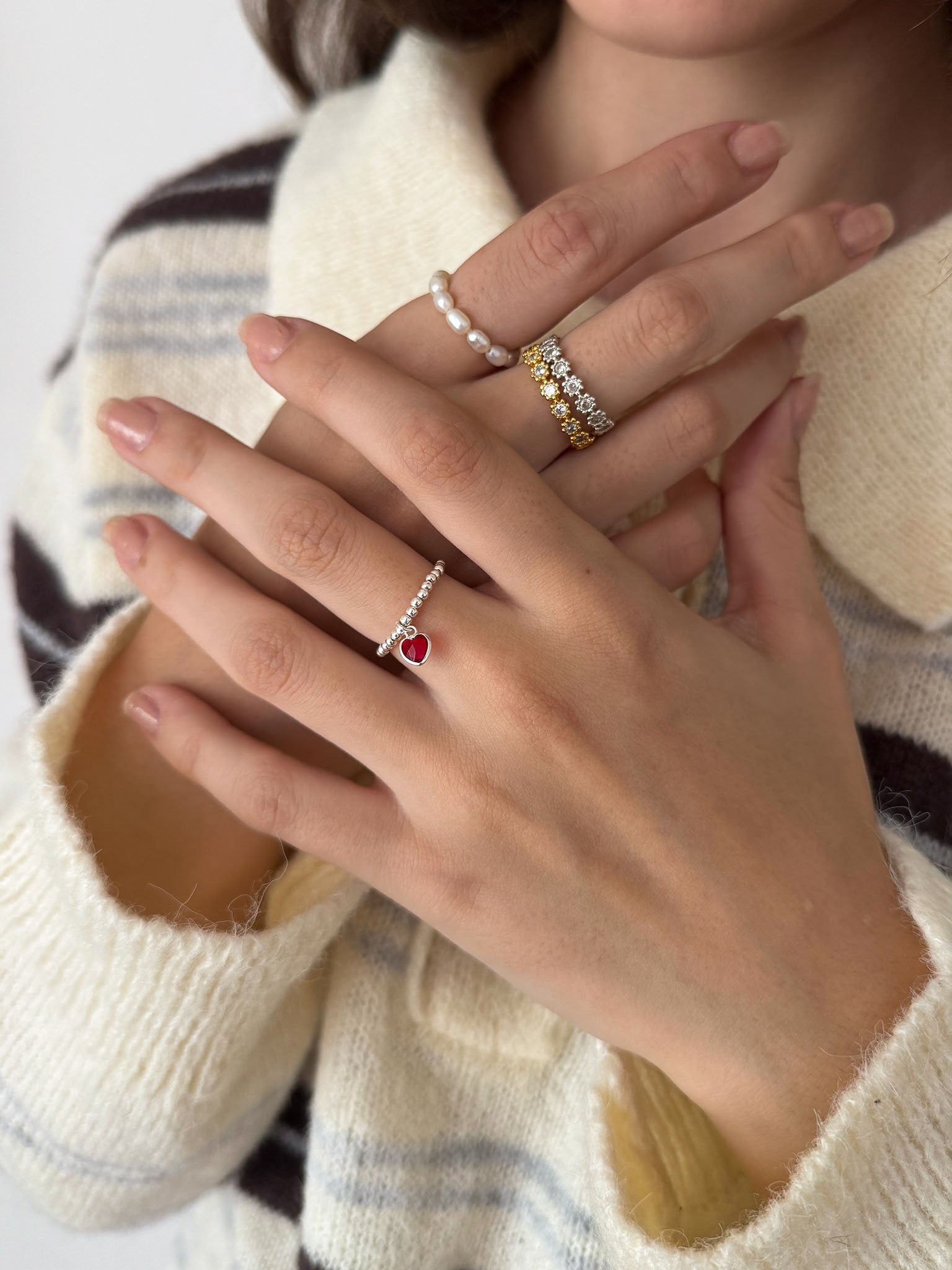 Redのハート型ストーンがついた