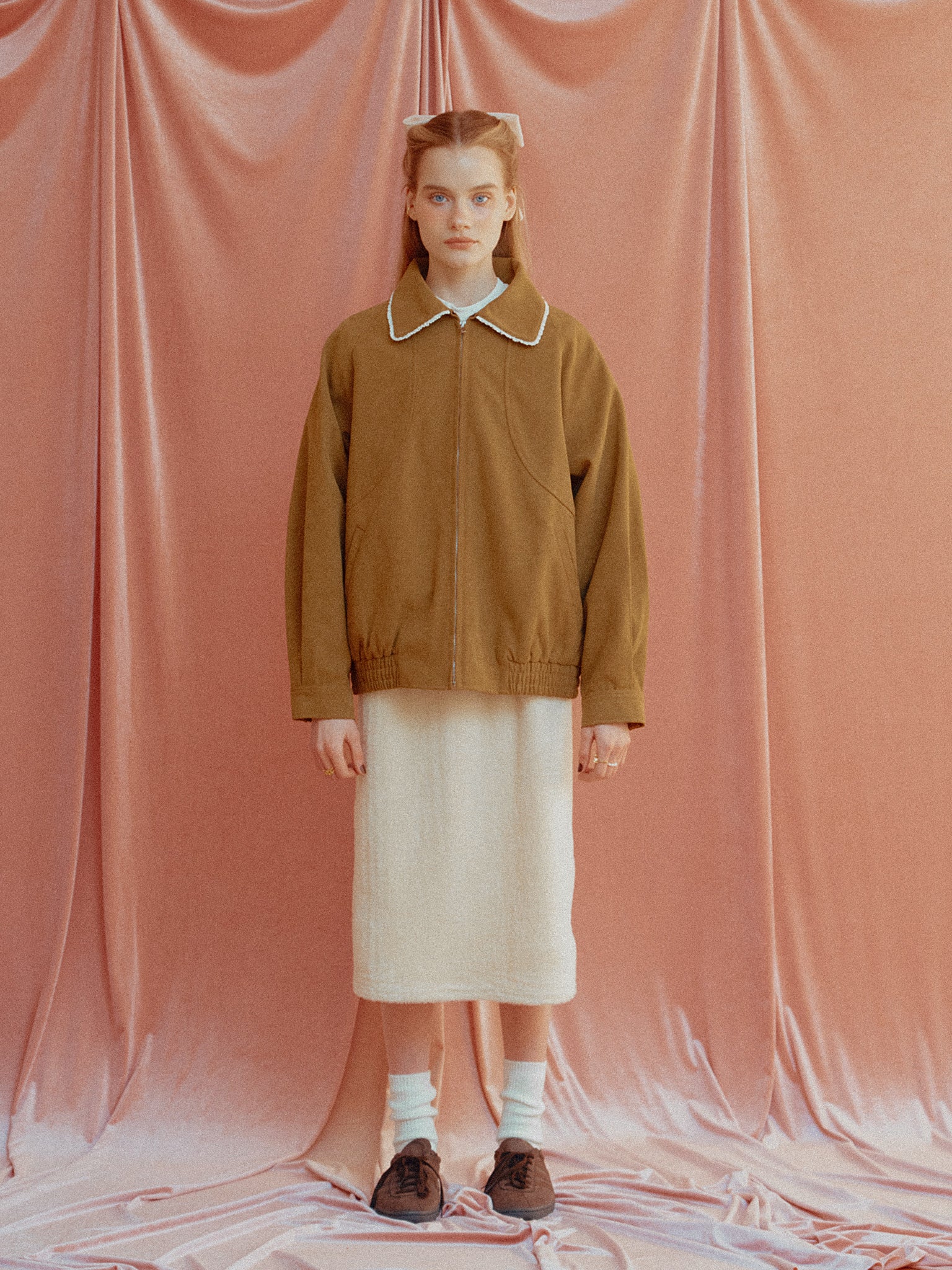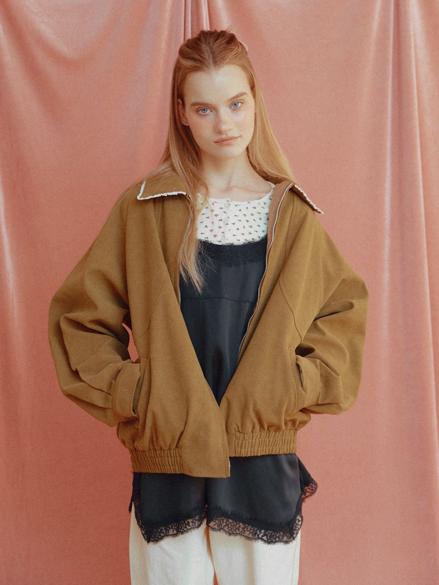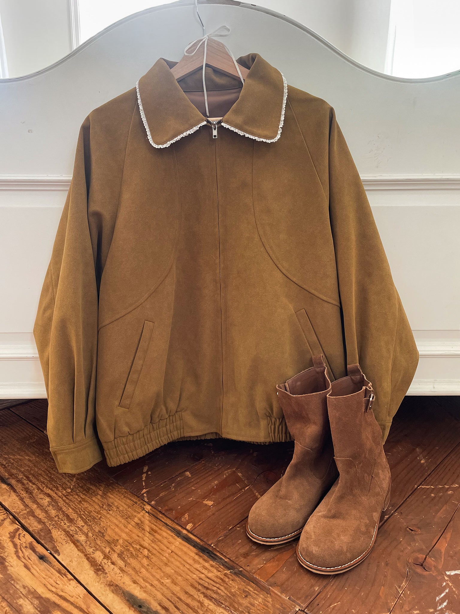 フェイクスエード生地を使ったブルゾン。