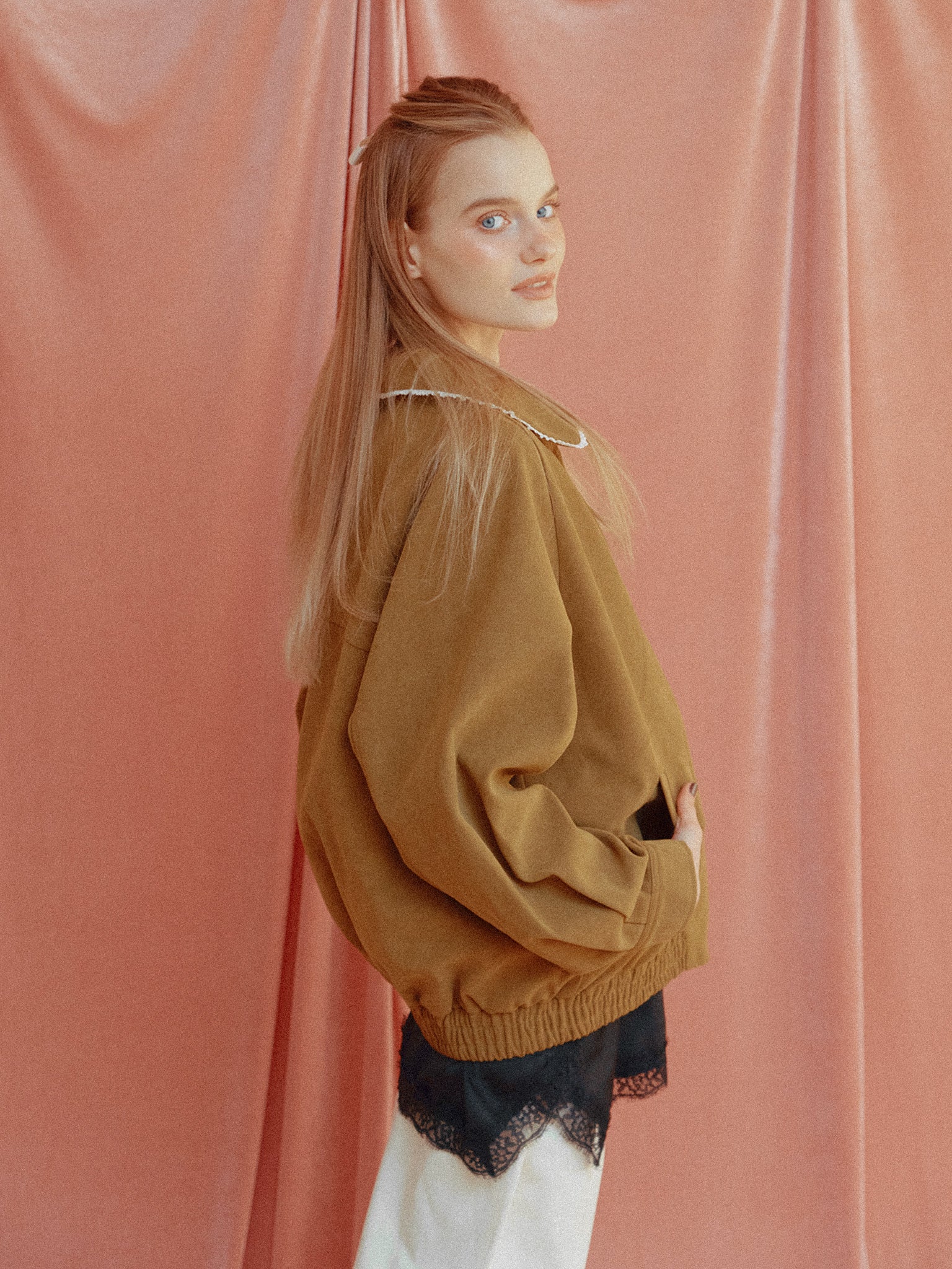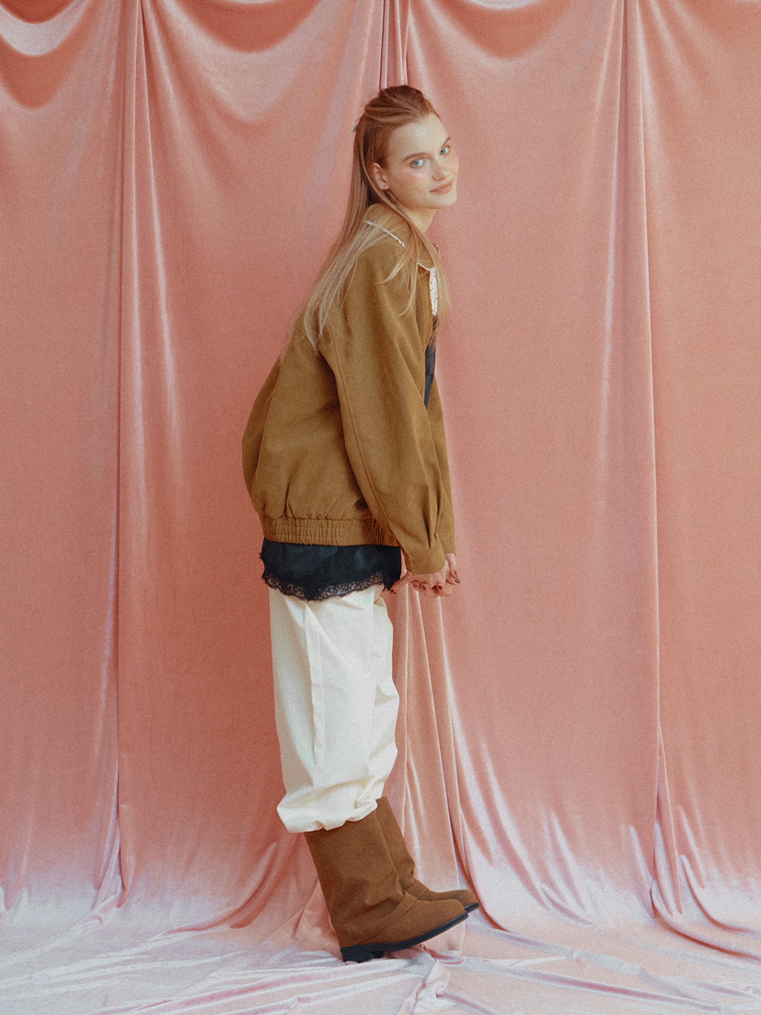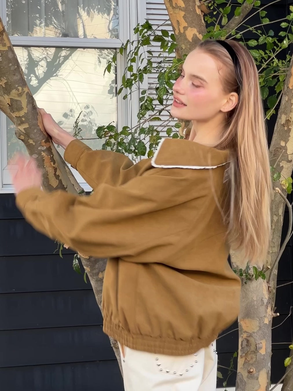 フェイクスエード生地を使ったブルゾン。