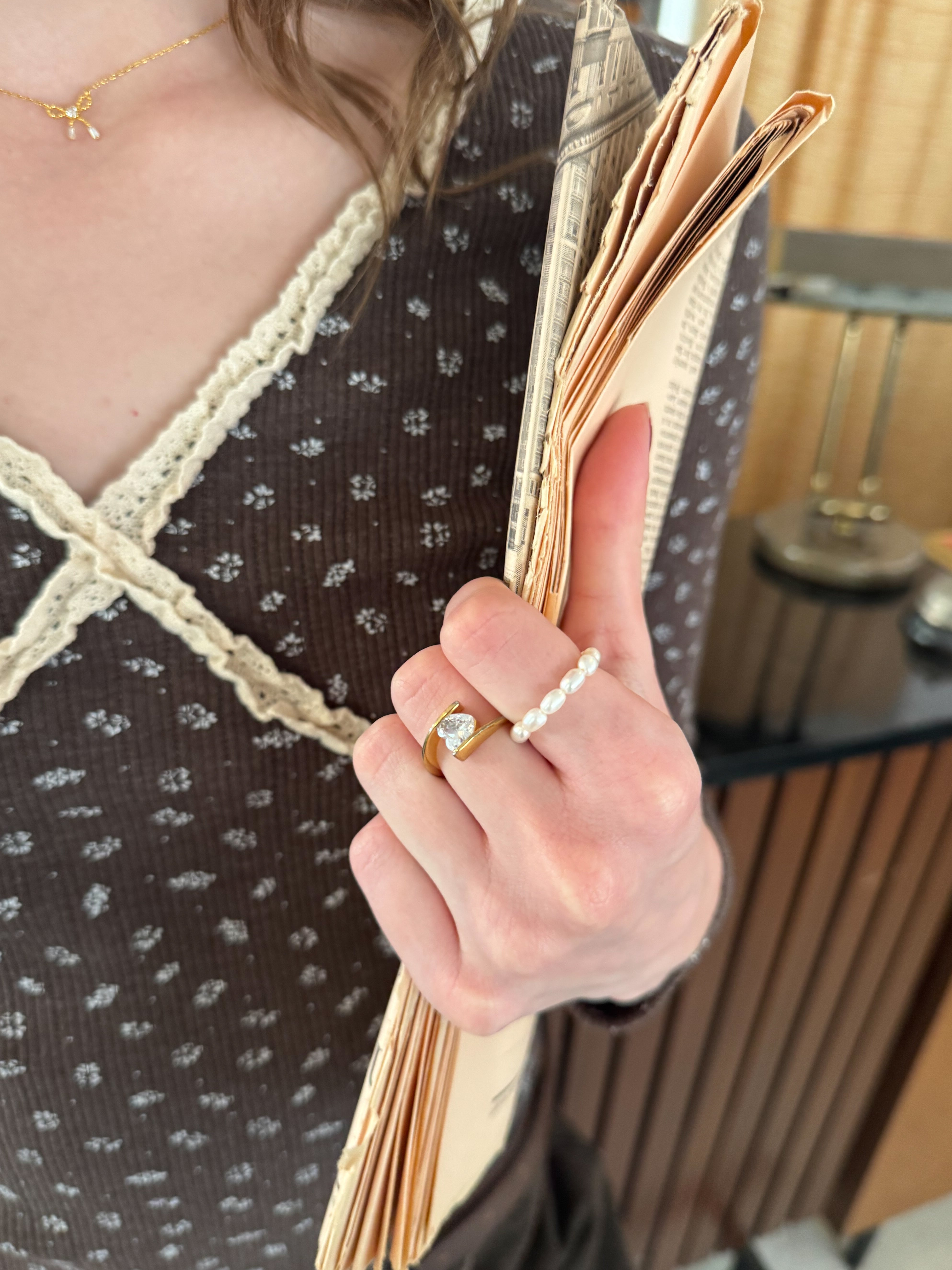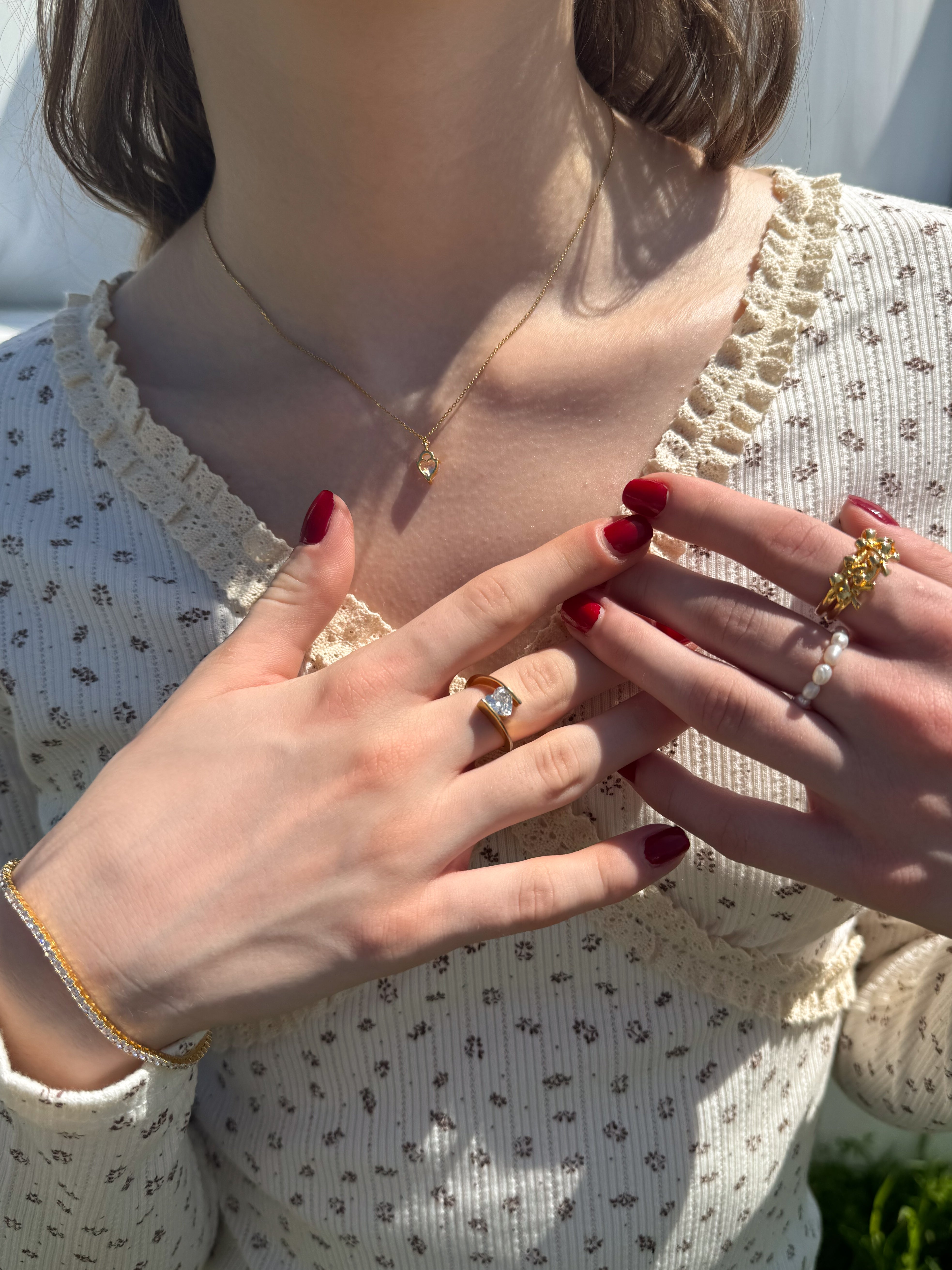 中心部分の立体的なハートストーンが存在感抜群のリング。