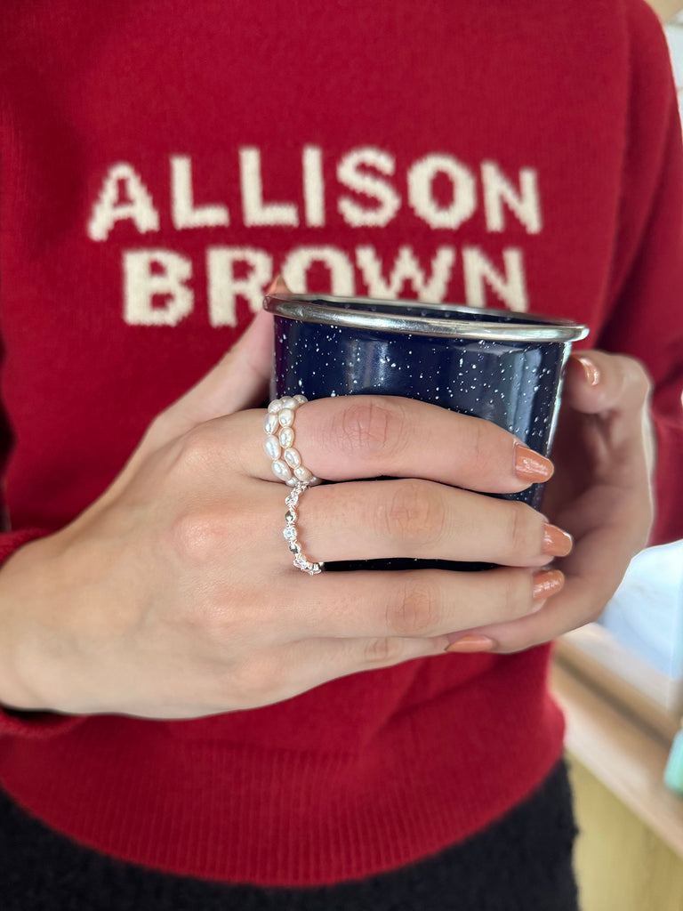 シルバーとストーンが交互に連なったリング。